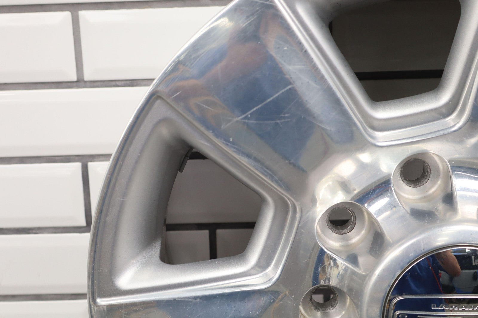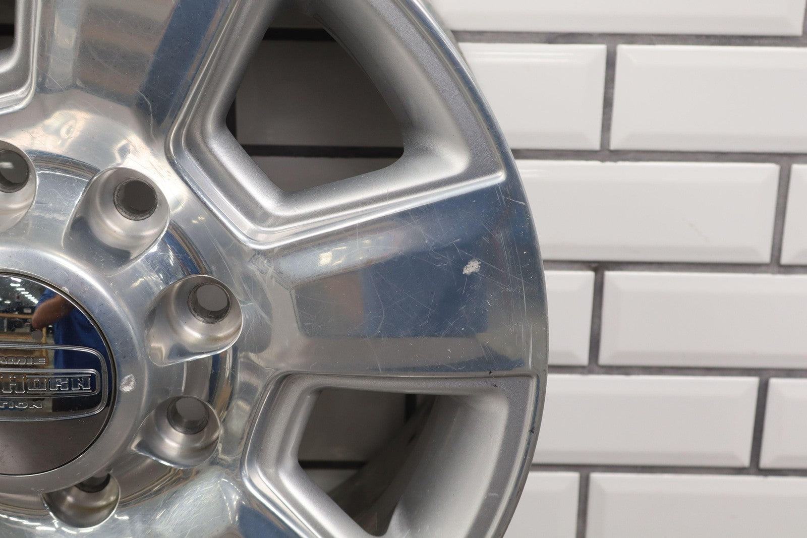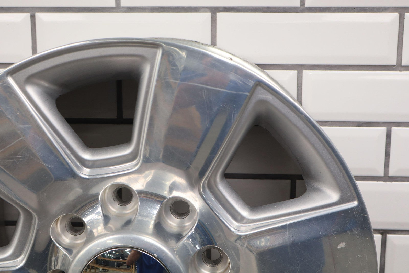 Lh Front, 18x8 6 Spoke Wheel, Polished W/painted Pockets (wba), Heavy Scuffs/scratches Throughout, Spun True