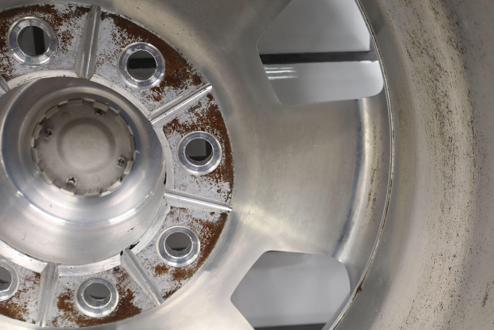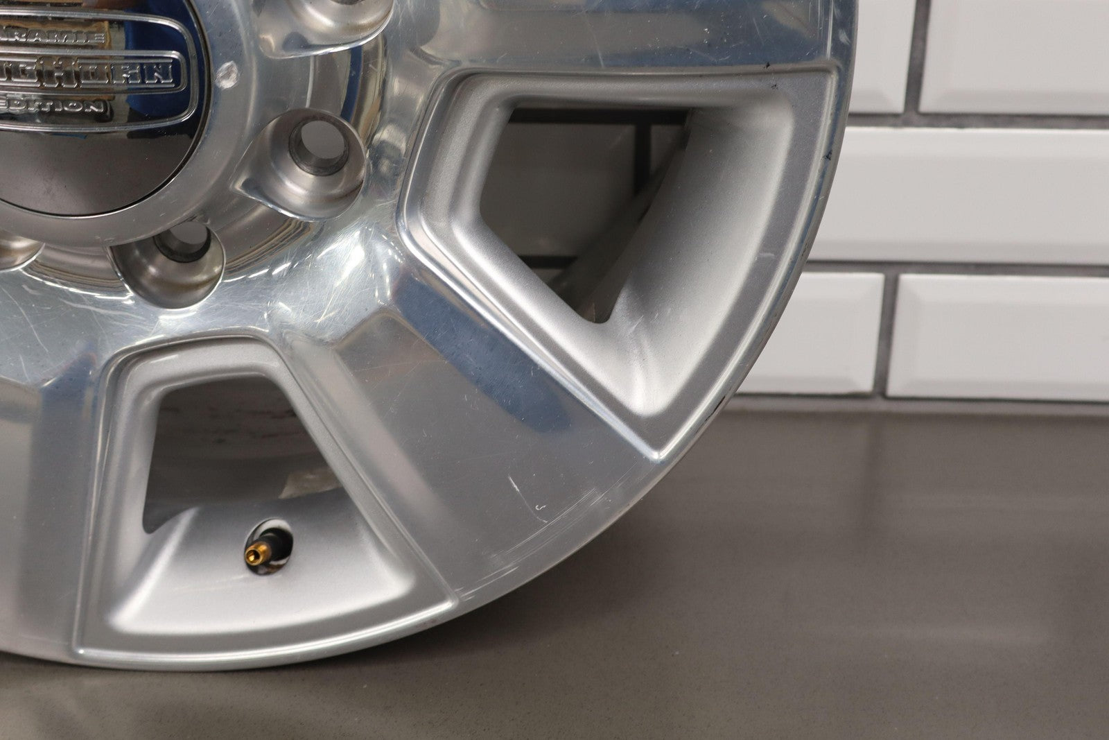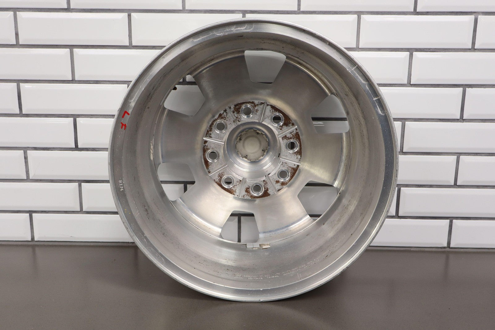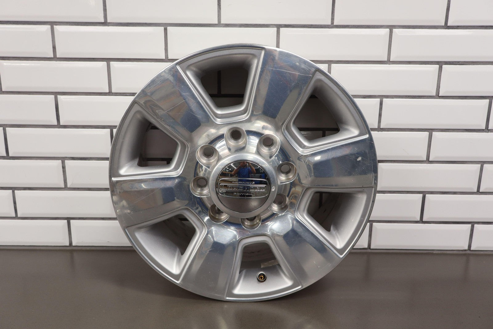Lh Front, 18x8 6 Spoke Wheel, Polished W/painted Pockets (wba), Heavy Scuffs/scratches Throughout, Spun True