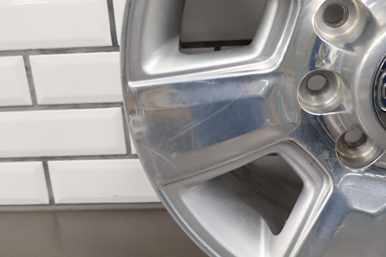 Lh Front, 18x8 6 Spoke Wheel, Polished W/painted Pockets (wba), Heavy Scuffs/scratches Throughout, Spun True