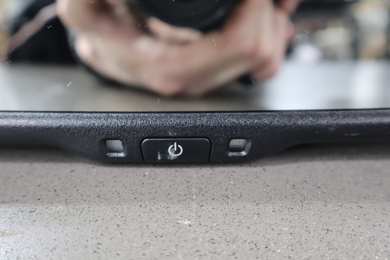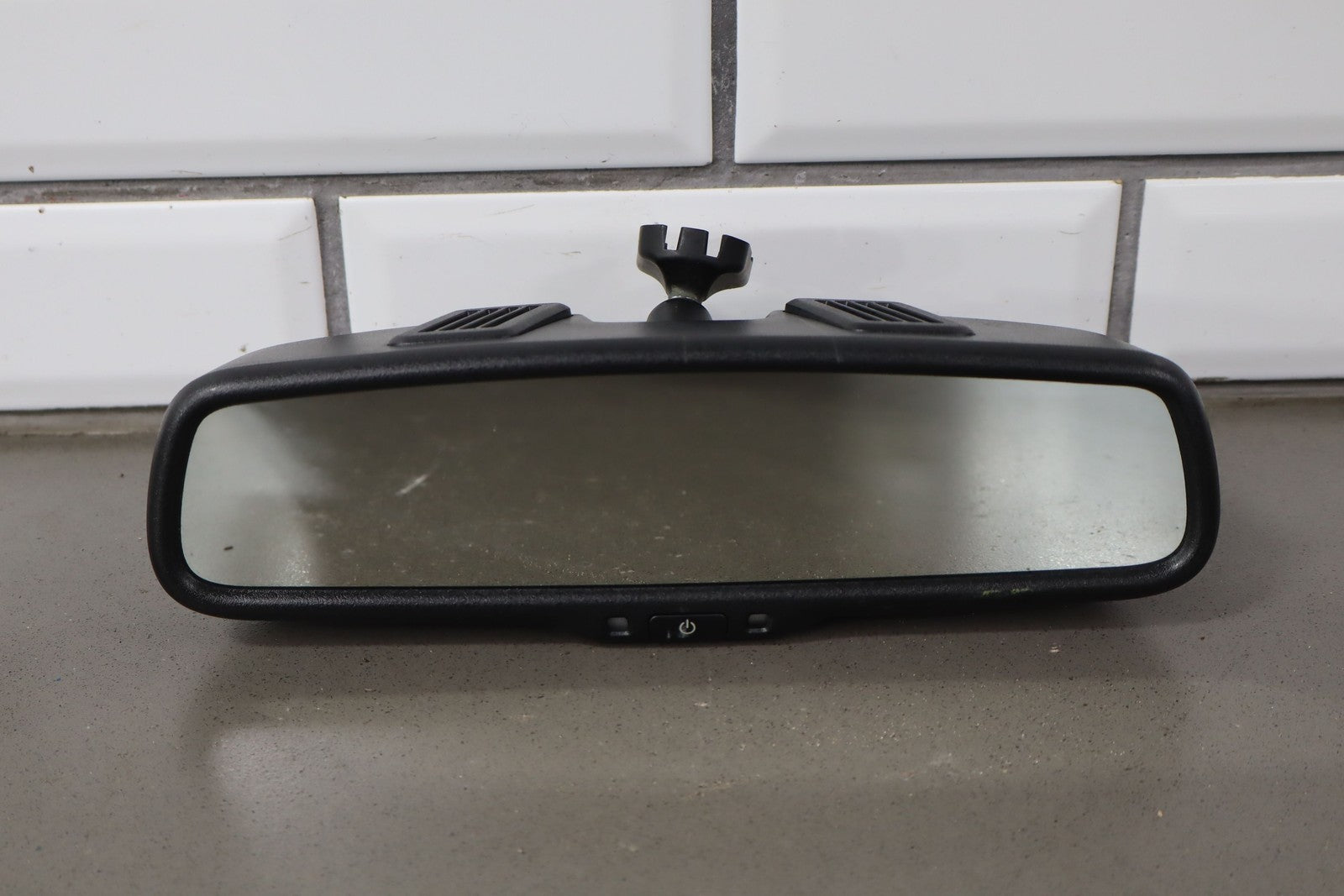 Automatic Dimming Mirror, Black Textured Plastic Frame, Hand Free Phone, Clean Lettering, Clear Glass