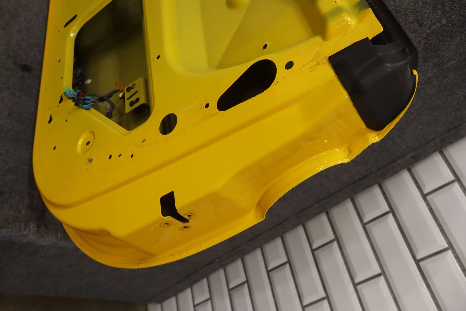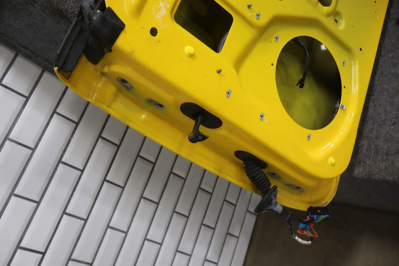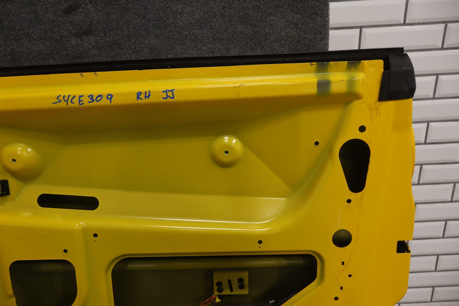 Rh Door Shell, Slingshot Yellow (79u), Sold Less Mirror-trim Panel-glass-regulator-handles, Small Paint Chips (green)