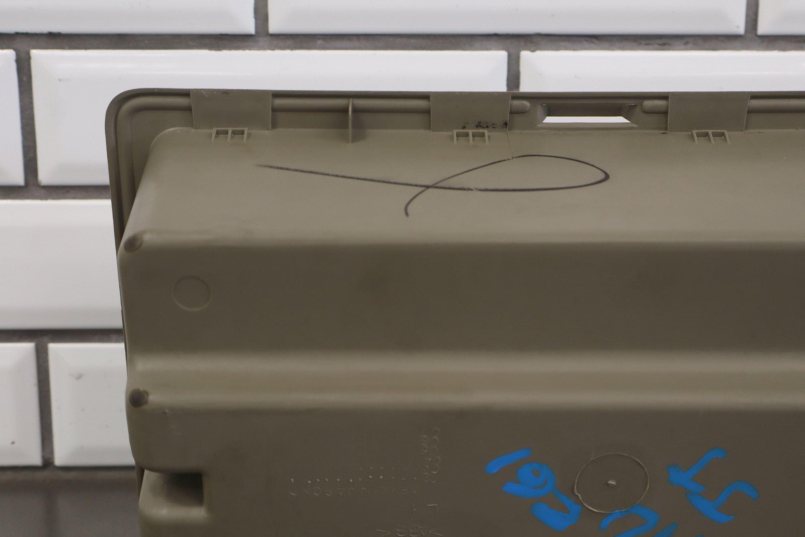 Important notes: Lh Trim Panel Cubby, Light Wheat (502), Light Scuffs/scratches, 1 Tie Down Tab Missing, Mild Staining