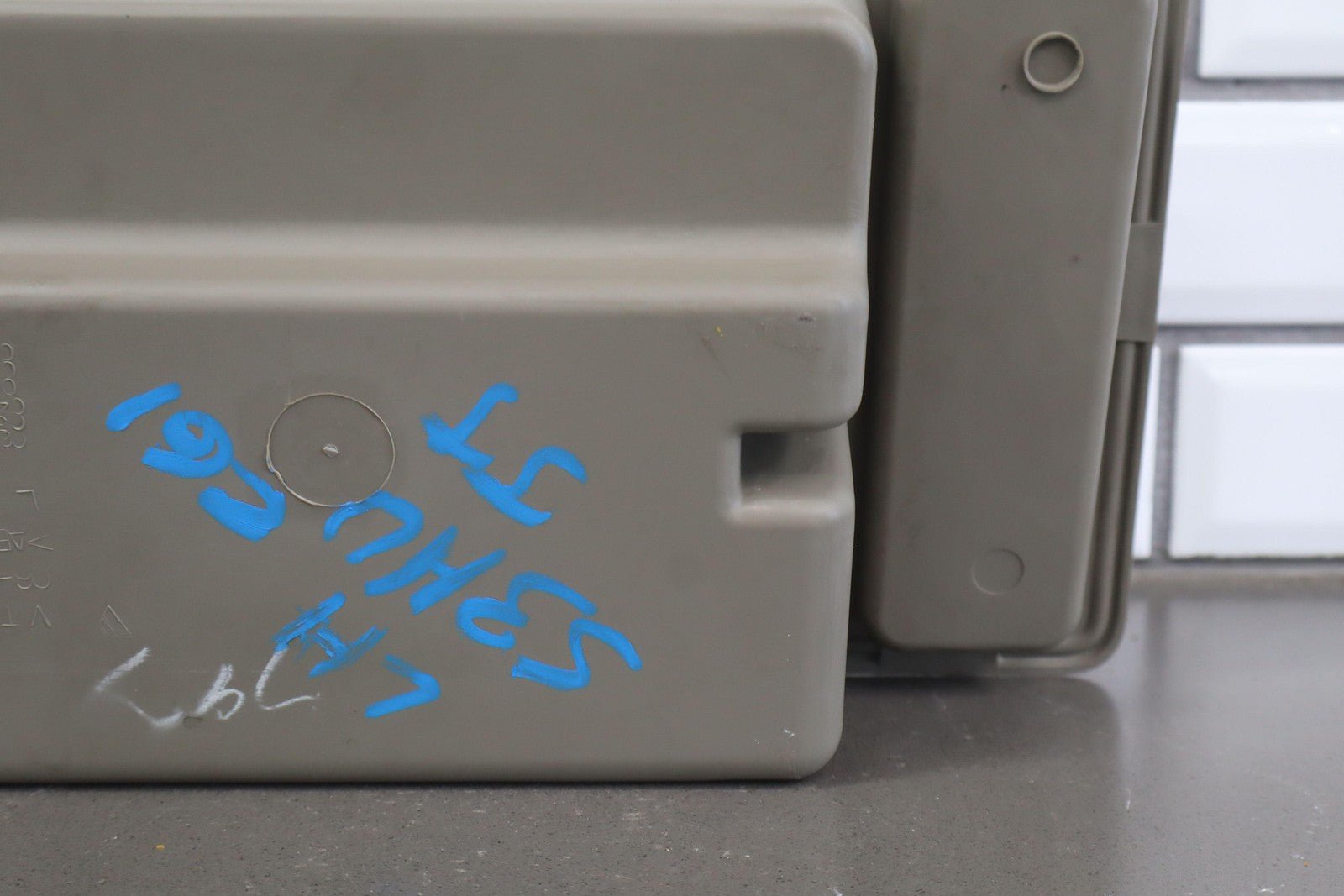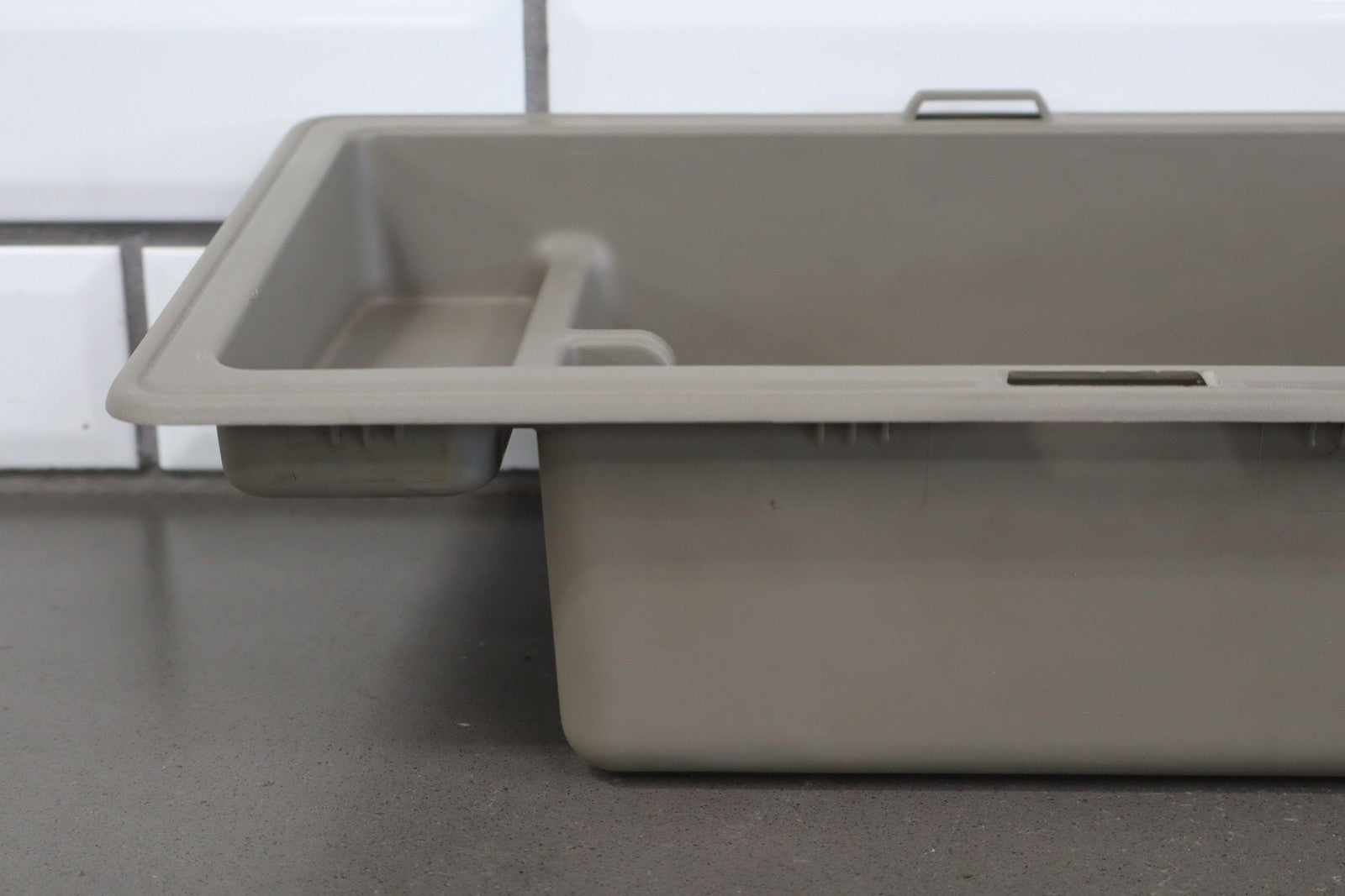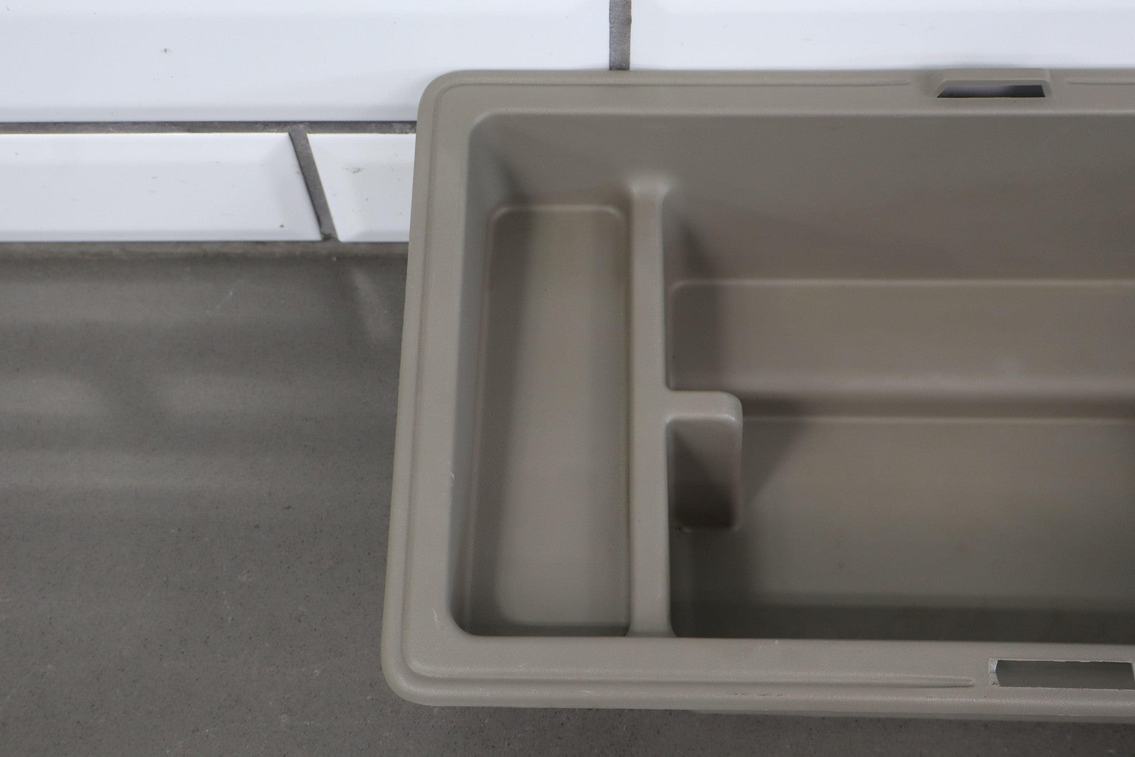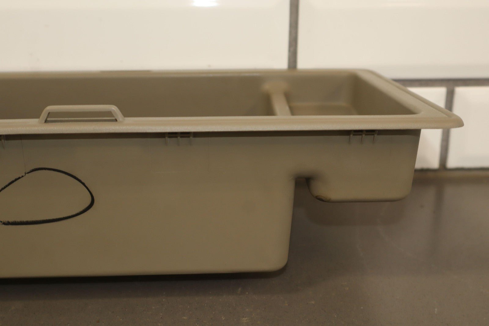 Lh Trim Panel Cubby, Light Wheat (502), Light Scuffs/scratches, 1 Tie Down Tab Missing, Mild Staining