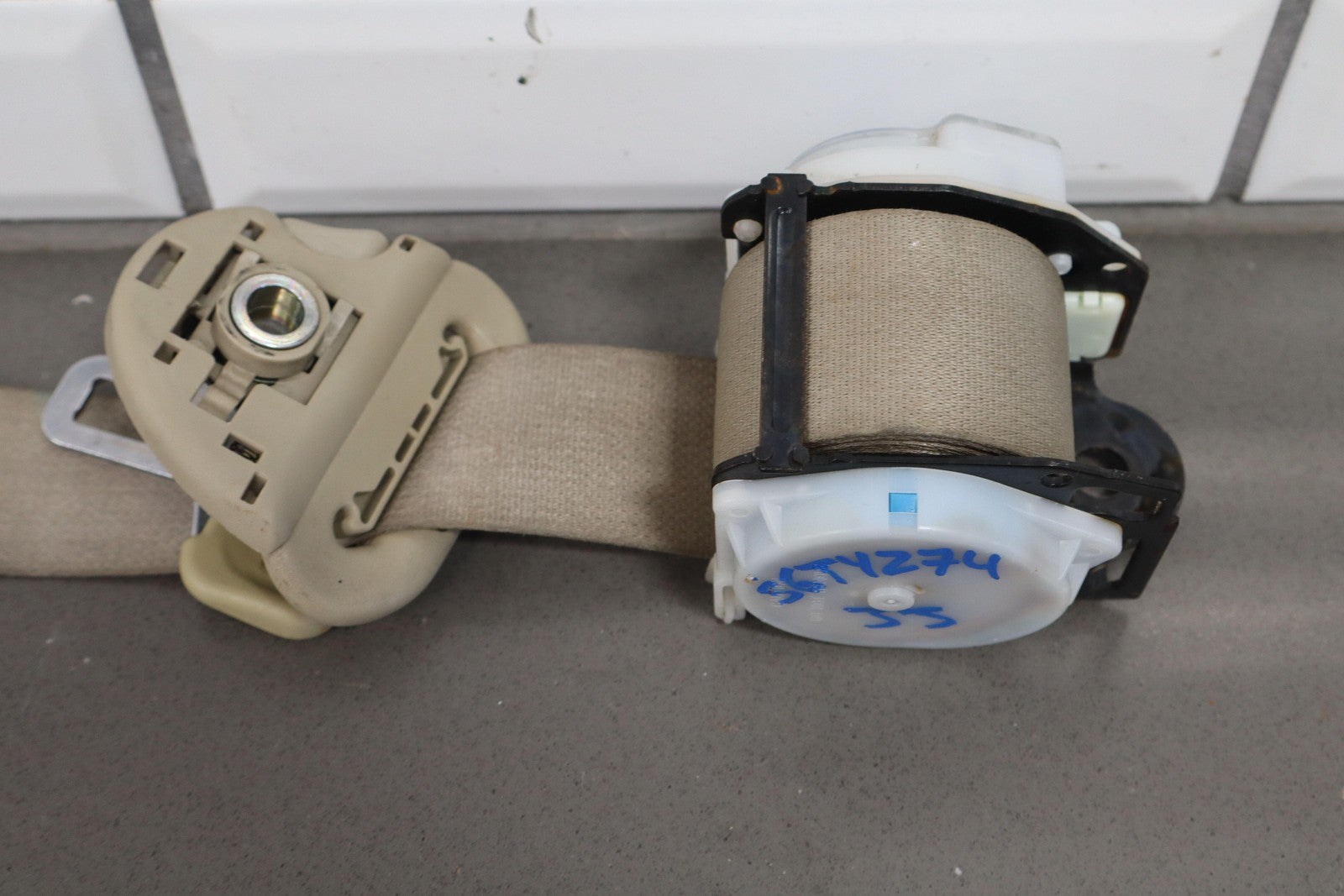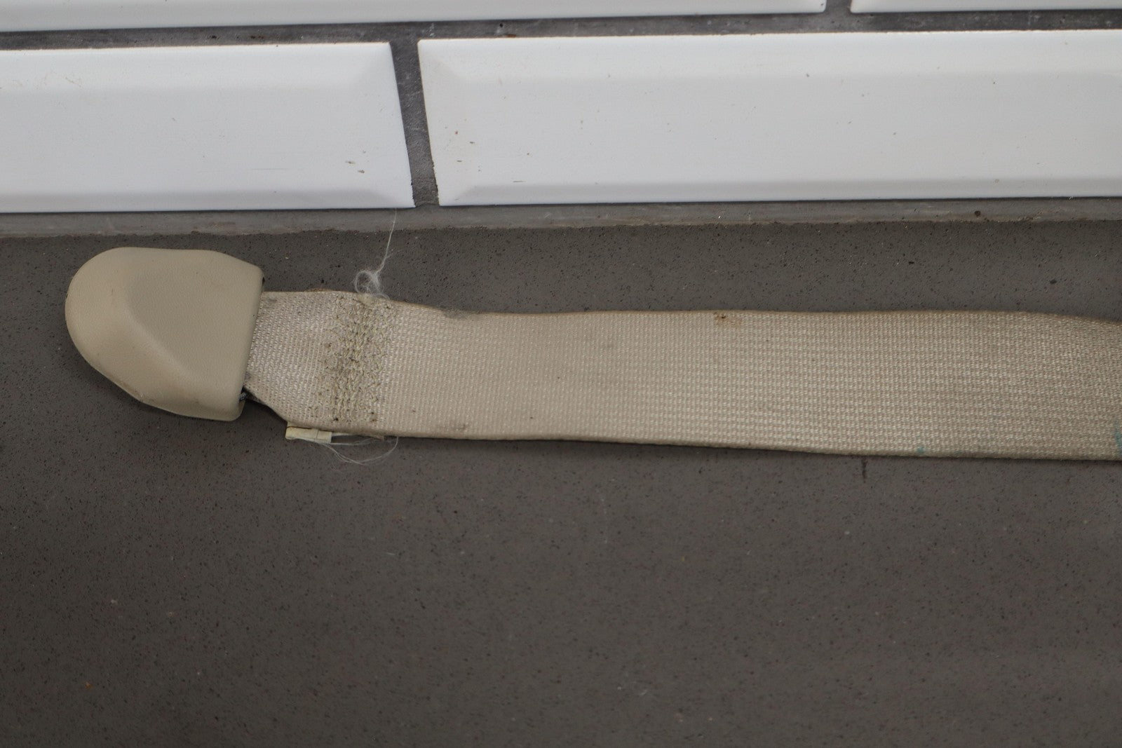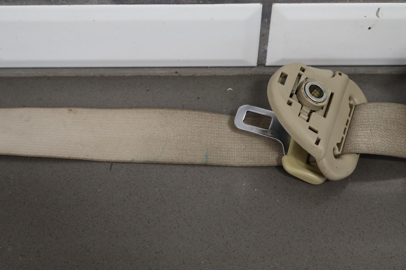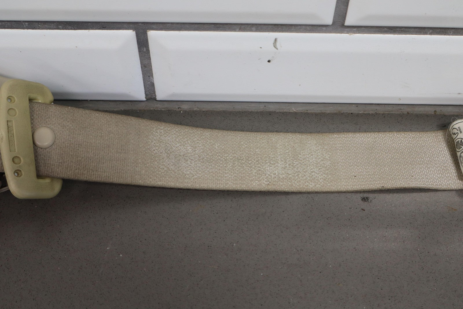 Important notes: Lh Rear Retractor (2nd Row), Ivory (00), Decent Staining, Mild Wear, Retracts Properly