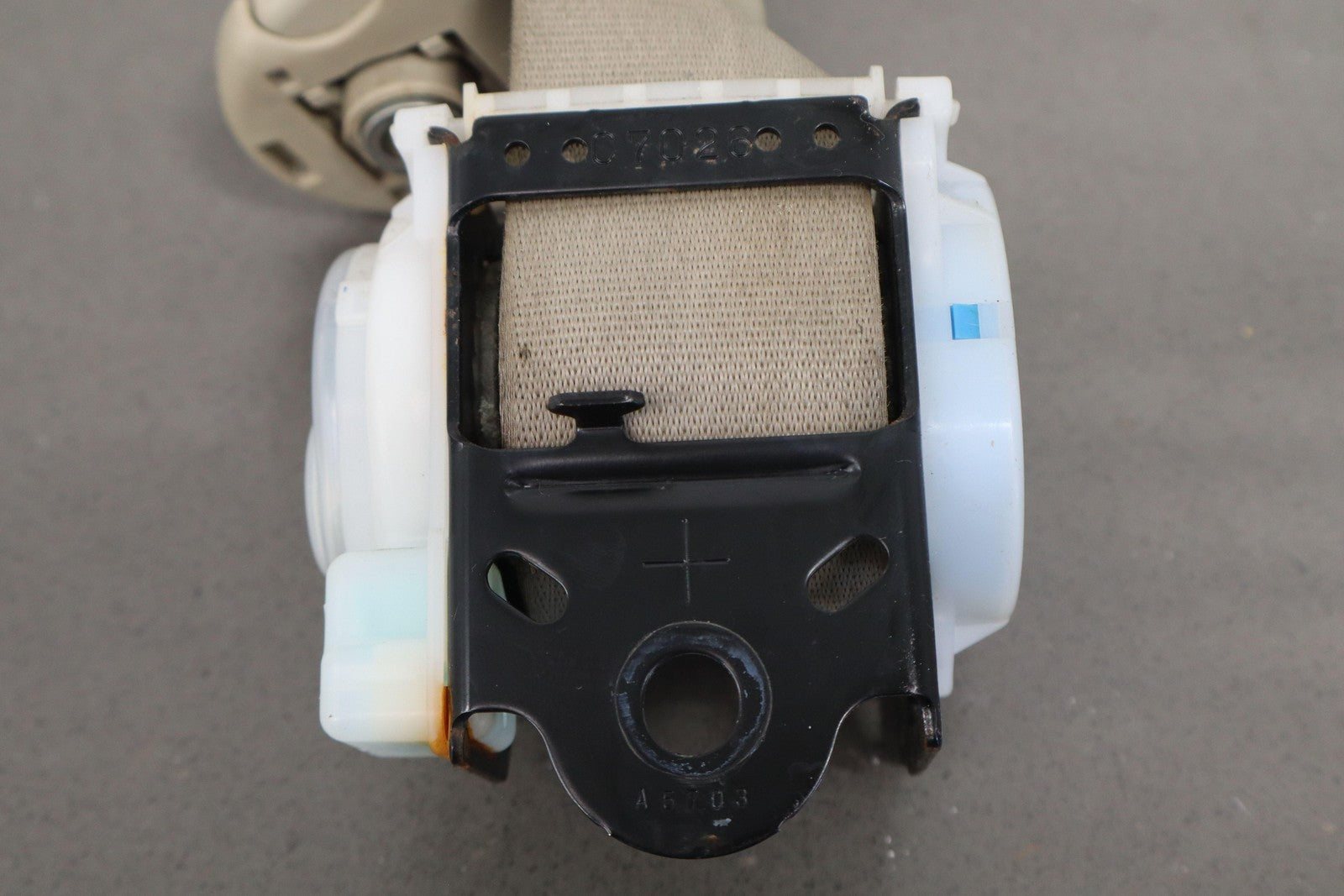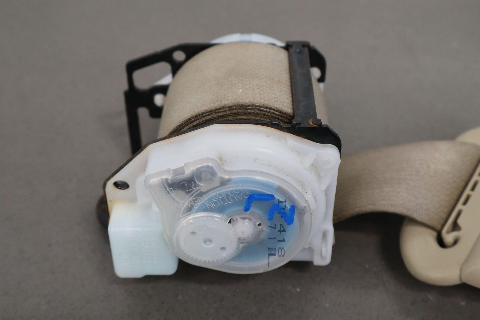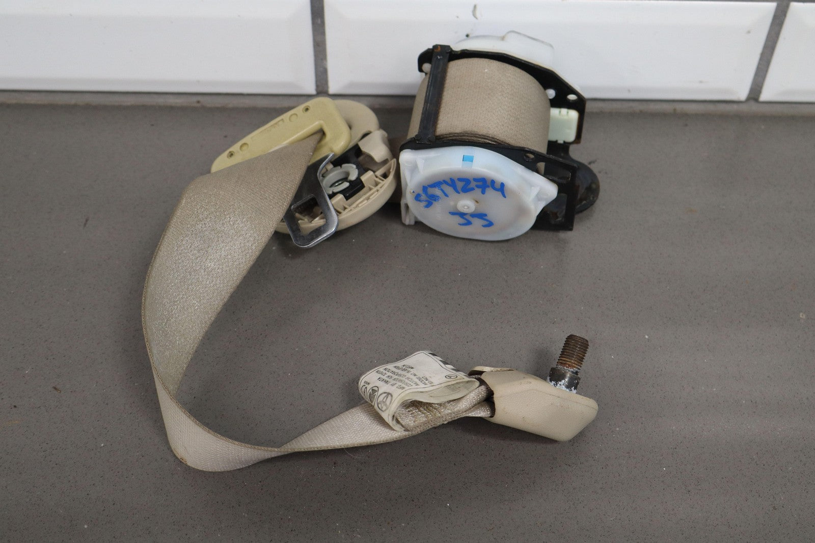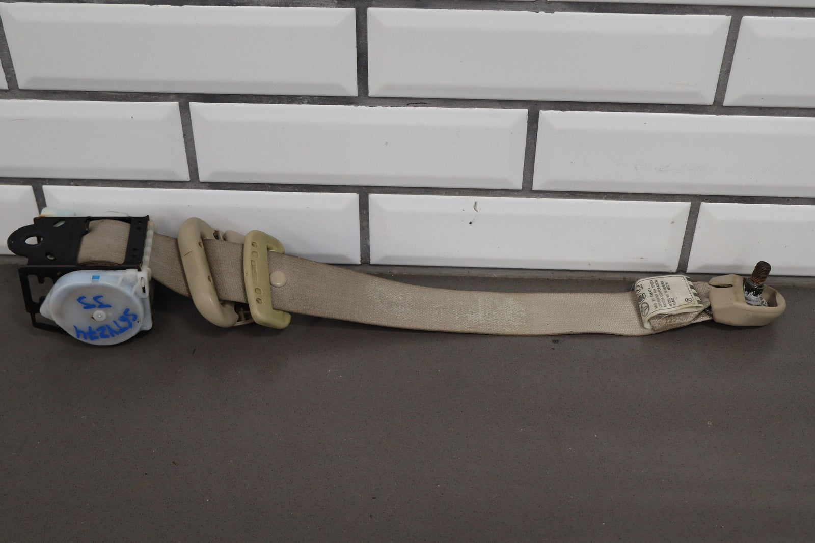Important notes: Lh Rear Retractor (2nd Row), Ivory (00), Decent Staining, Mild Wear, Retracts Properly