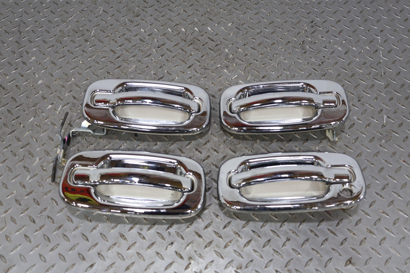 Lh-rh/front-rear Outer Handle Set, White Diamond (98u) W/aftermarket Chrome Trim, Mounted Solid, All Function Properly
