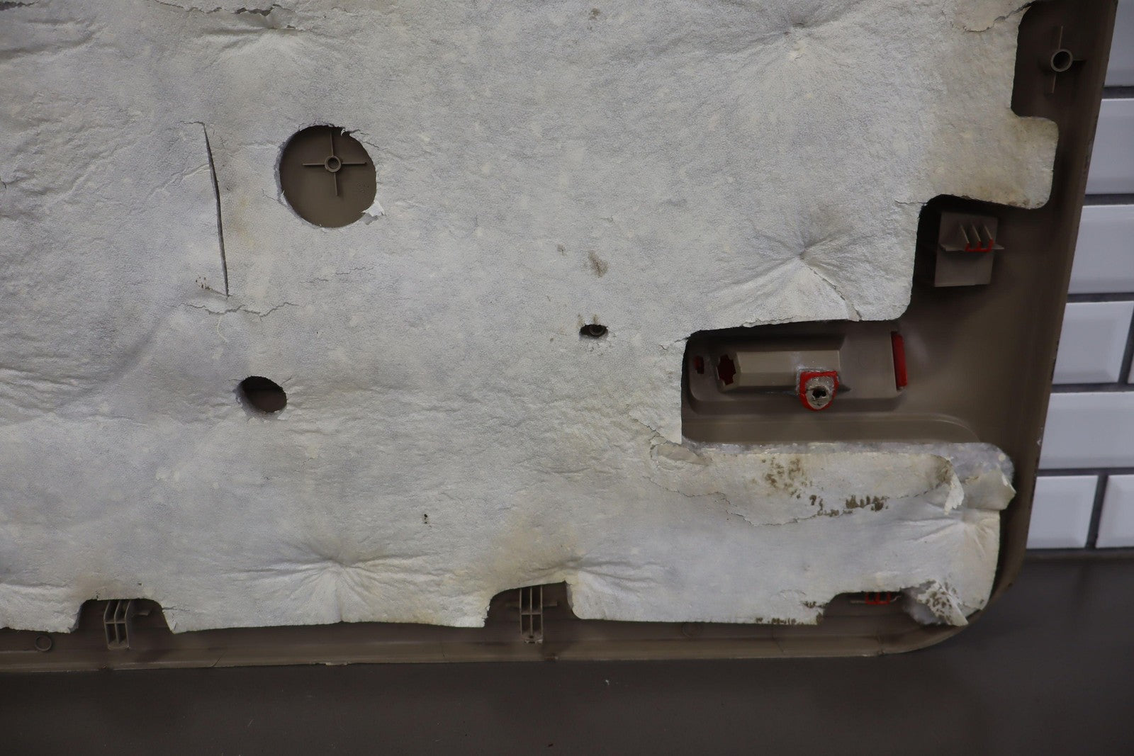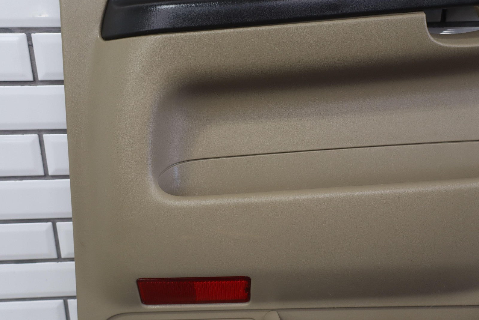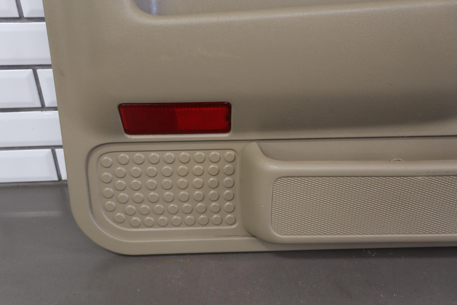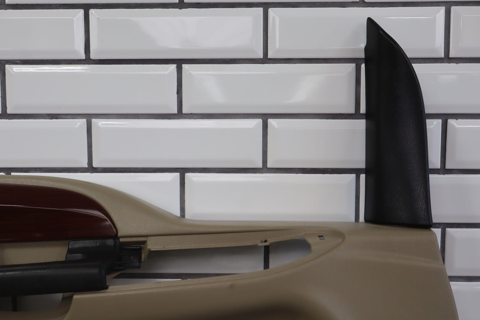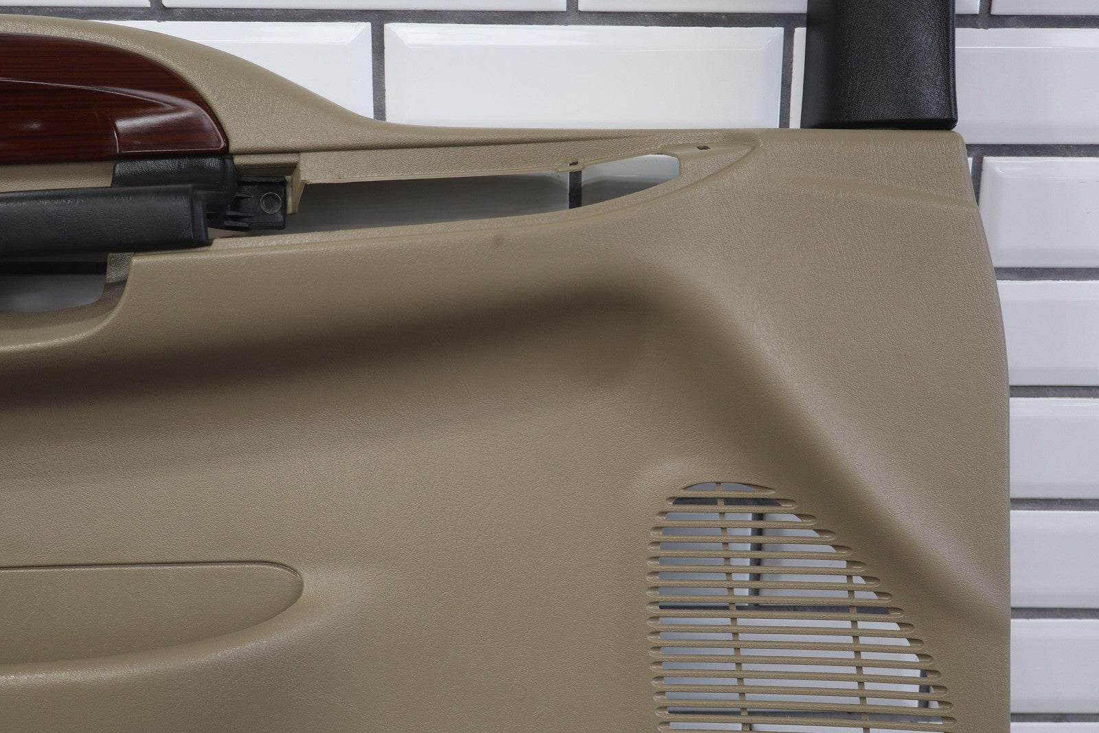 Important notes: Lh Front (power), Tan (8h) W/woodgrain, No Window Master Switch, Multiple Missing/cracked/repaired Tabs (red), Minor Wear