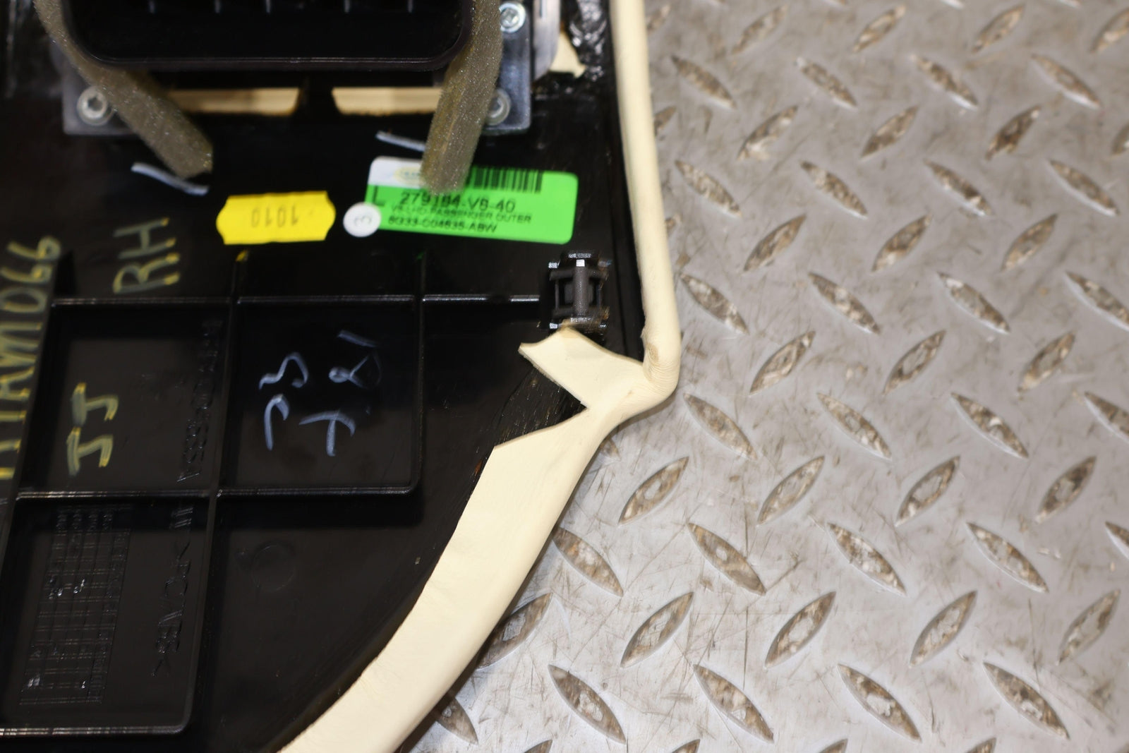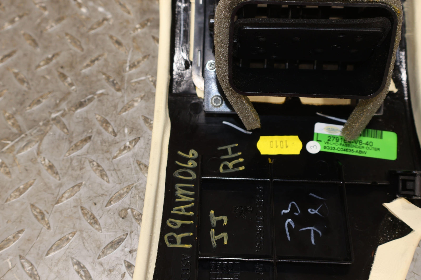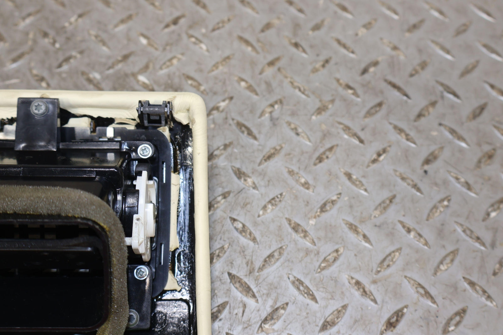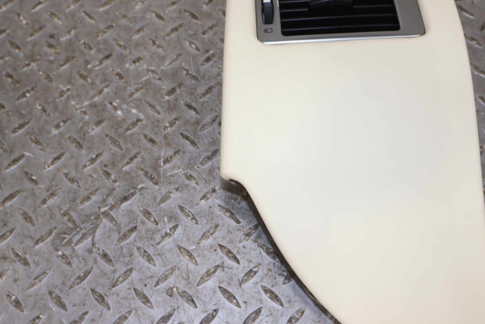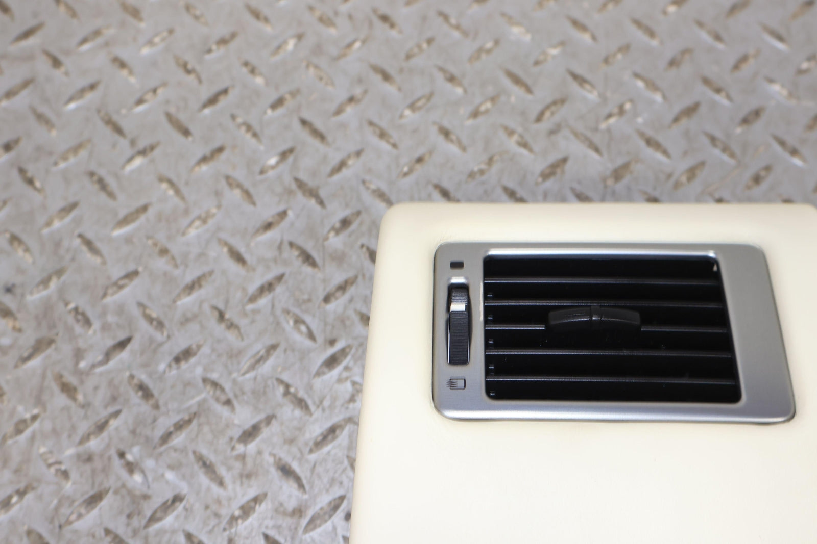 Rh Dash Mounted Ac Vent, Cream Truffle Leather Wrapped Bezel, Light Staining, Mounted Solid, Vent Functions Properly