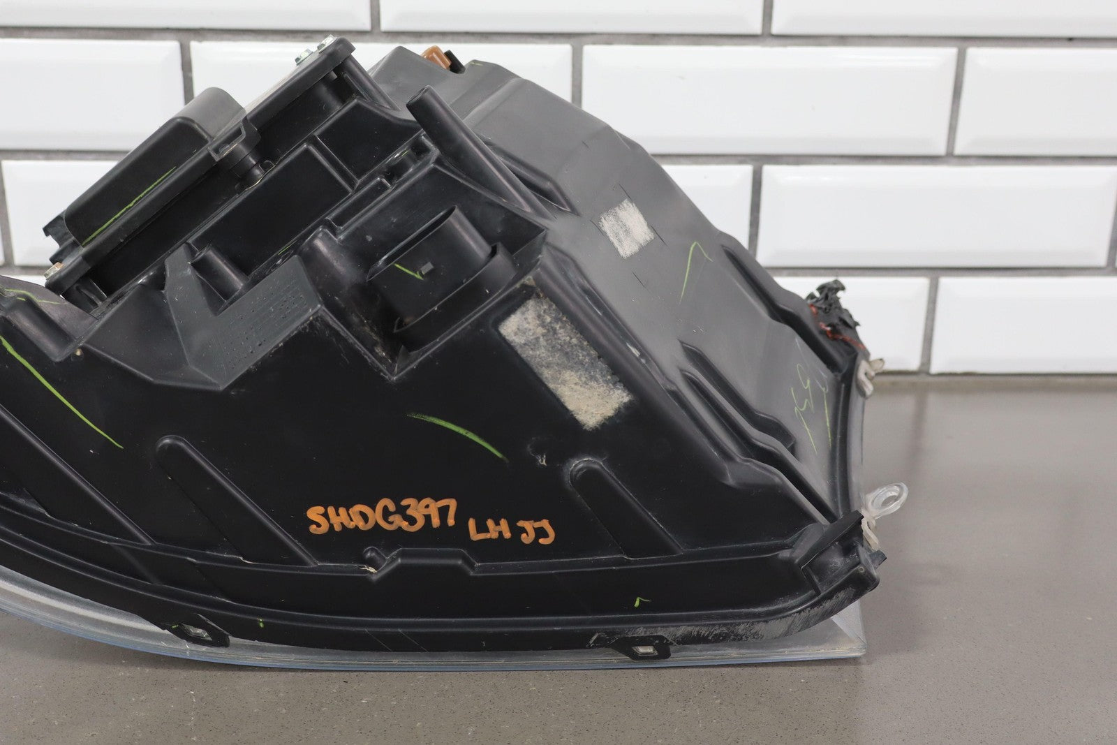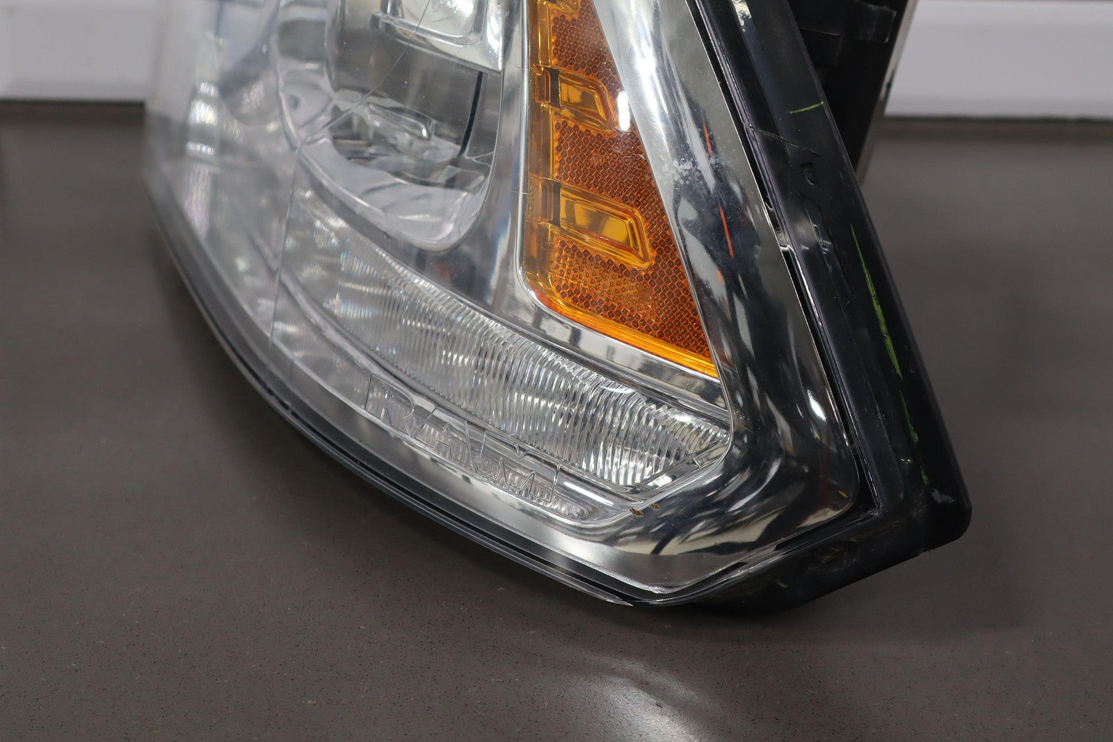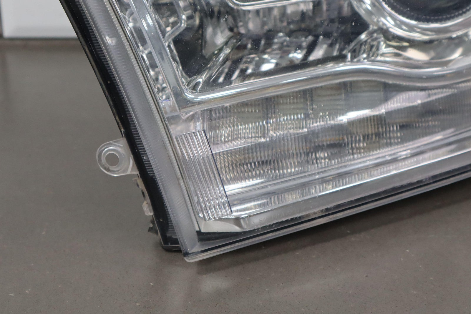 Important notes: Lh, Bi-functional Halogen Projector, Chrome Bezel, Light Scuffs To Lens, Functions Properly, 1 Repaired Tab (red)