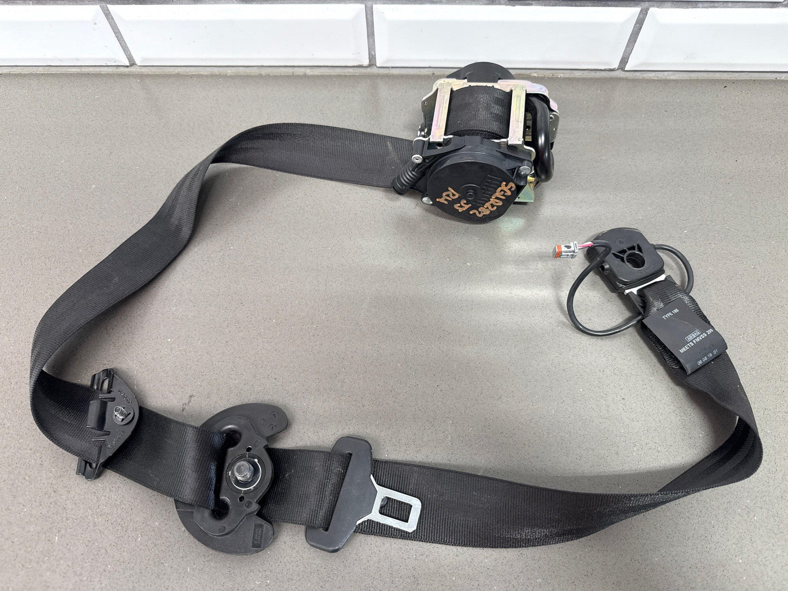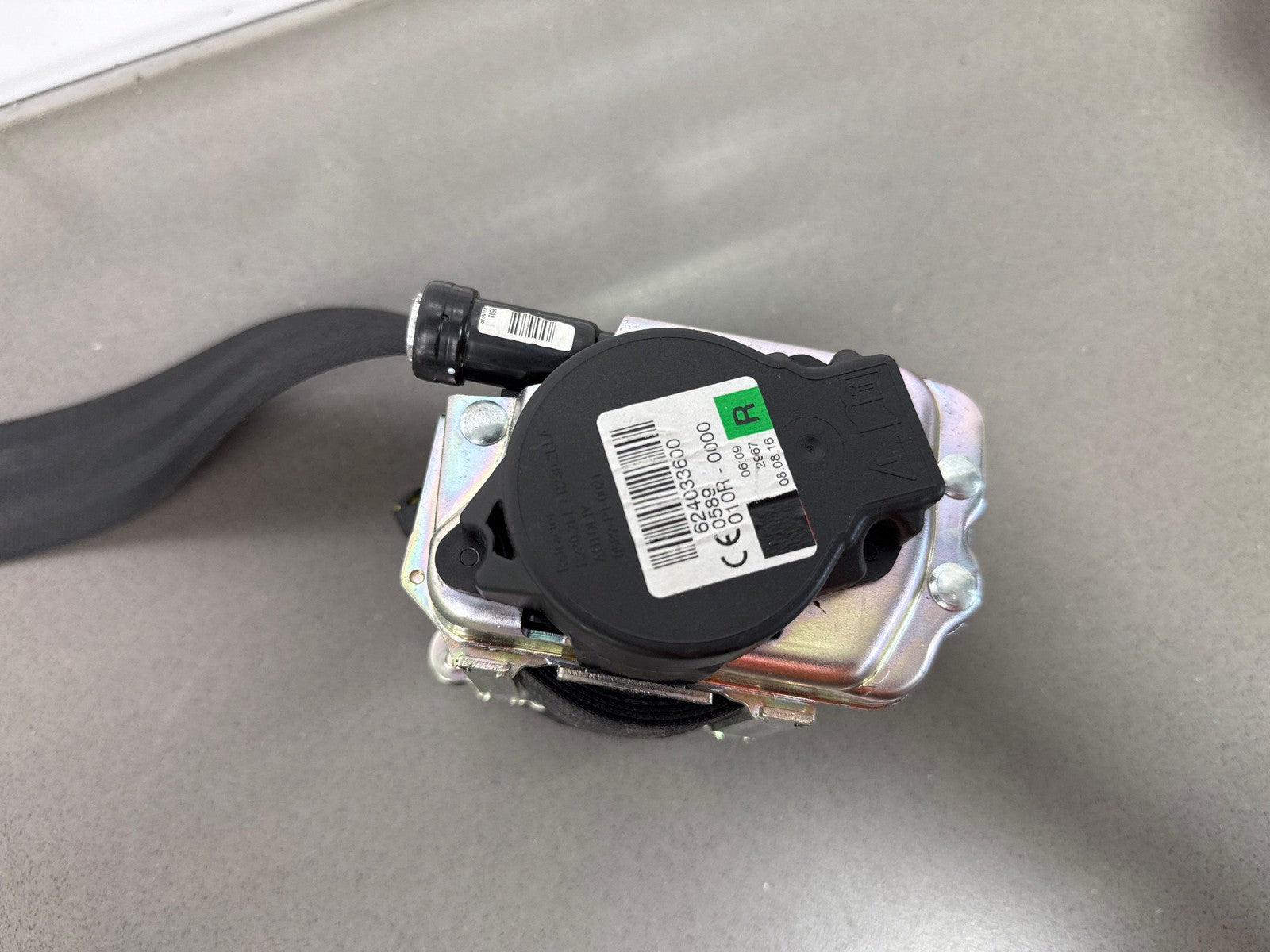 Rh Front Retractor (thru Vin Ga591134), Ebony Cirrius (tot), Mild Wear, Light Staining, Retracts Properly