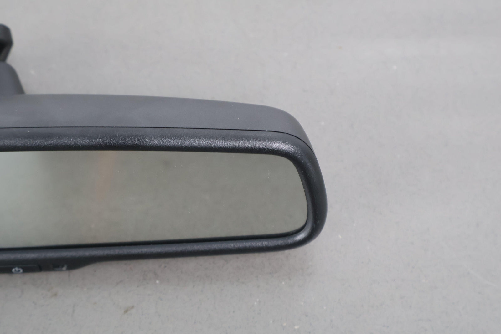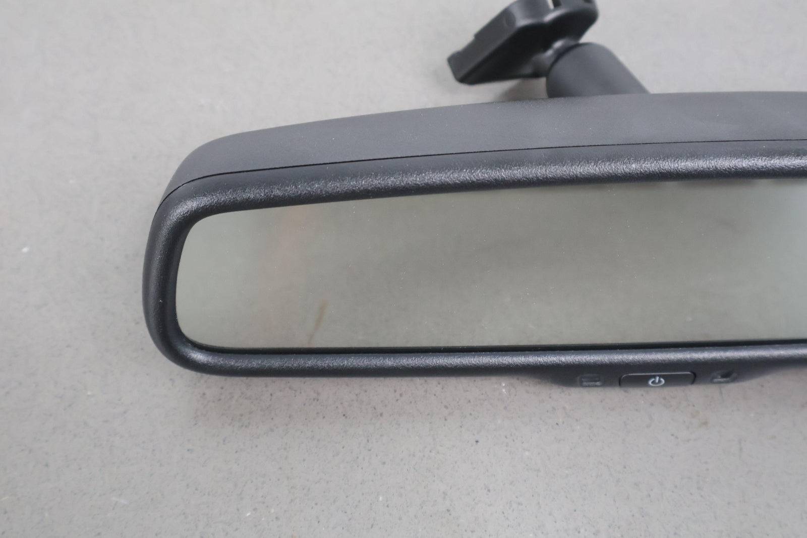Automatic Dimming Mirror, Black Textured Plastic Frame, Clear Mirror Glass, Clean Button Lettering, W/o Garage Door Opener