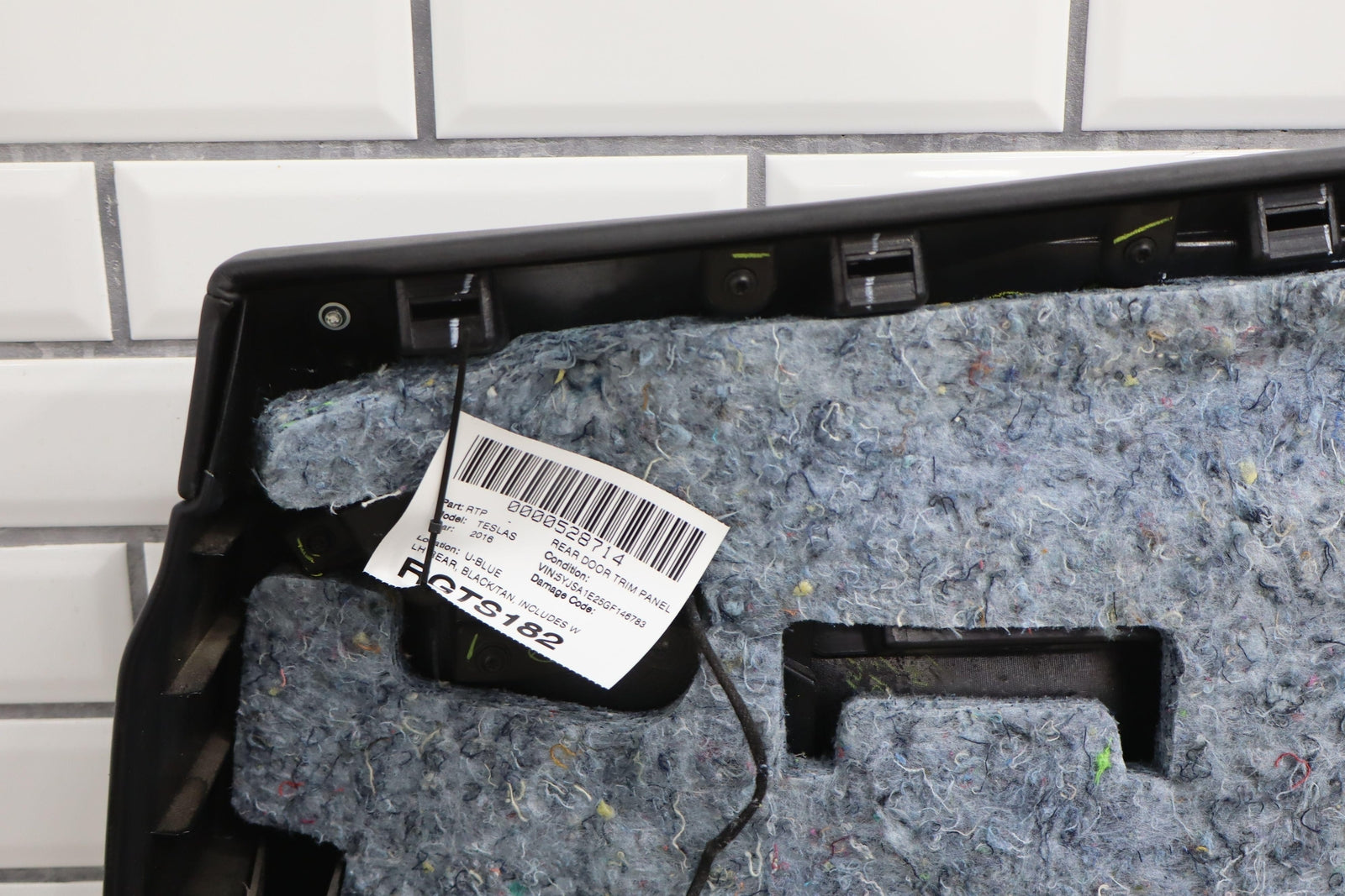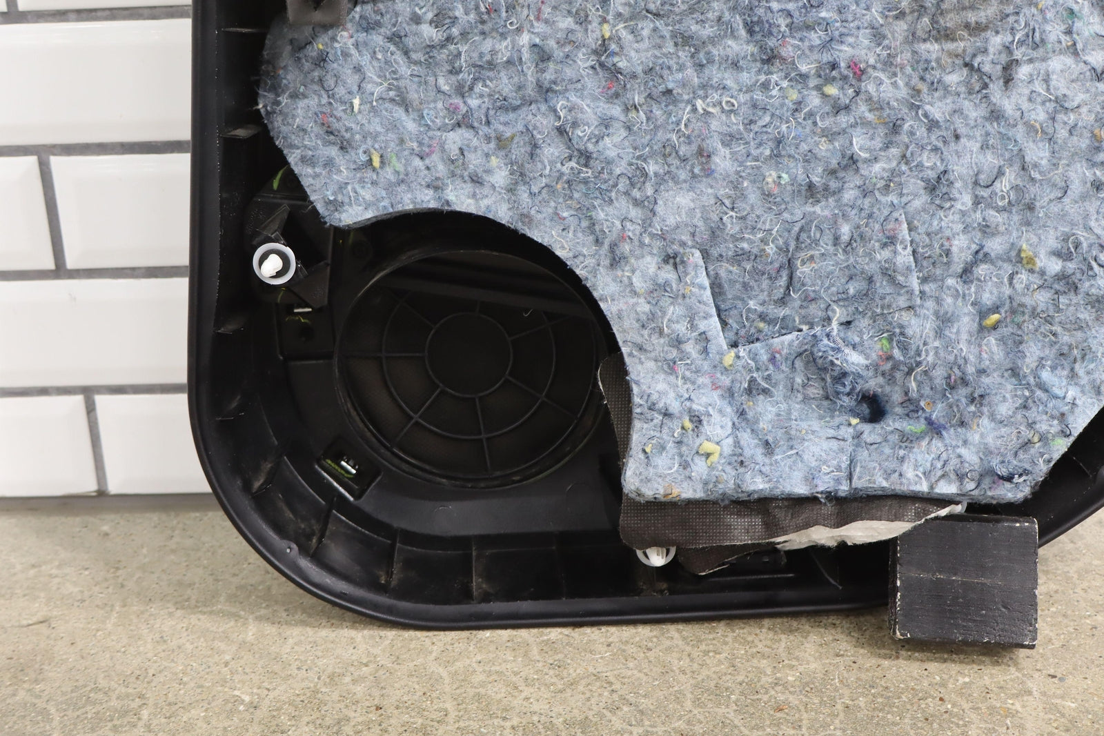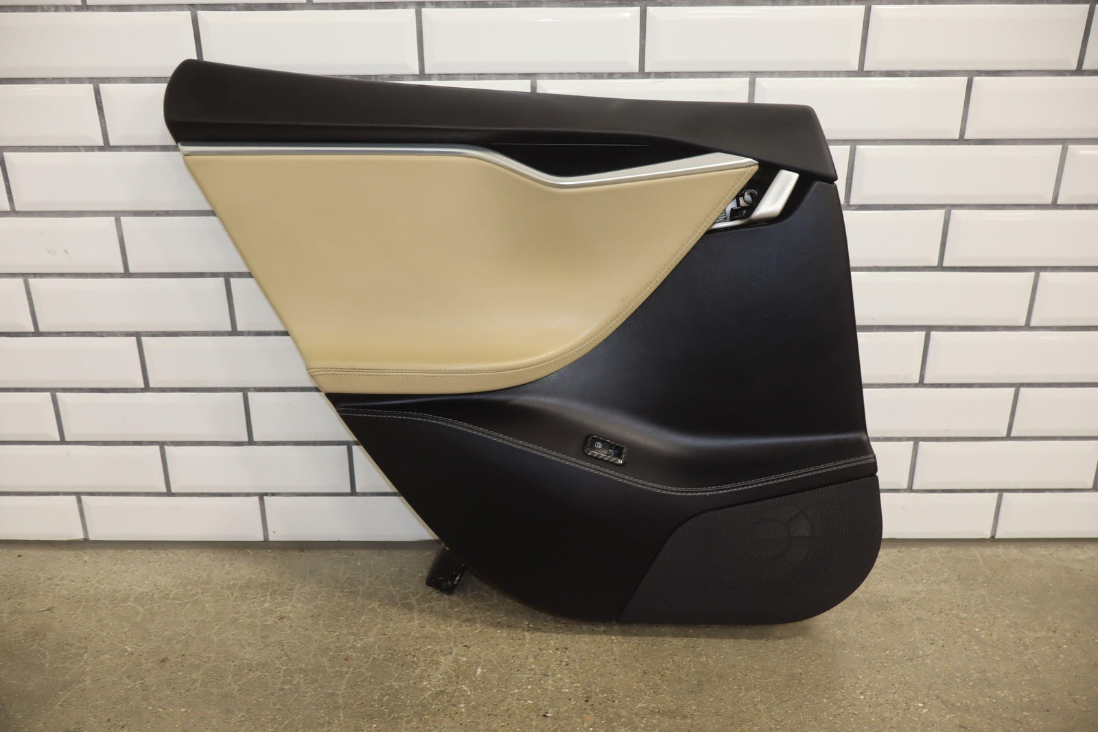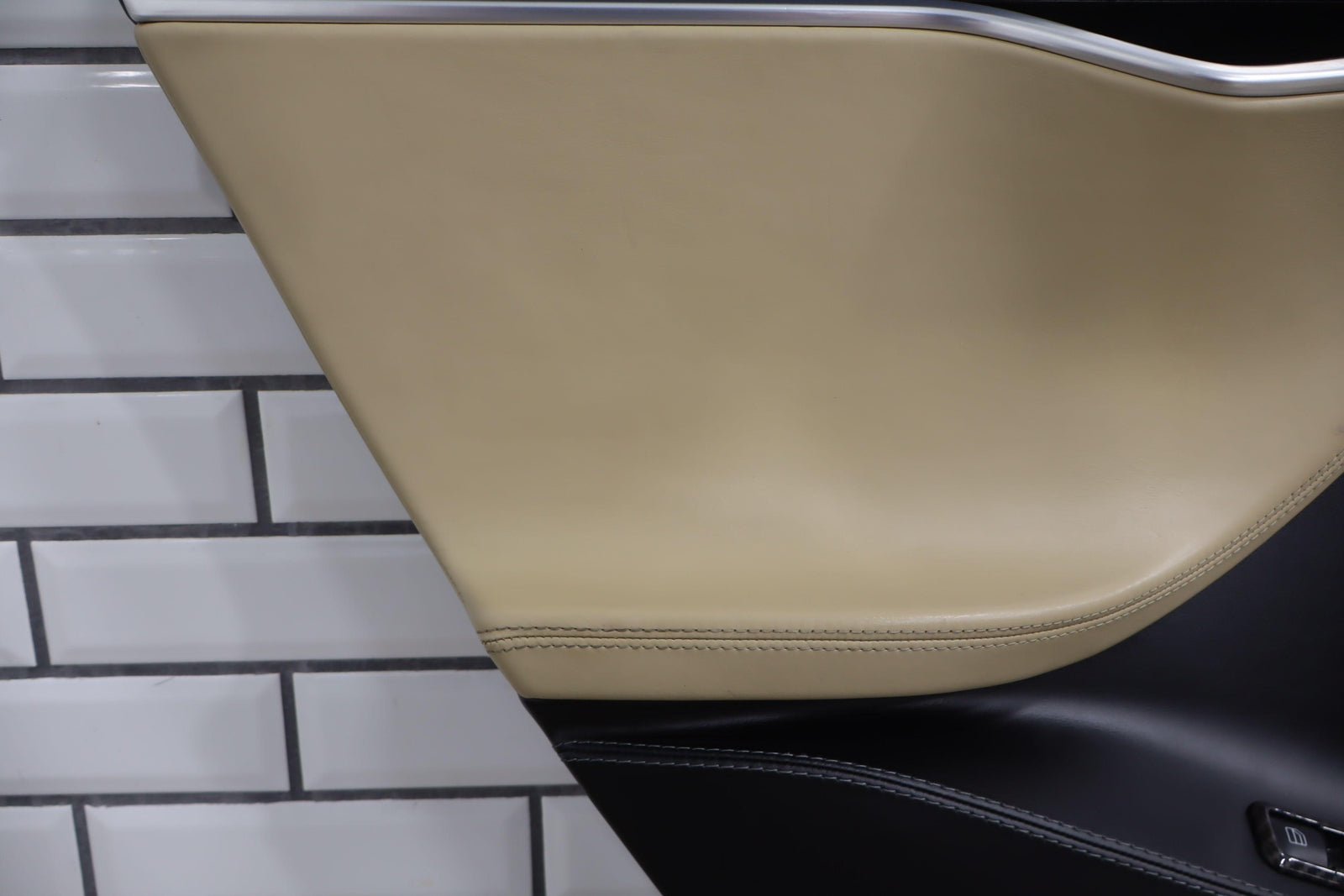 Lh Rear, Black/tan, Includes Window Switch, Aftermarket Carbon Switch Trim, Mild Wear, Light Staining, Mounted Solid
