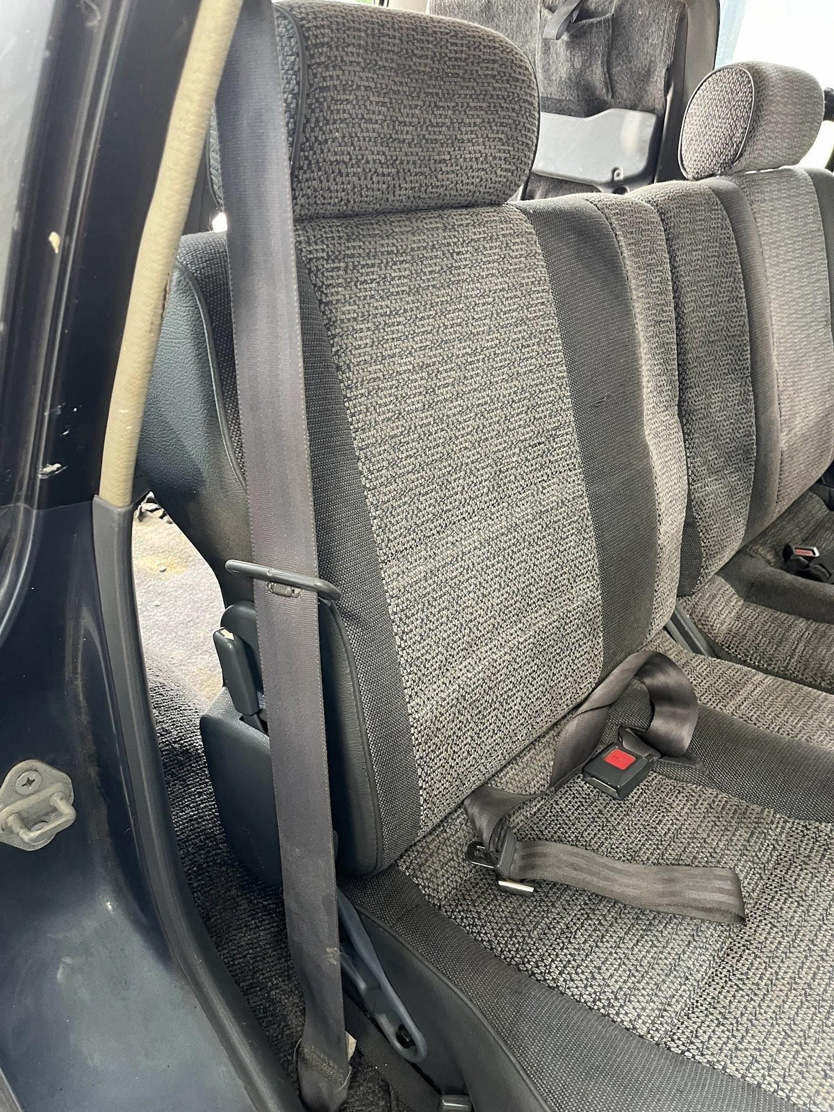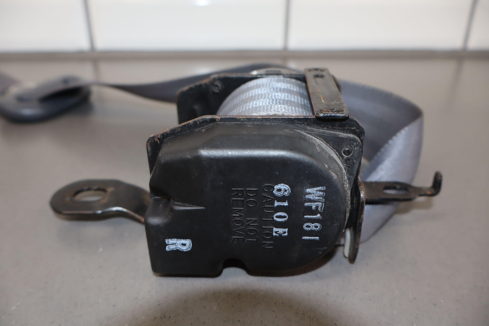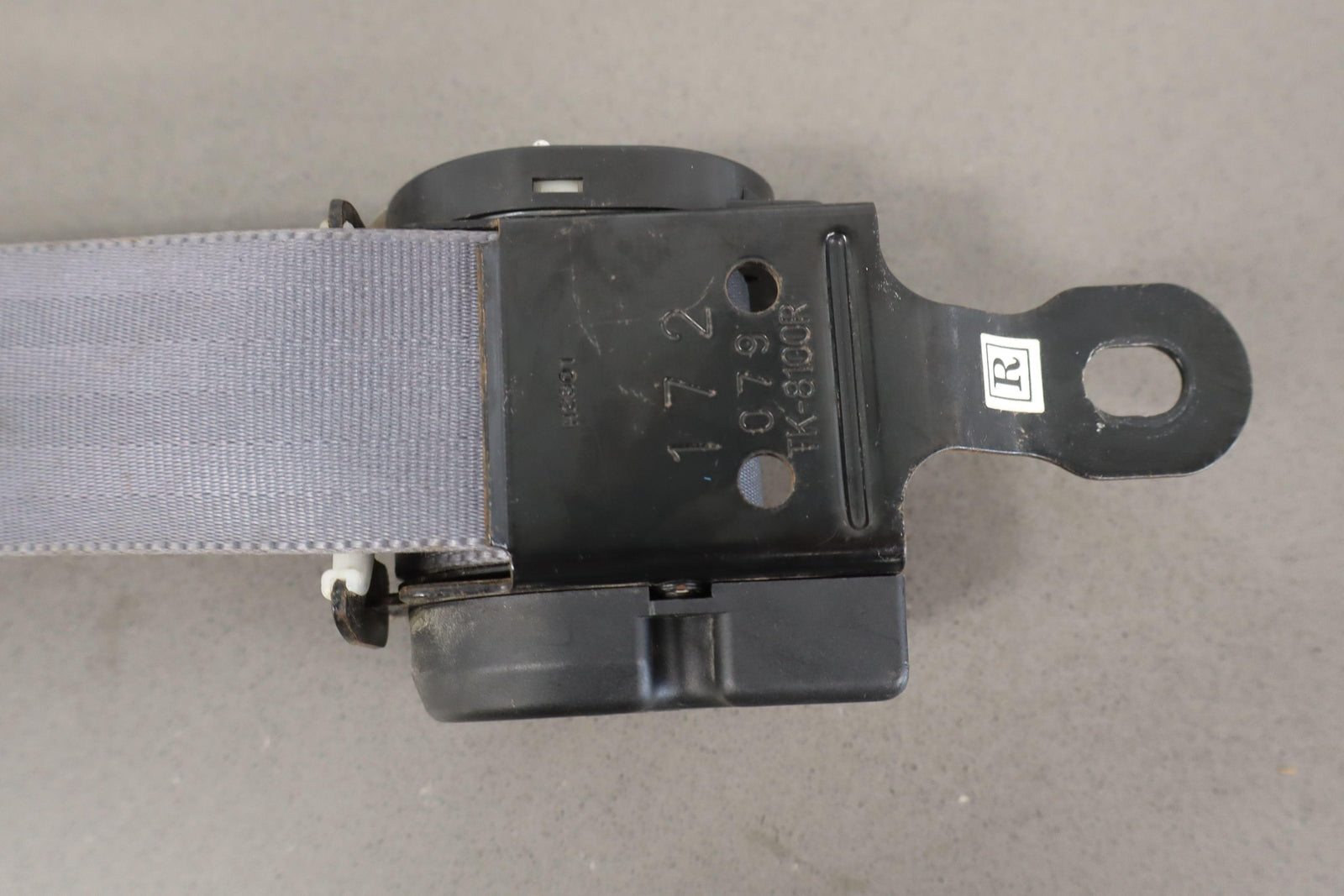 Rh Rear Retractor (2nd Row), Gray, Mild Staining, Minimal Signs Of Wear, Retracts Properly