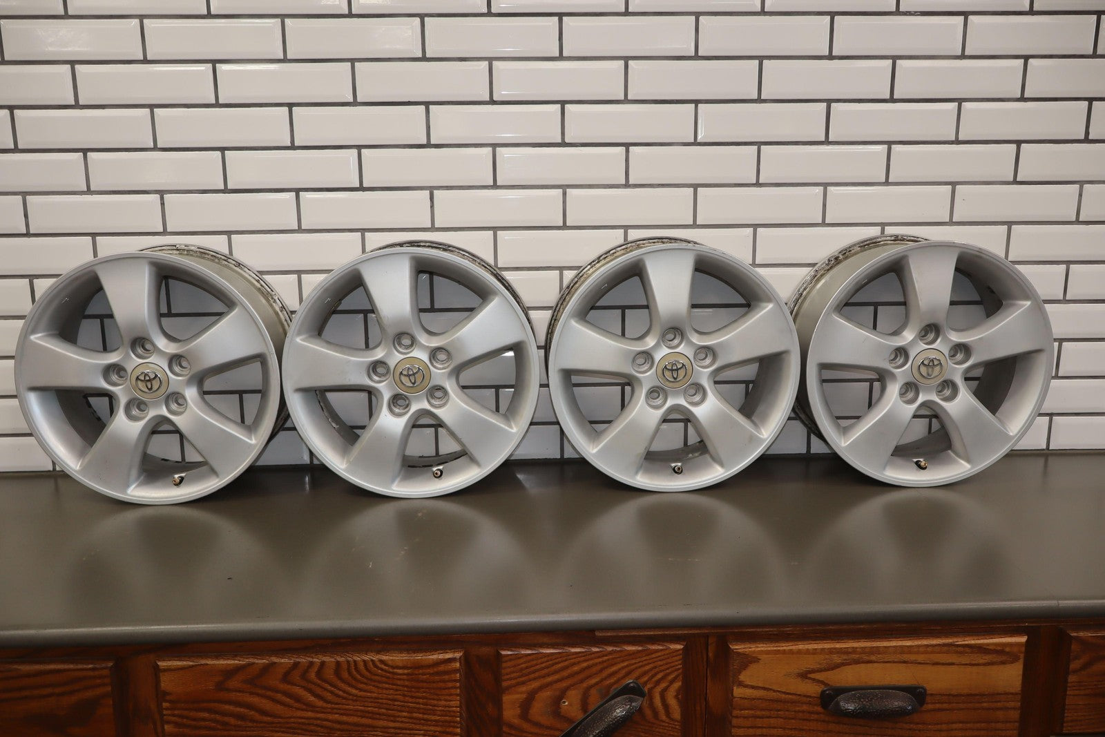 Set Of 4 Oem Toyota 5 Spoke Wheels, 16x6.5, Silver, Weathered Finish, All Spun True