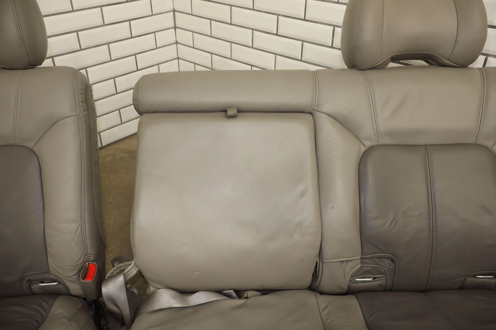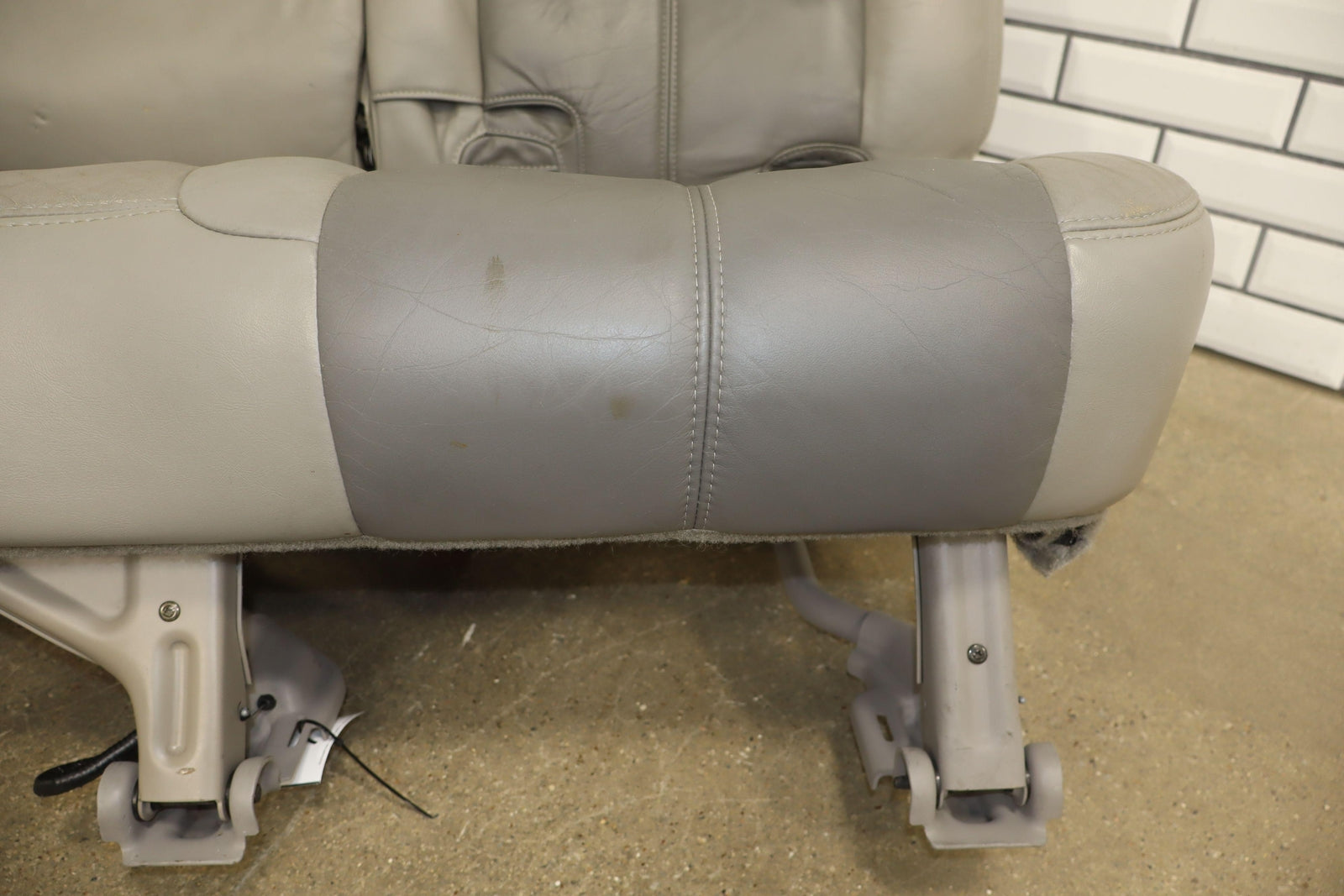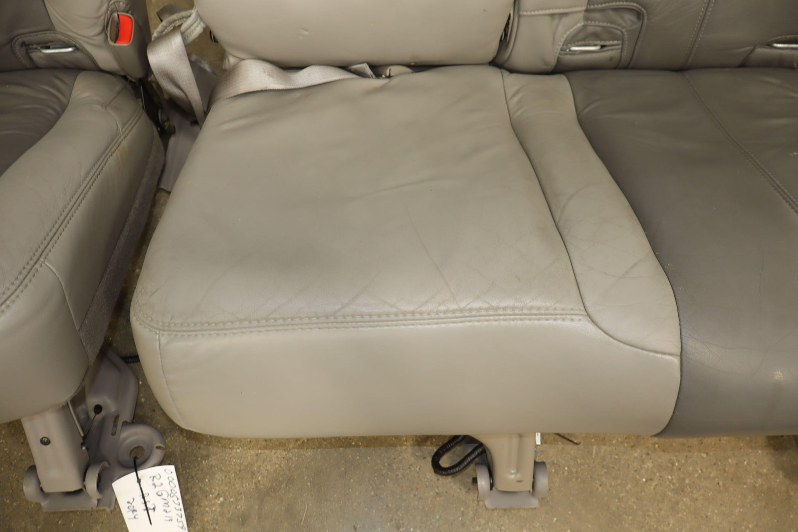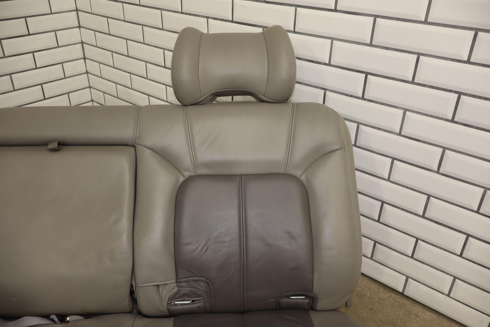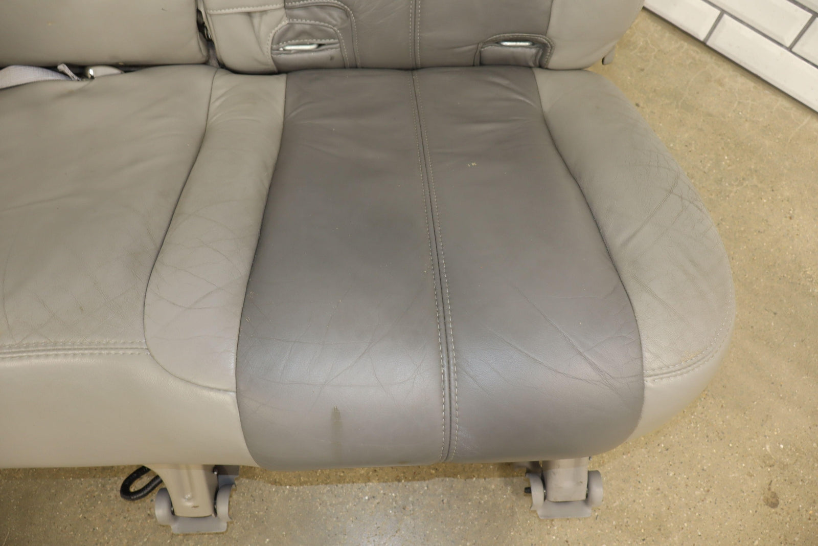 2nd Row Leather Bench Seat, Stone Gray (922), Mild Staining Throughout, Some Wear, Includes Transition Panels