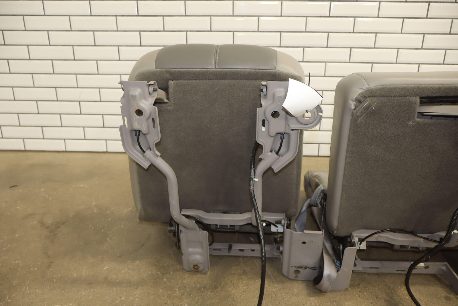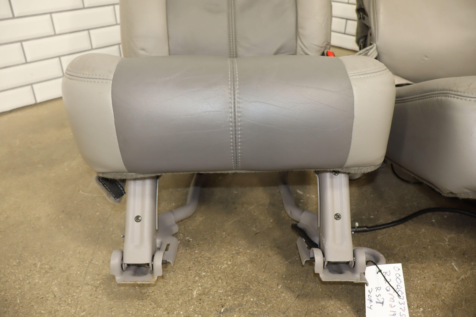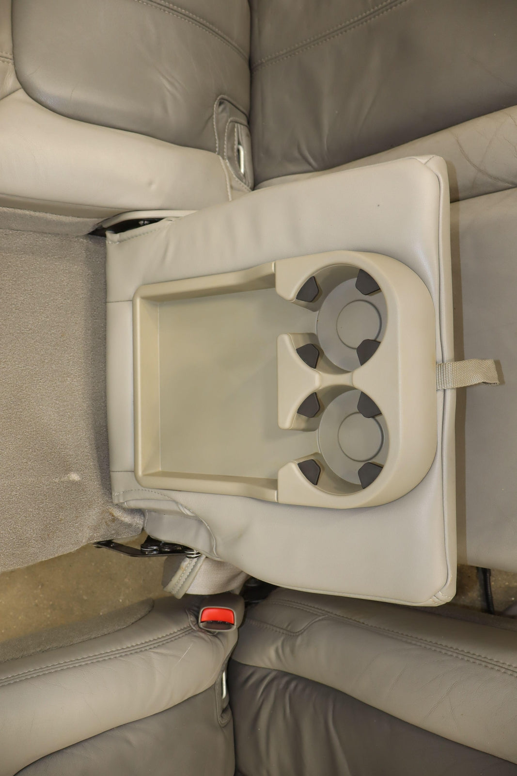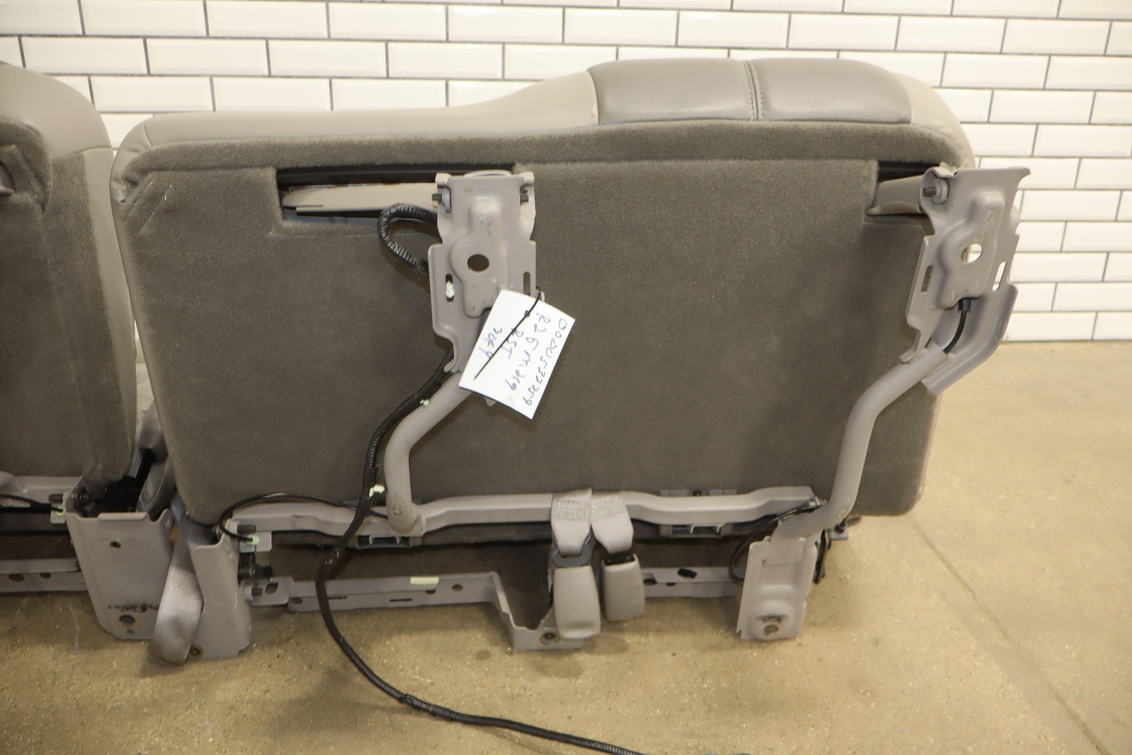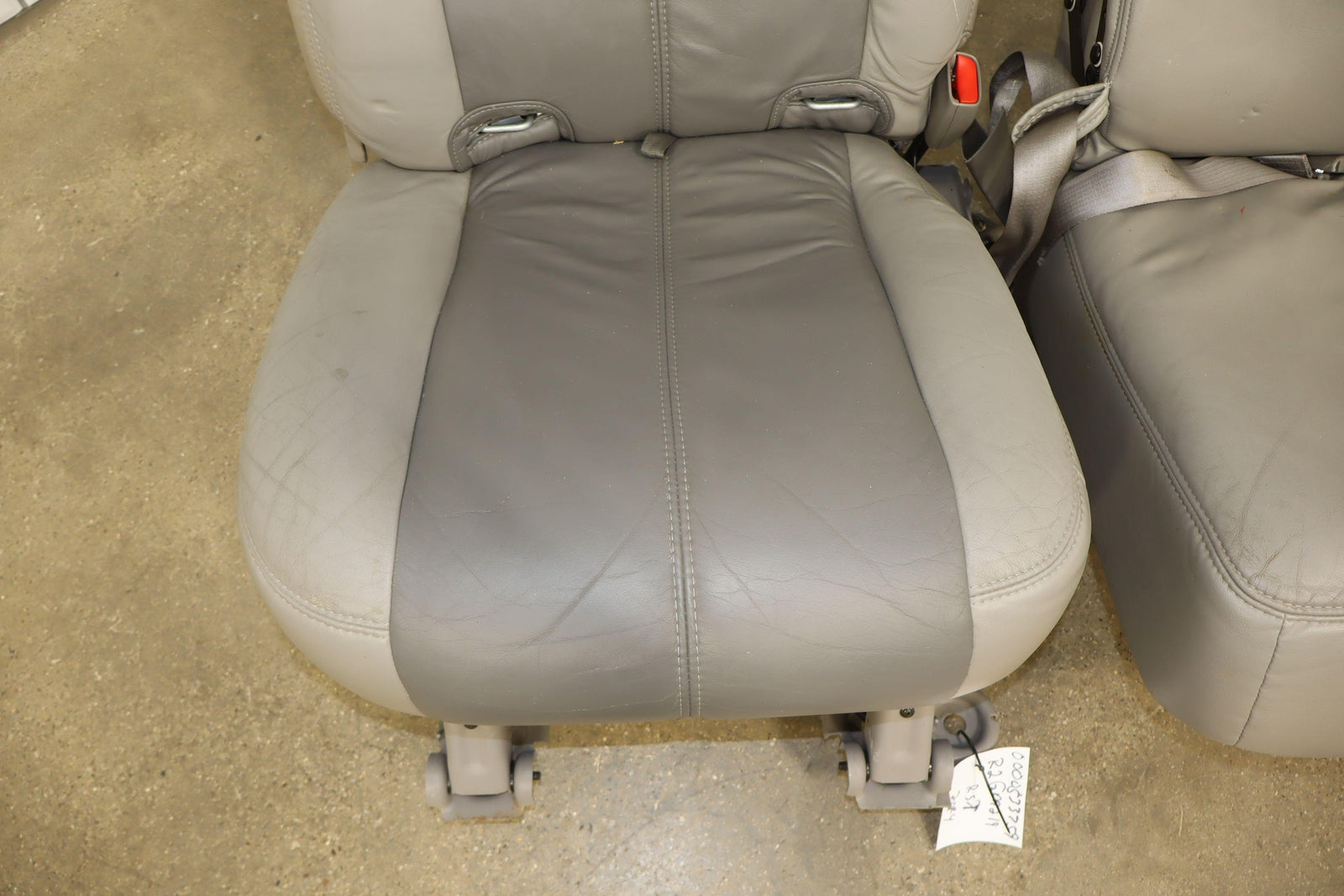 2nd Row Leather Bench Seat, Stone Gray (922), Mild Staining Throughout, Some Wear, Includes Transition Panels