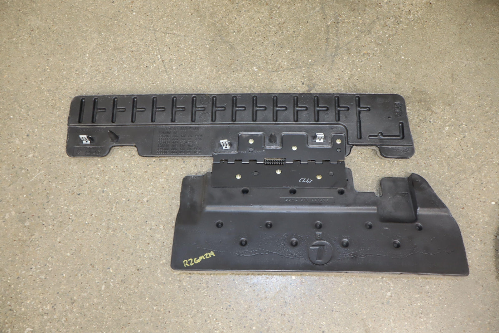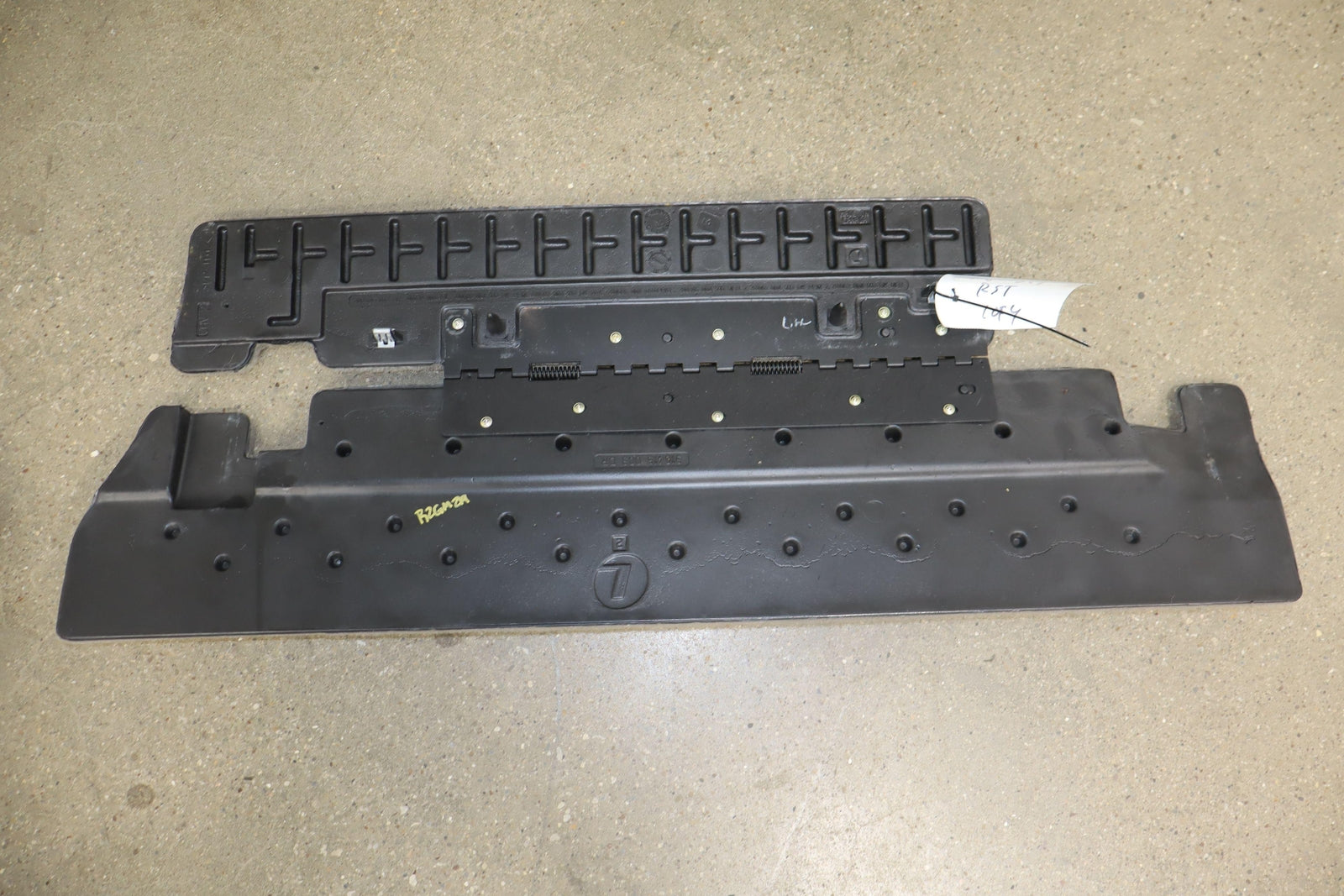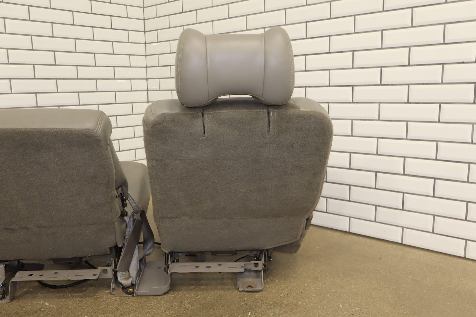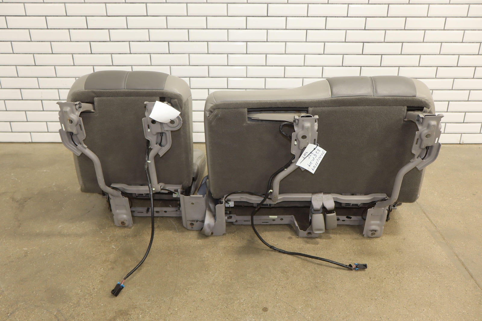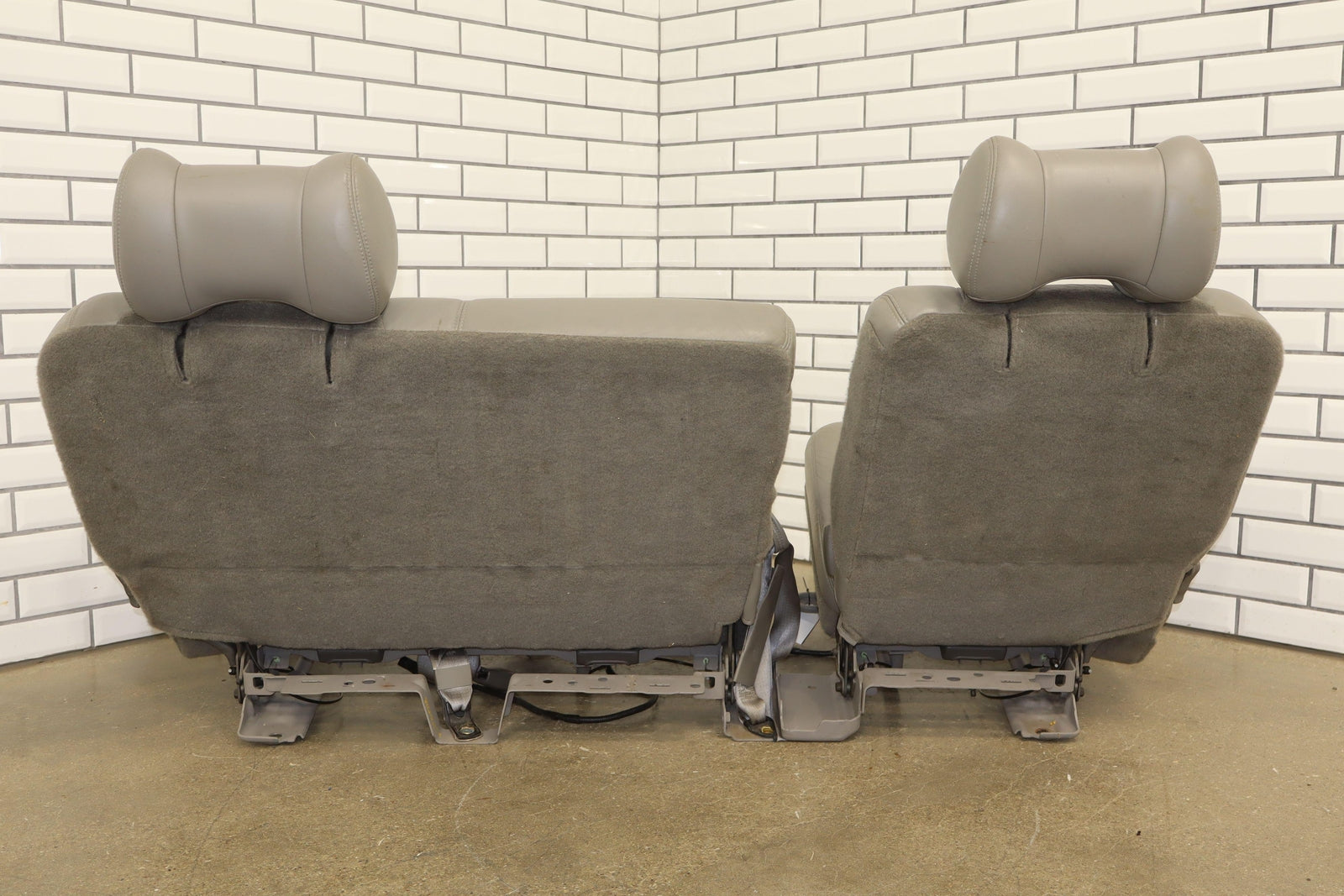 2nd Row Leather Bench Seat, Stone Gray (922), Mild Staining Throughout, Some Wear, Includes Transition Panels