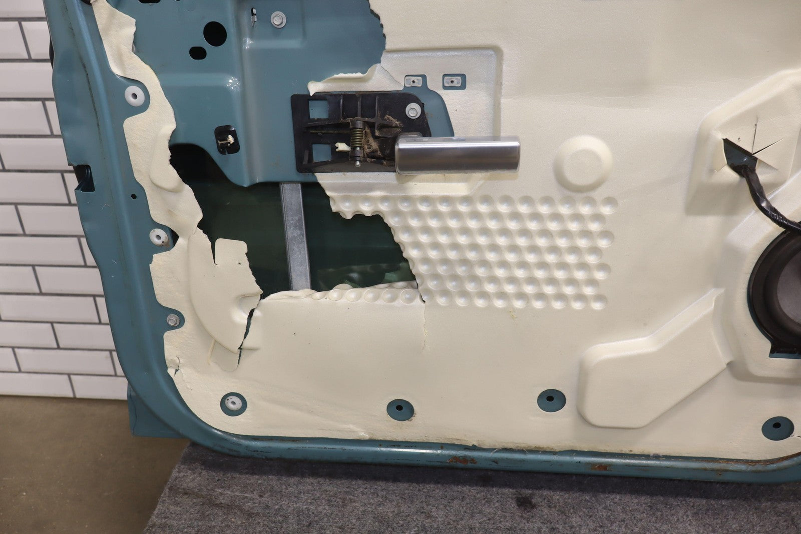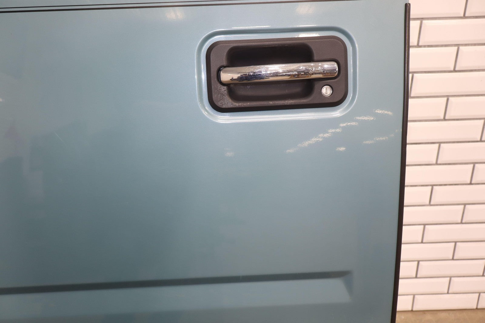Lh Front, Glacier Blue Metallic (27u), Sold Less Mirror-trim Panel, Mild Scuffs/scratches, Lower Rear Corner Covered In Dents