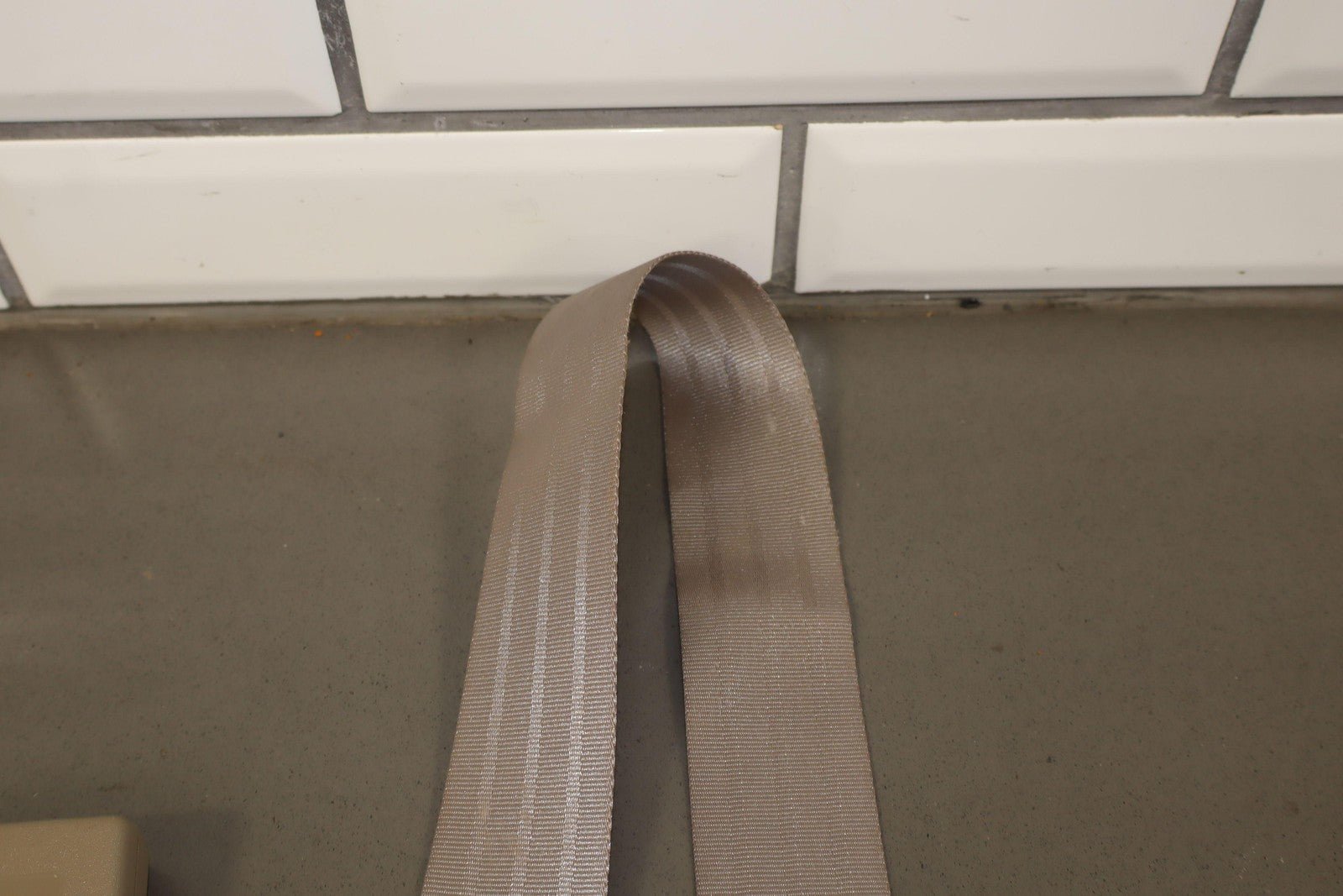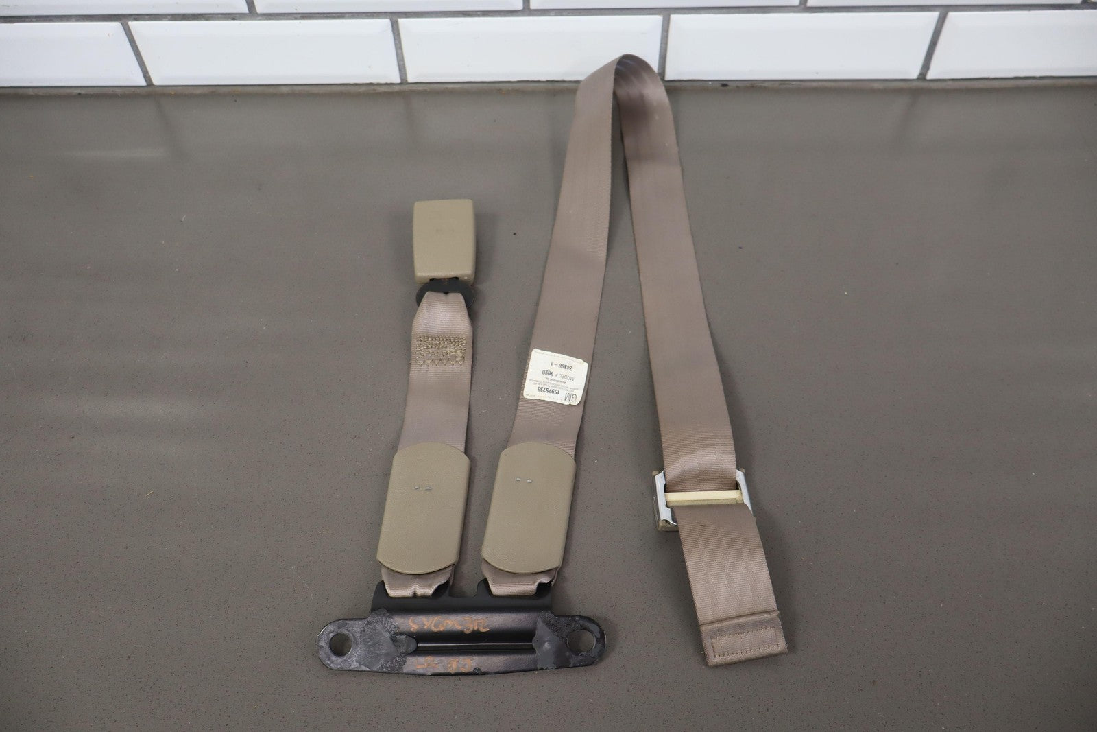 Lh Rear Belt Buckle, Neutral (52d) Trim, Includes Center Lap Belt, Mild Staining, Functions Properly