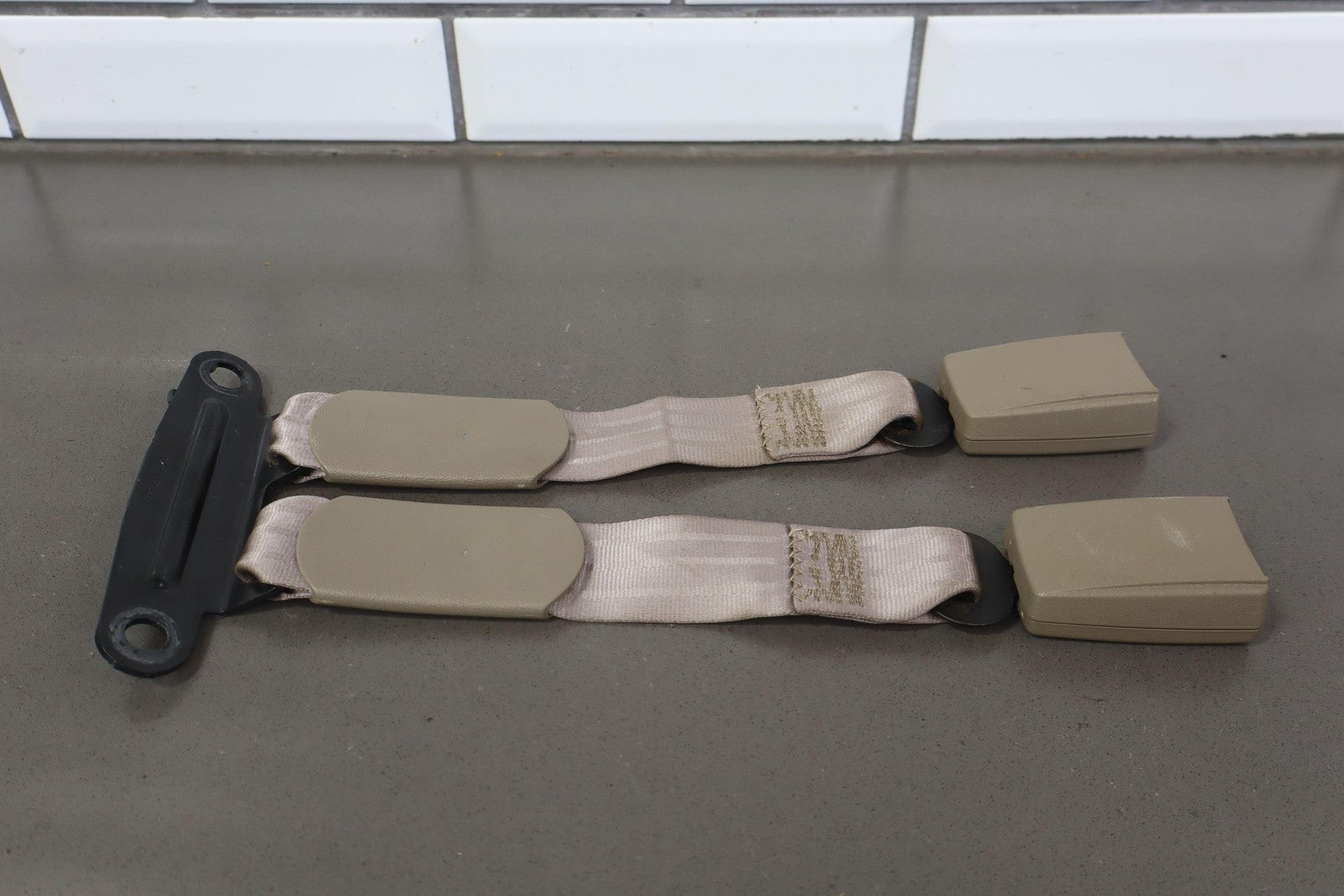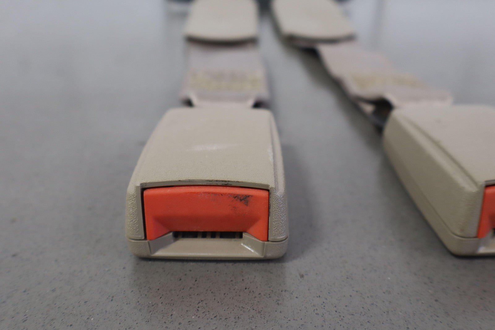 Rh Rear Belt Buckle, Includes Center Belt Buckle, Neutral (52d) Trim, Mild Staining, Functions Properly