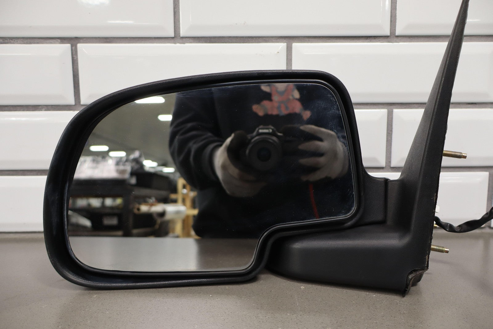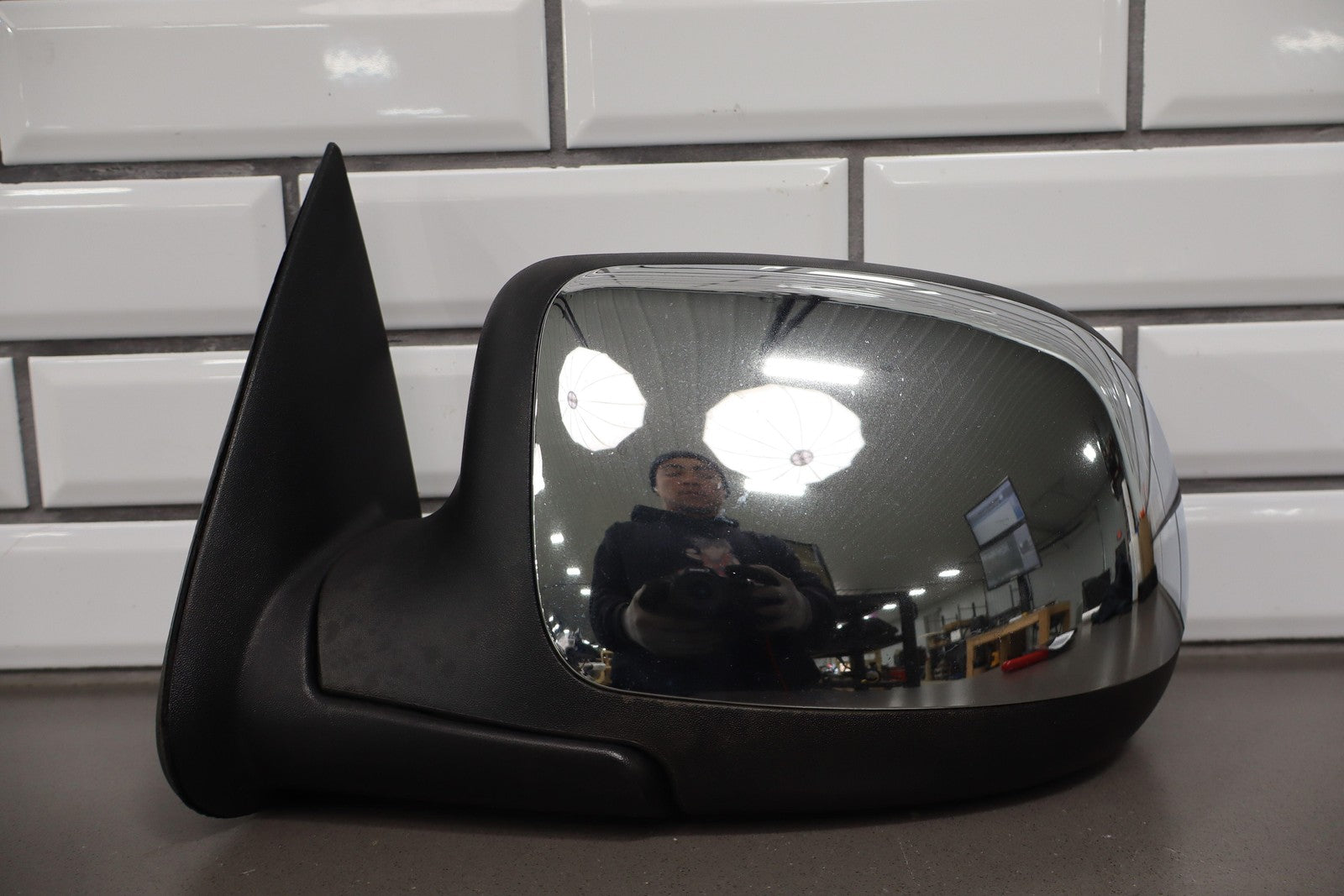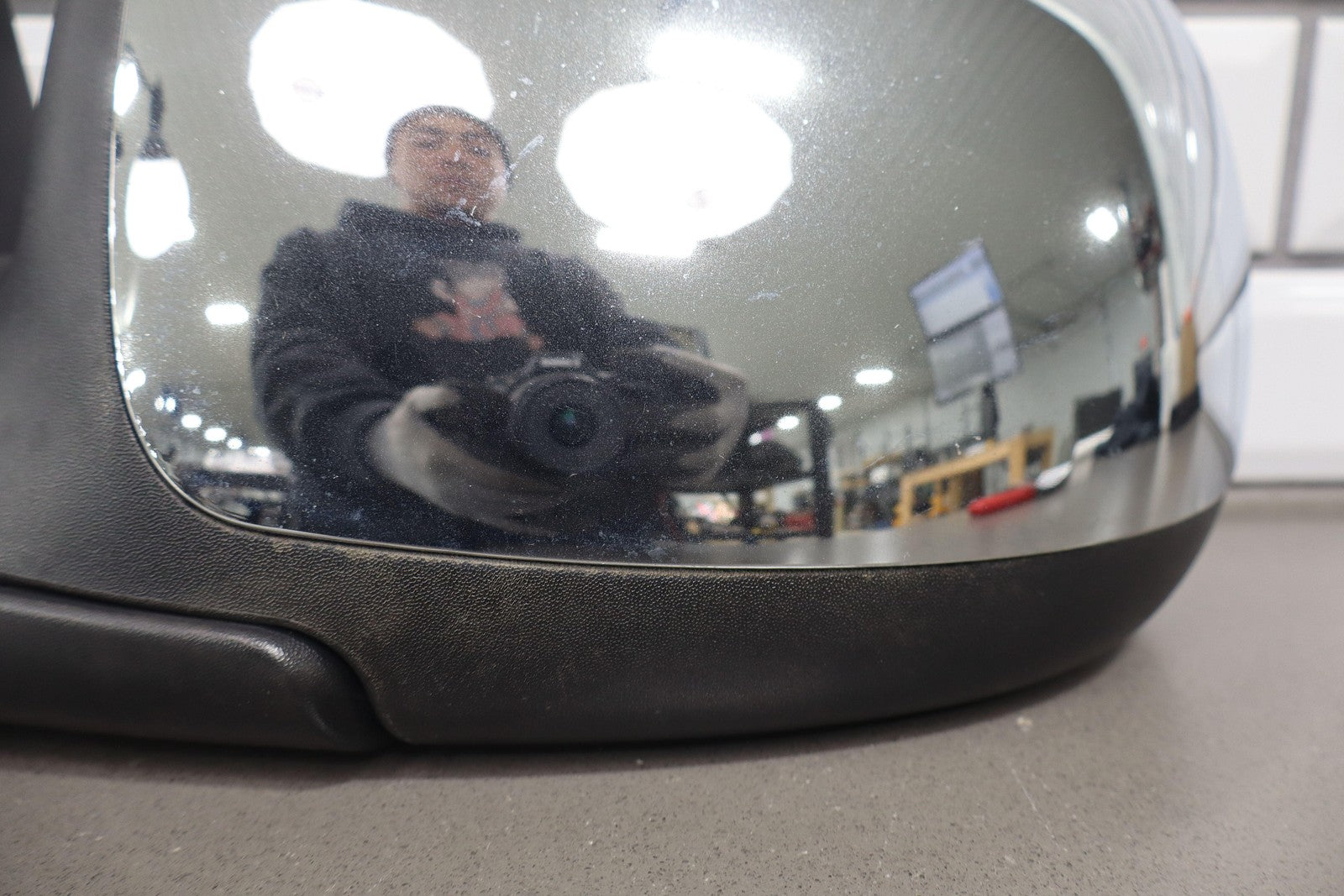 Important notes: Lh, Black Textured Plastic W/chrome Cap, Power, Clean Glass, Minimal Sun Fade, Couple Minor Knicks, Functions Properly