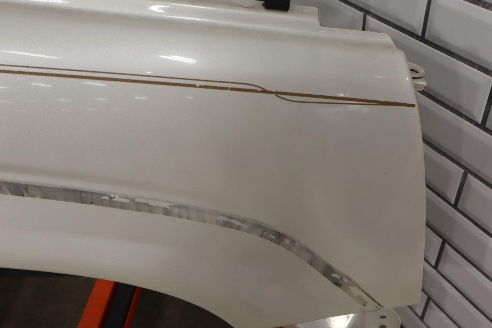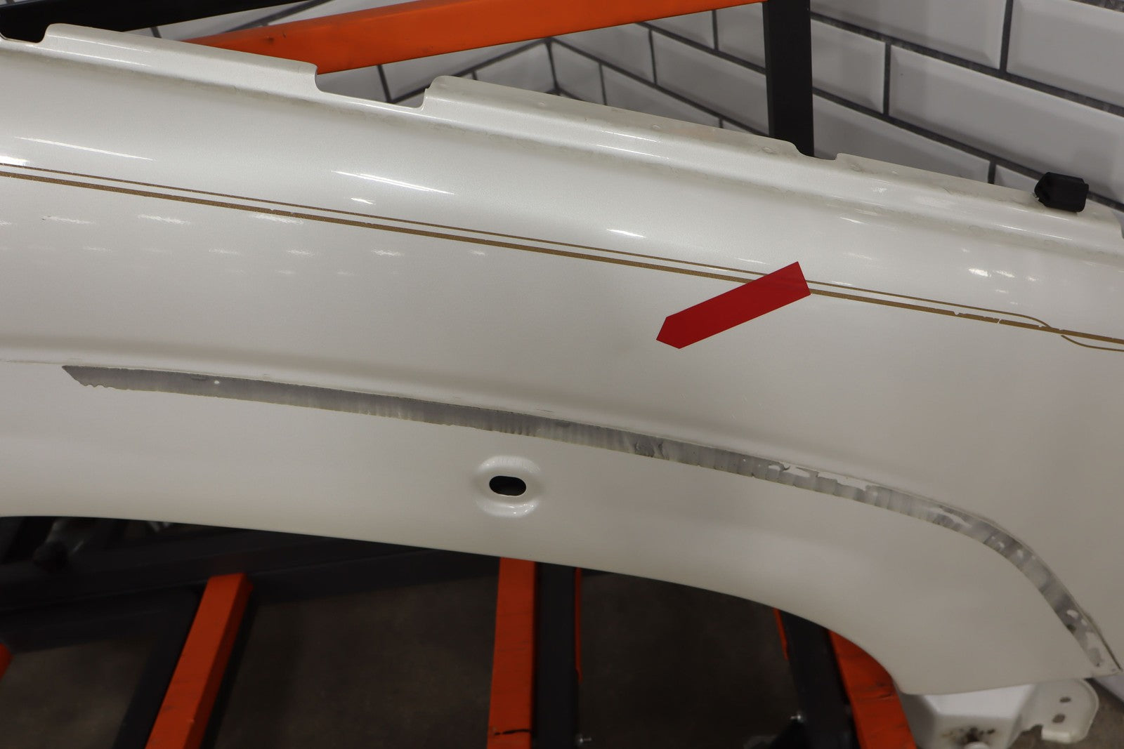 Important notes: Rh, White Diamond (98u), Sold Less Flare, Chips To Pinstripe, Light Scuffs/scratches, 1 Visible Dent (red Arrow), Mounted Solid