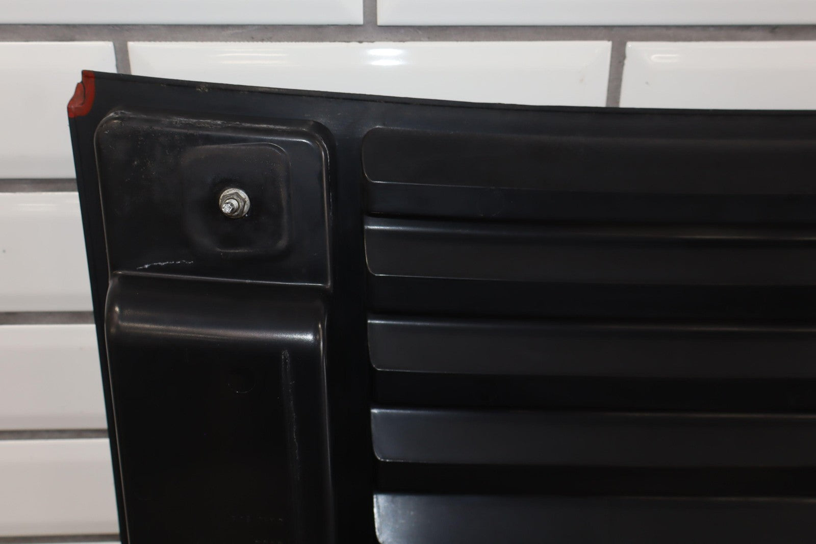 Oem Upper Hood Grill, Black Textured Plastic, Includes Handles, Mild Sun Fade, Chipped Corner (red)