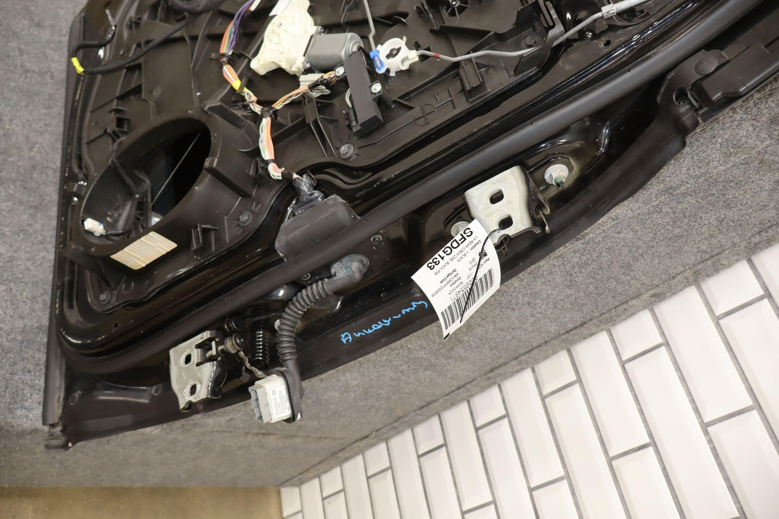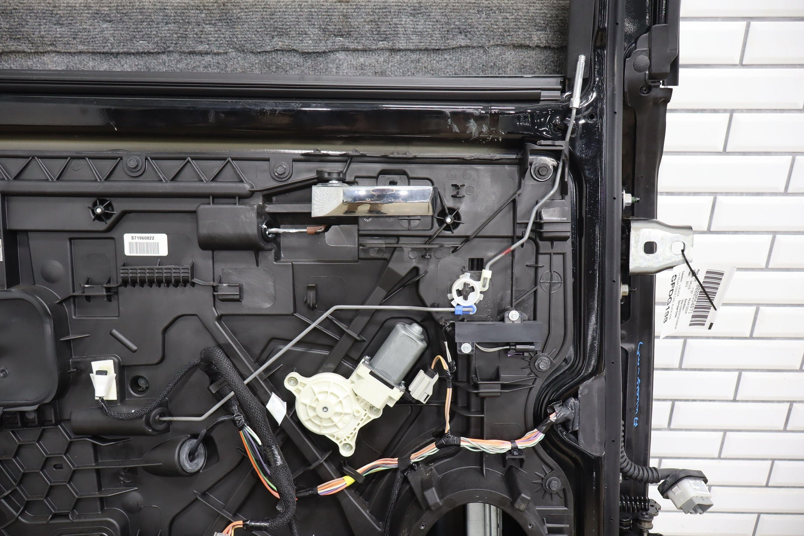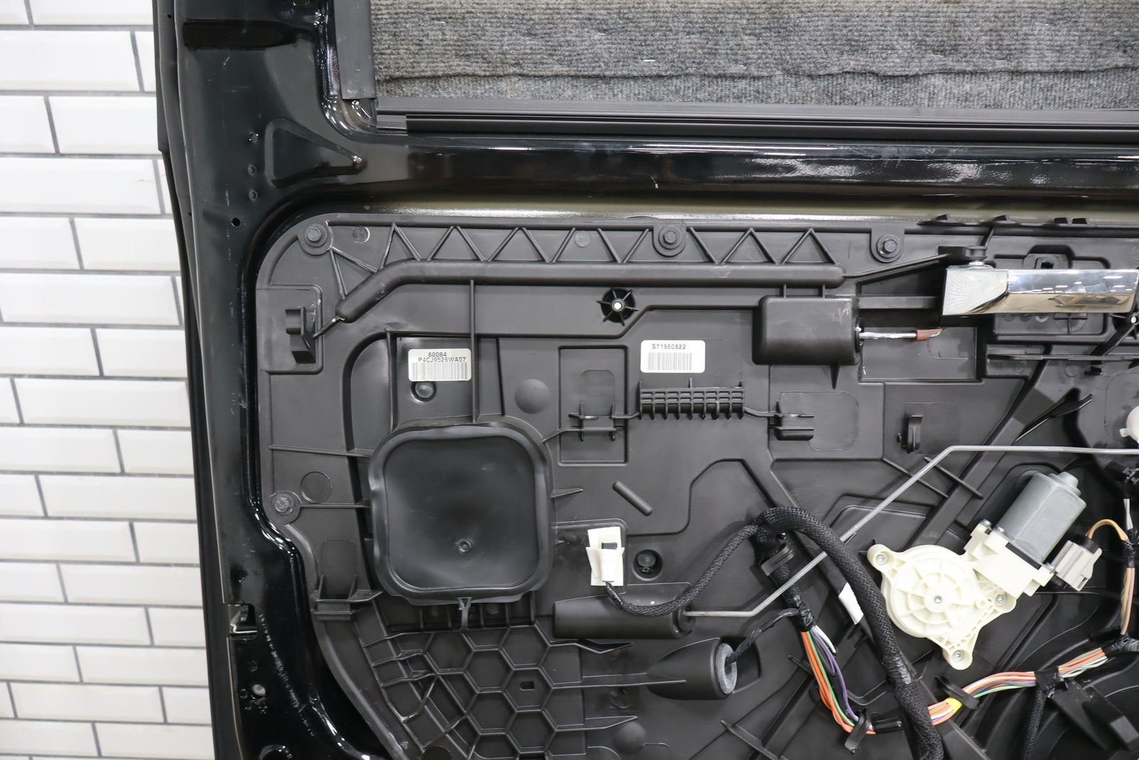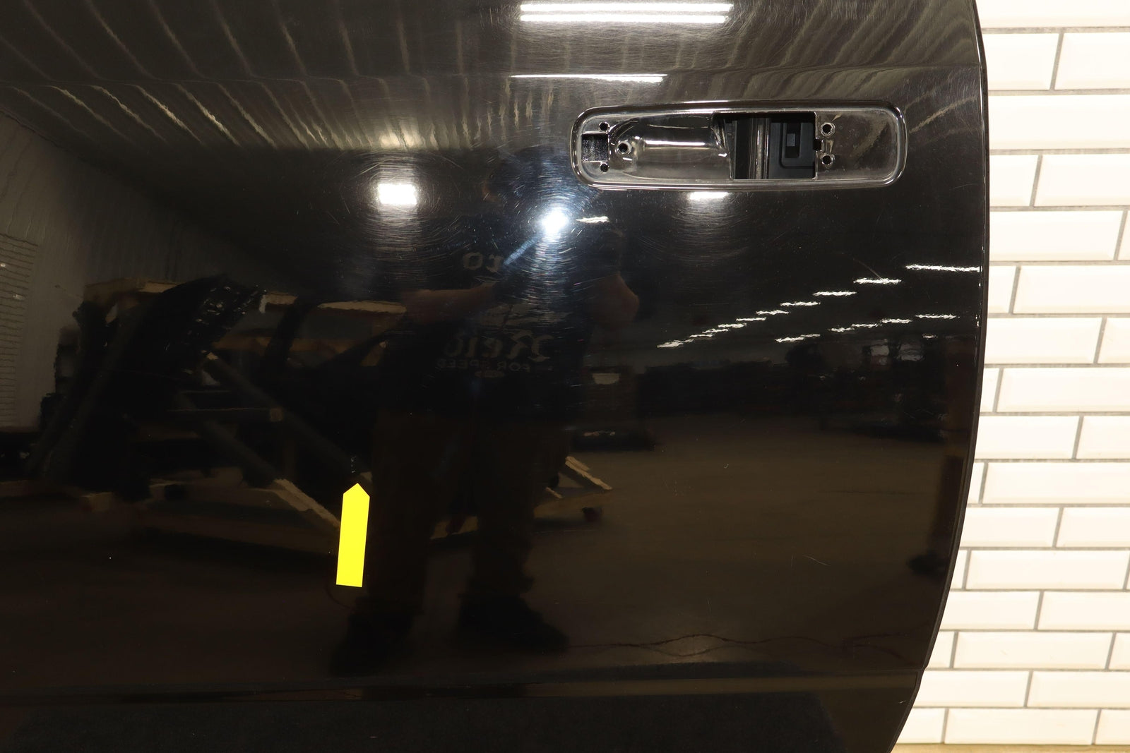 Lh Rear (crew Cab), Black (px8), Sold Less Trim Panel-outer Handle, 1 Visible Dent (yellow), Light Scuffs/scratches