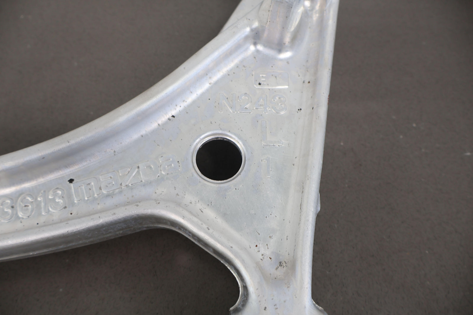Important notes: Lh Front Lower Aluminum Control Arm, Scrapes On Bottom Side, Mounted Solid