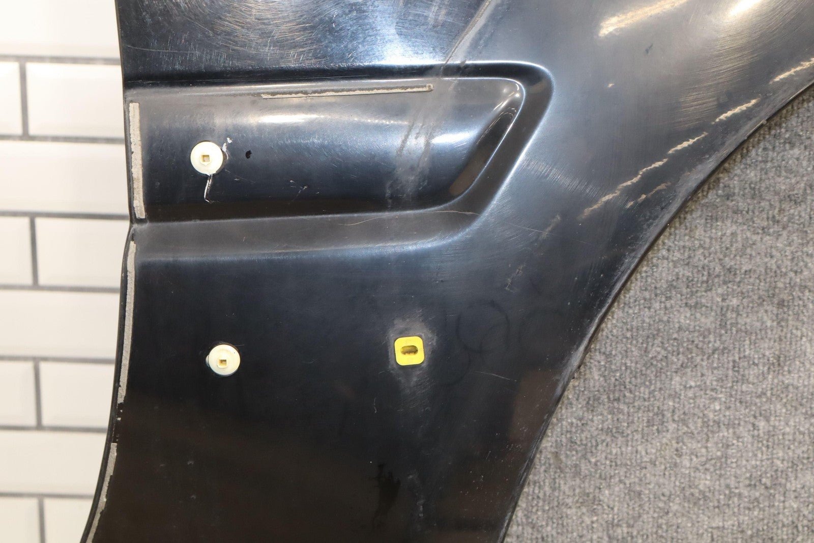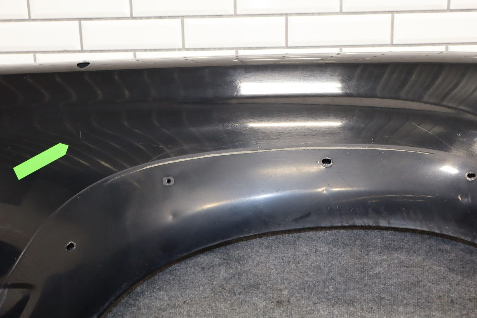 Rh Fender, Black Onyx(202), Sold Less Flare, Small Ding (green), Scuffs/scratches Throughout