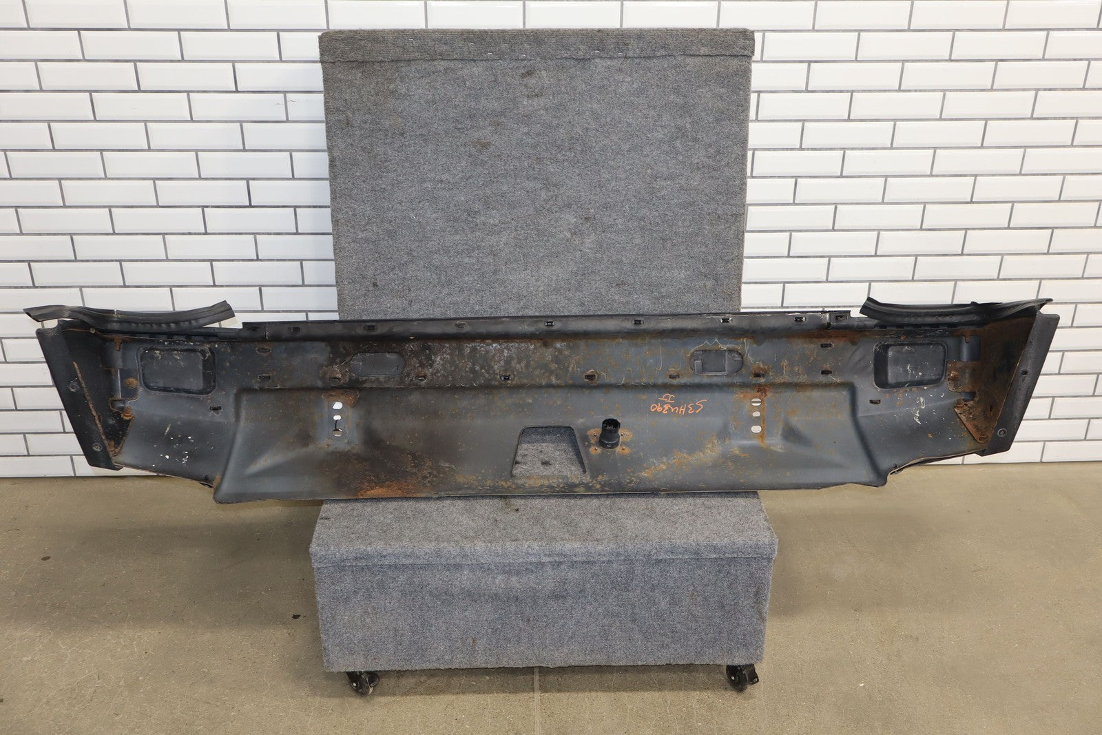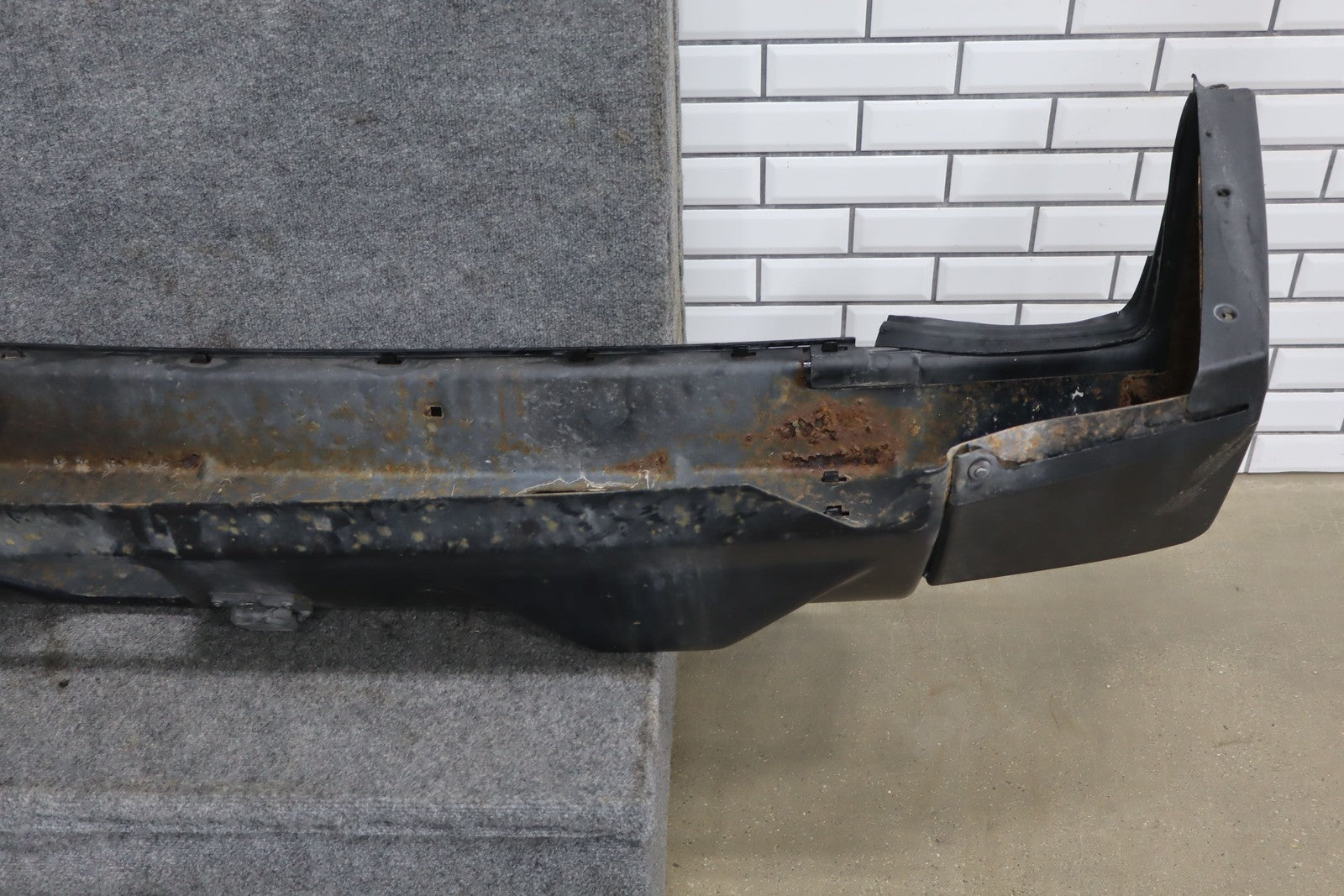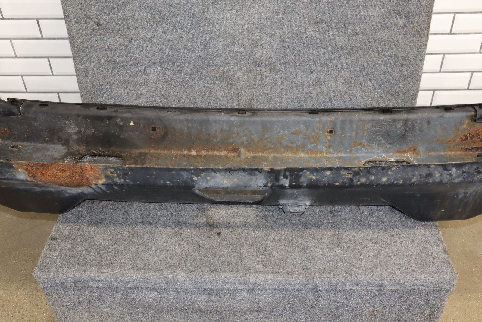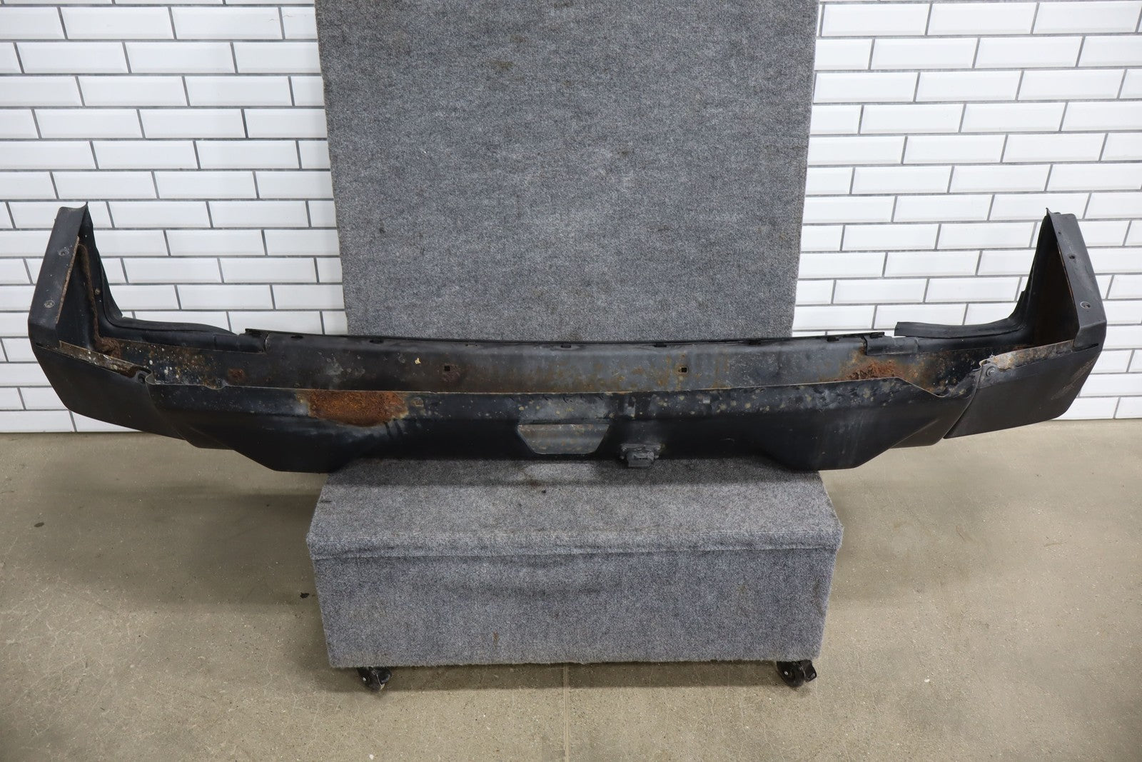 Suv Rear Bumper, Faded Metal Section, Includes Bumper Covers, Decent Sun Fade, Couple Scratches, Heavy Surface Rust To Metal