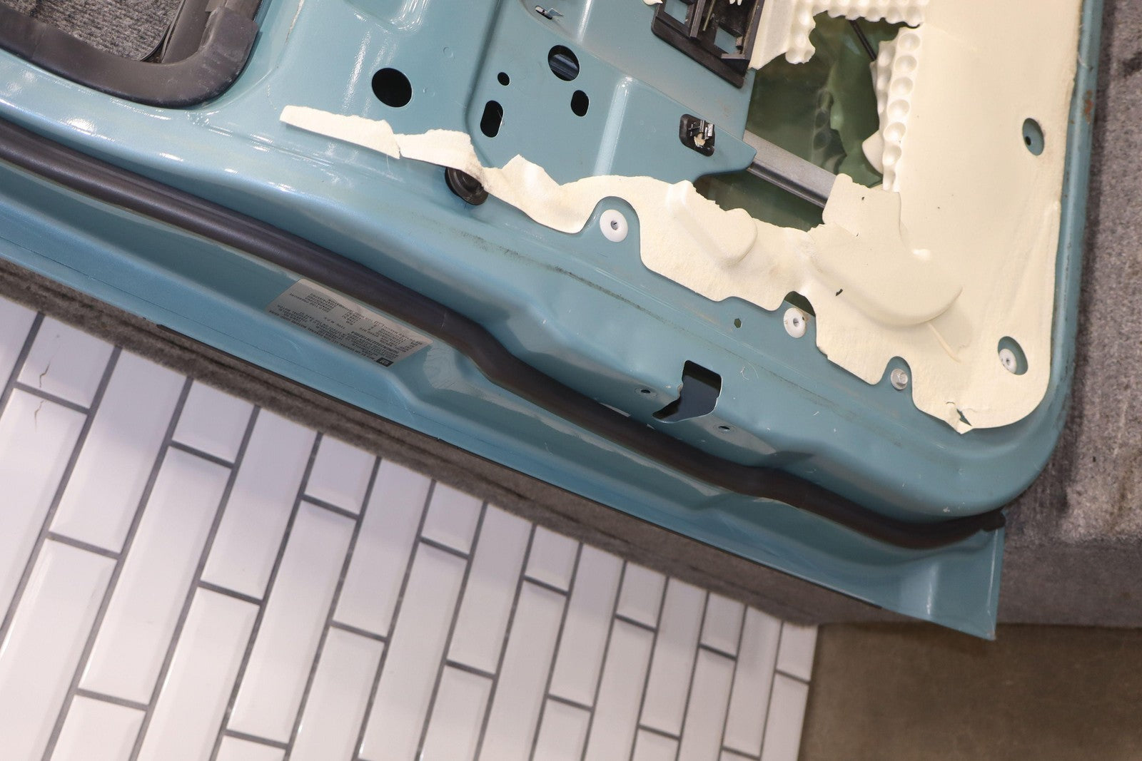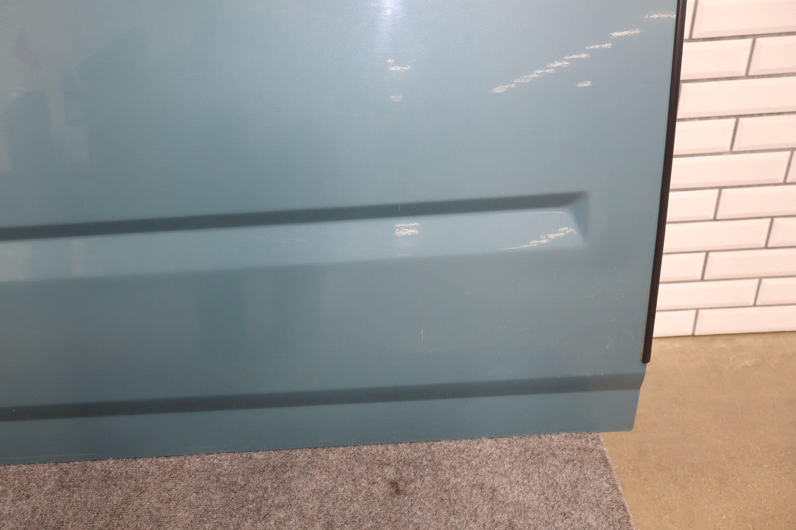 Lh Front, Glacier Blue Metallic (27u), Sold Less Mirror-trim Panel, Mild Scuffs/scratches, Lower Rear Corner Covered In Dents