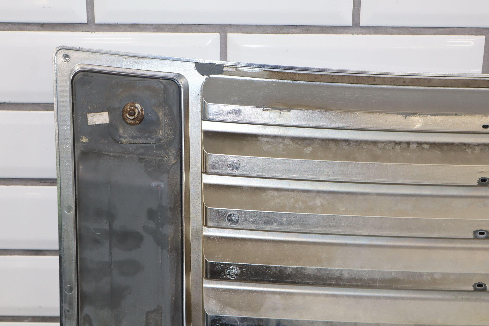 Chrome Upper Hood Grill W/chrome Handles (jha), 1 Missing Handle Stud, Mild Flaking In Vents