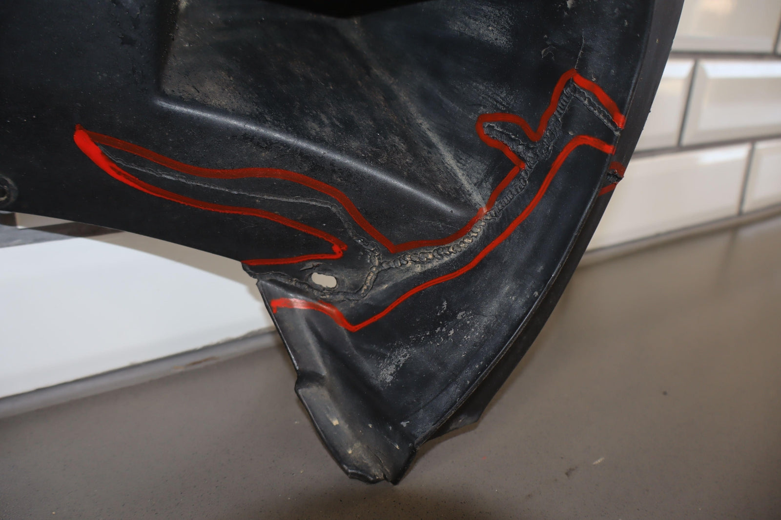 Rh Inner Upper Fender Liner, Under Hood Mounted, Previous Repair(marked Red)
