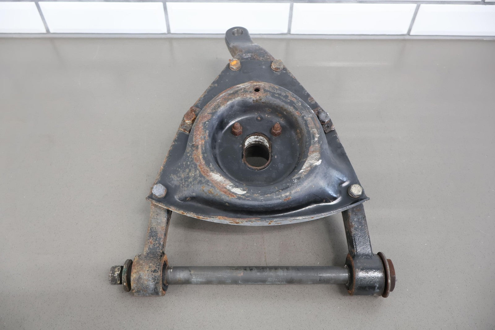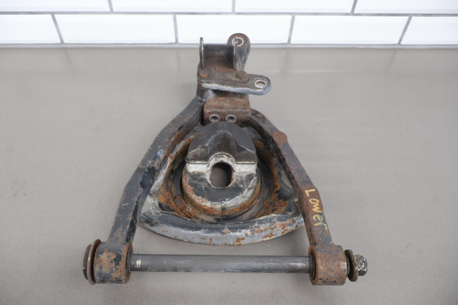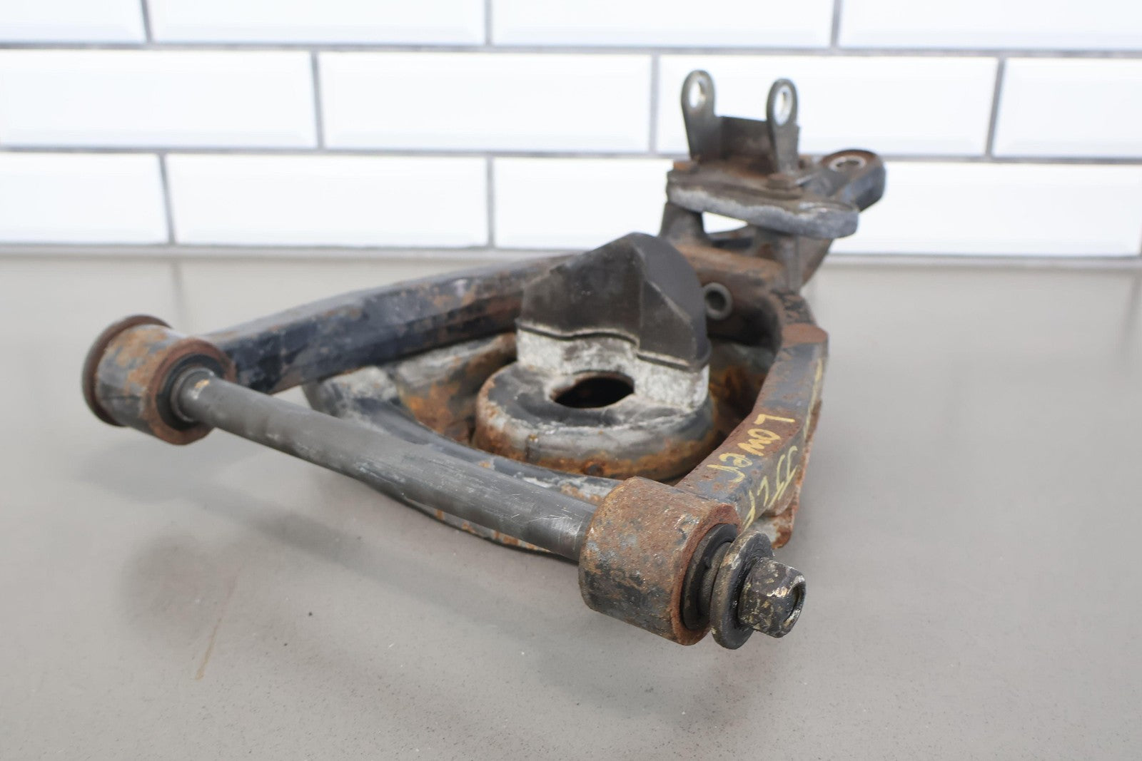 Important notes: Lh Front Lower Control Arm, Includes Spring Bucket-lower Strut Mount, Mild Weathering, Mounted Solid