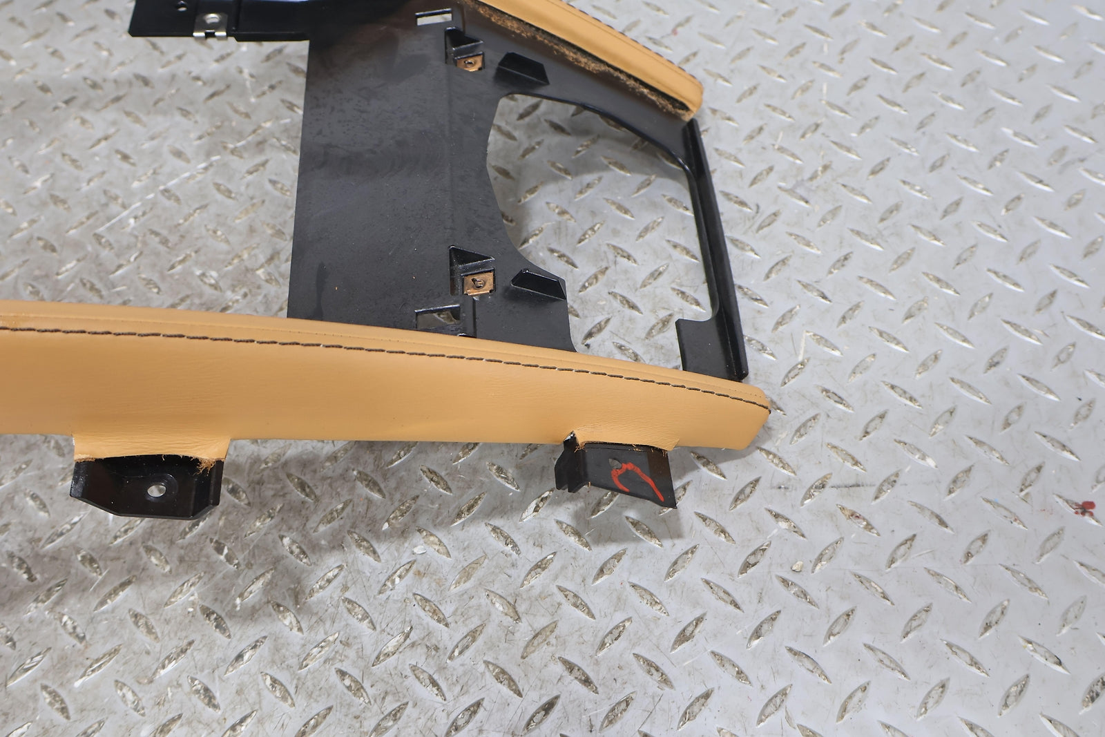 Center Dash Trim Base, Sahara Tan Leather, Mild Staining, Multiple Small Knicks, Couple Cracked Mount Tabs (red), 6g33-11801-ac