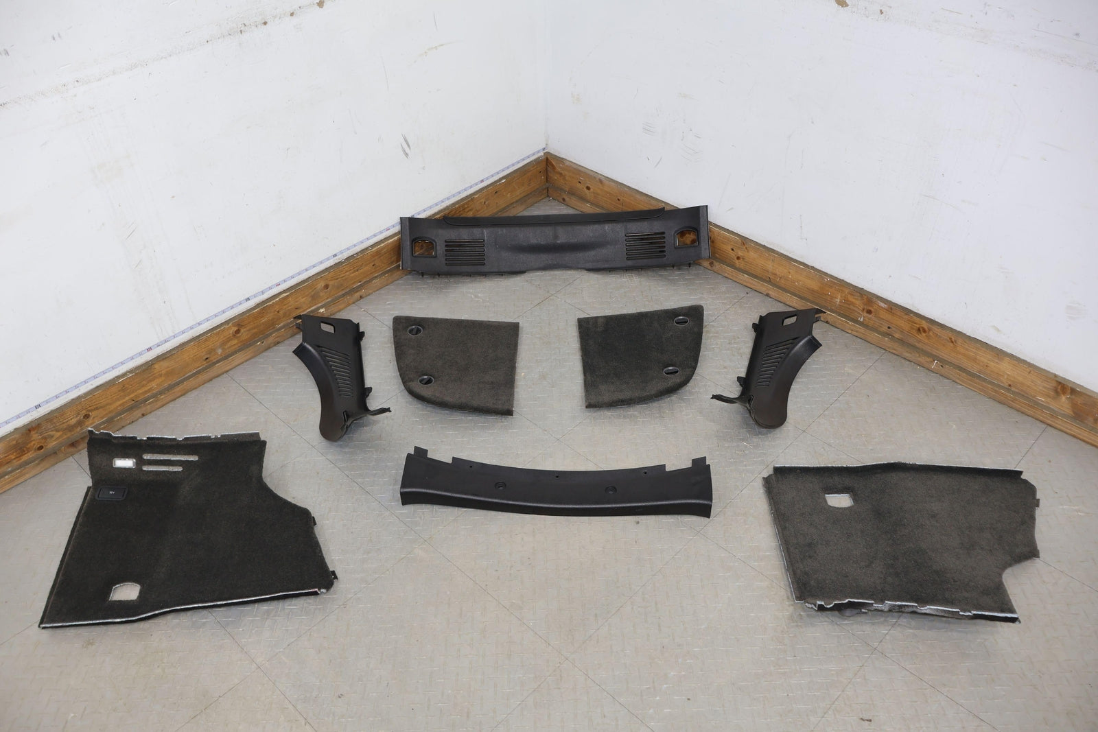 Trunk Carpet & Plastic Cleanout, Beluga, Light Staining, All Mounted Solid