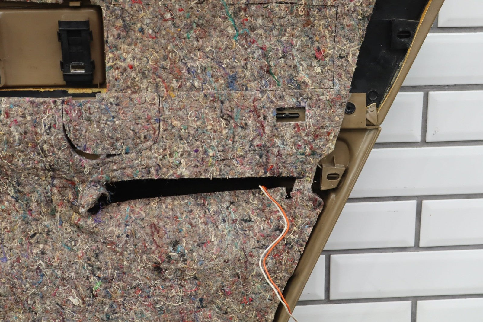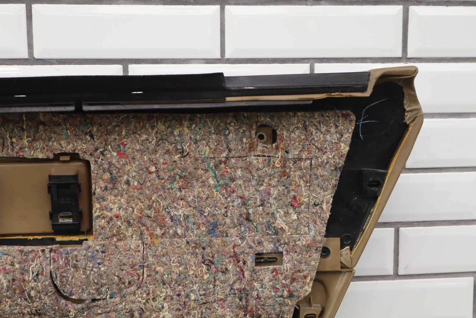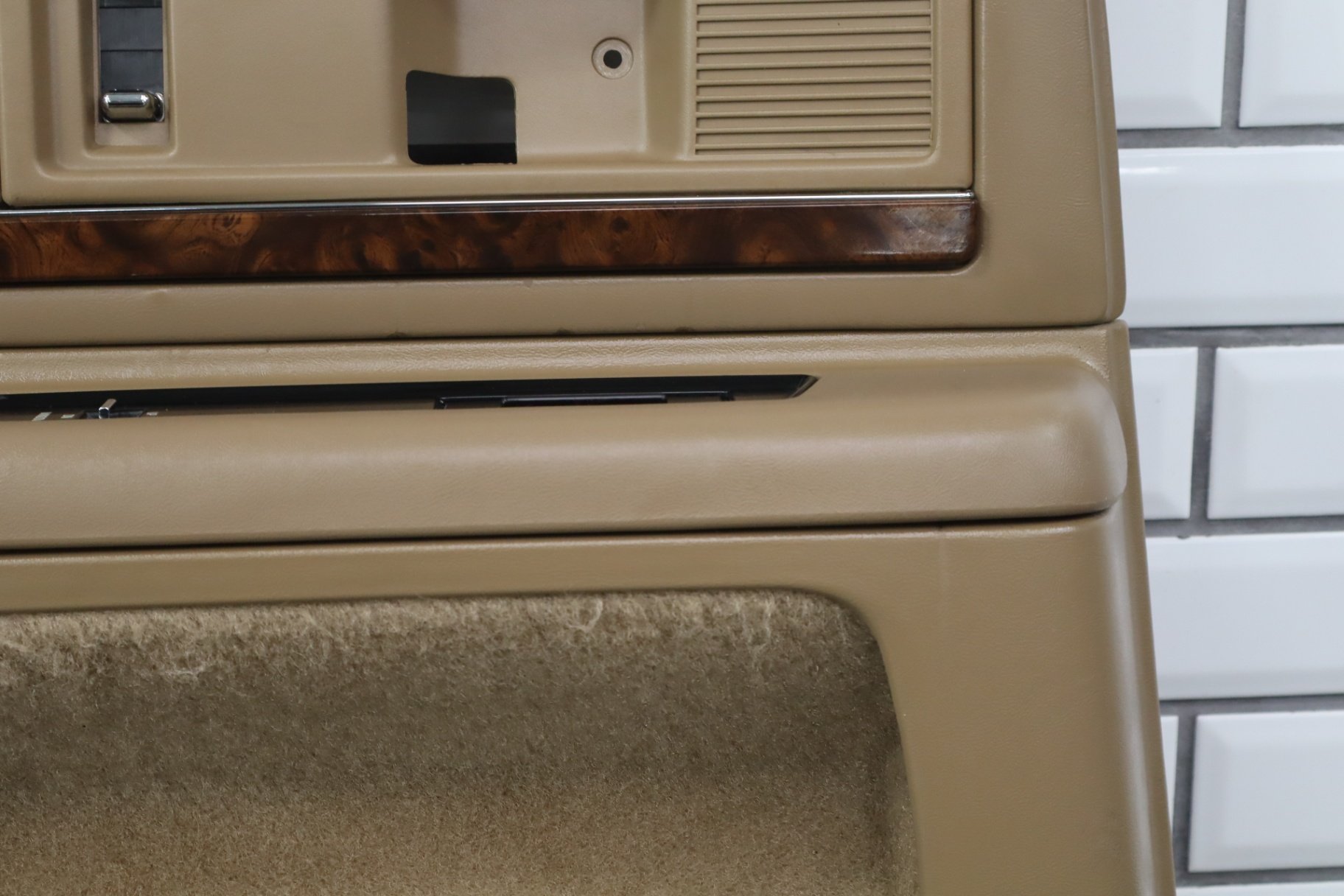 lh rear, includes window switch, decent fade across top, loose lower woodgrain trim, arm rest material starting to lift, minimal staining