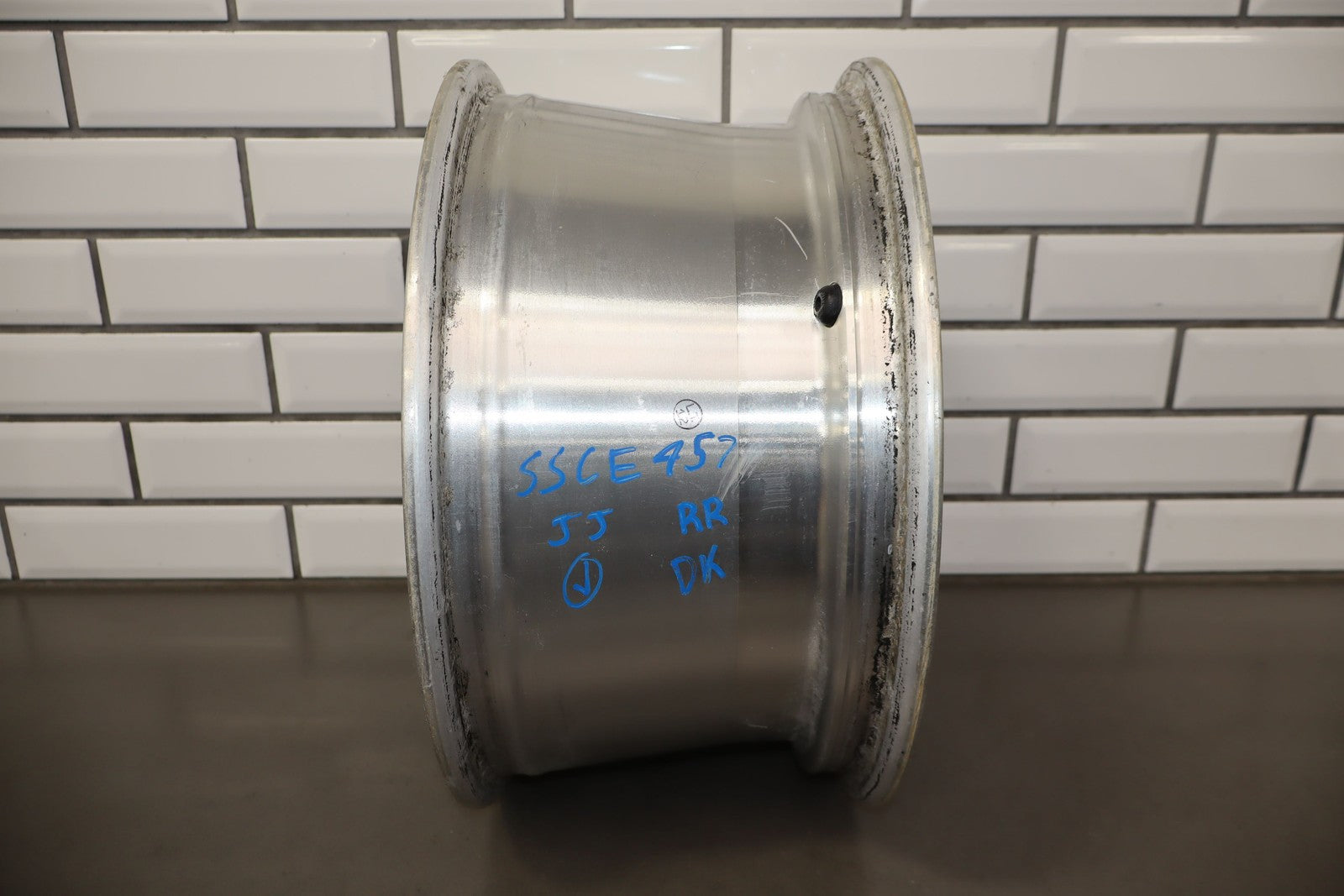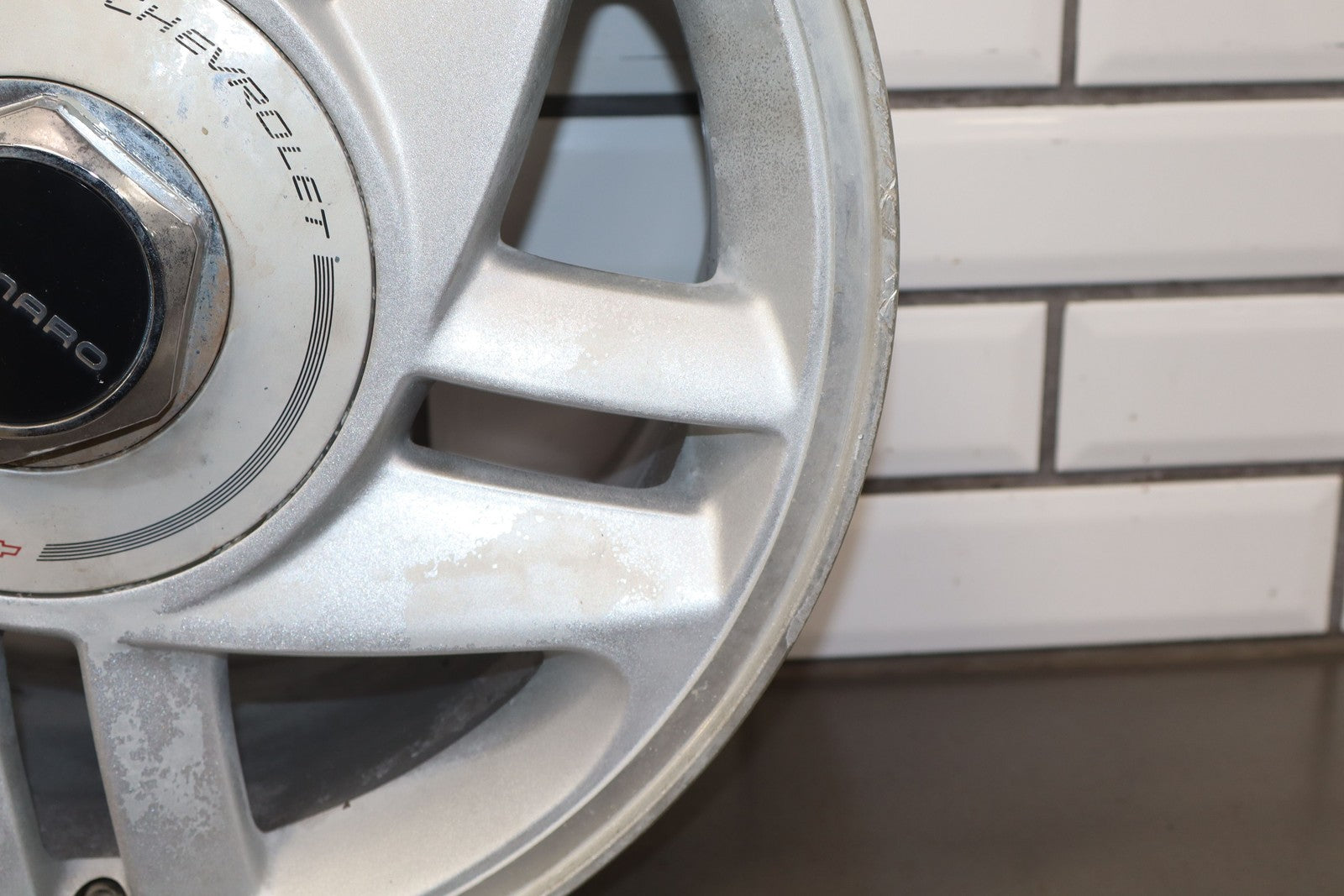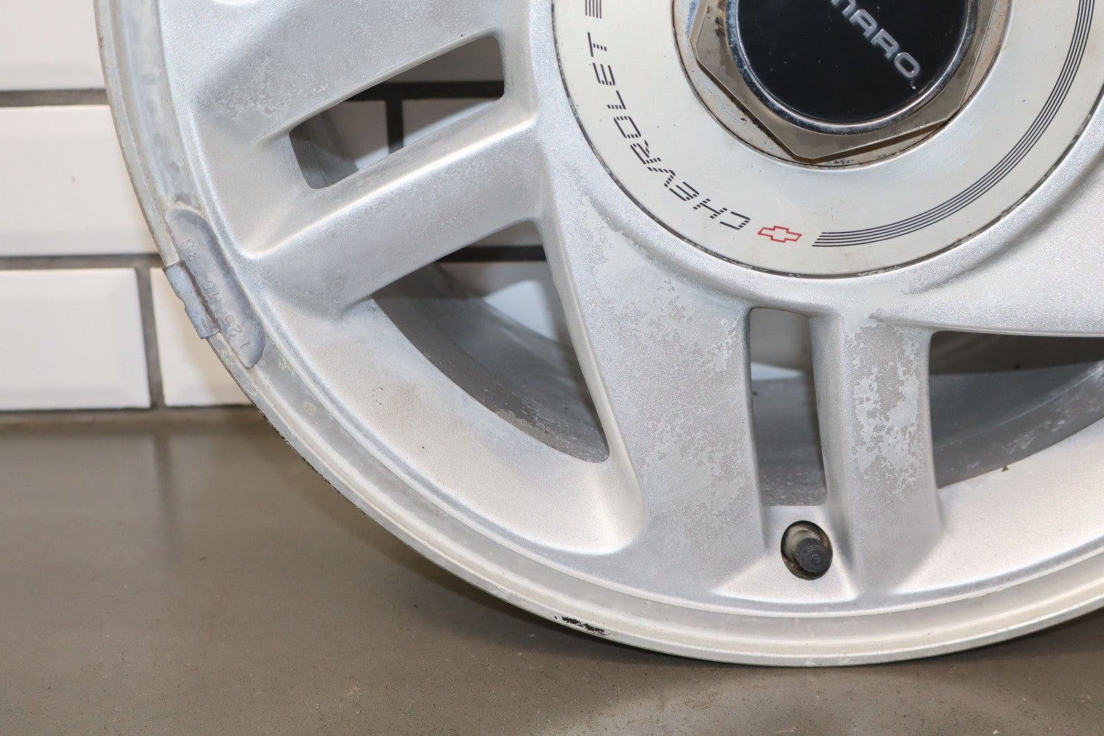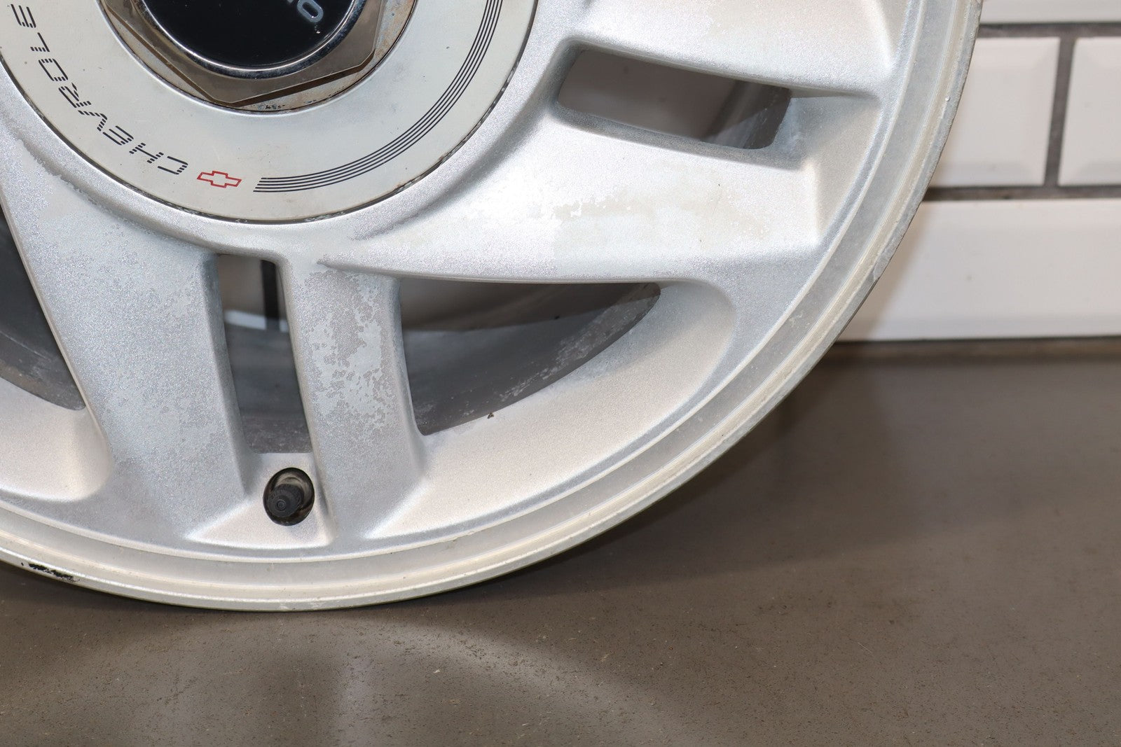 Rh Rear, 16x8 Silver Split 5 Spoke Wheel, Includes Center Cap, Weathered Finish, Some Curb Rash, Spun True