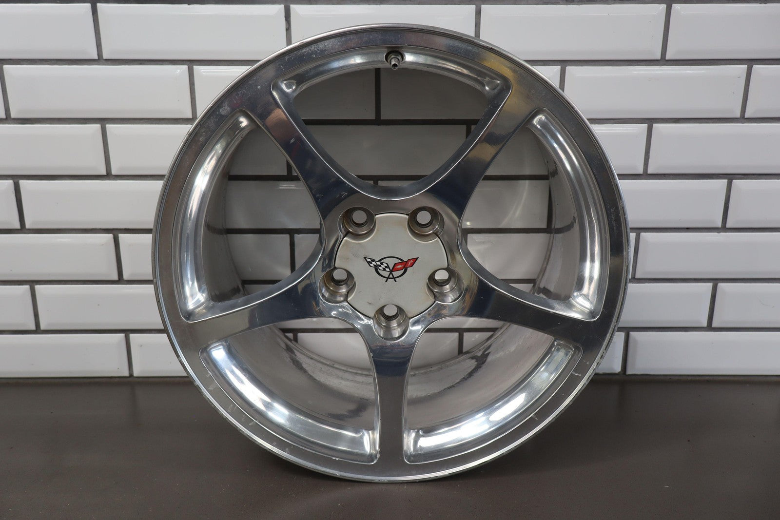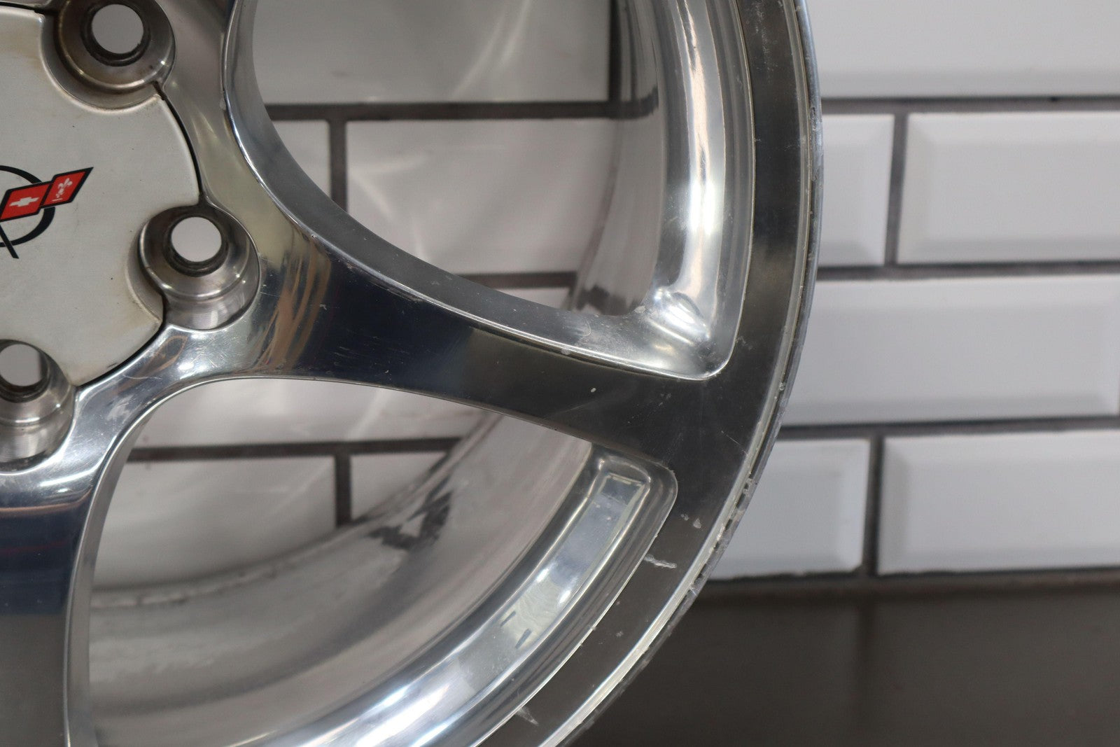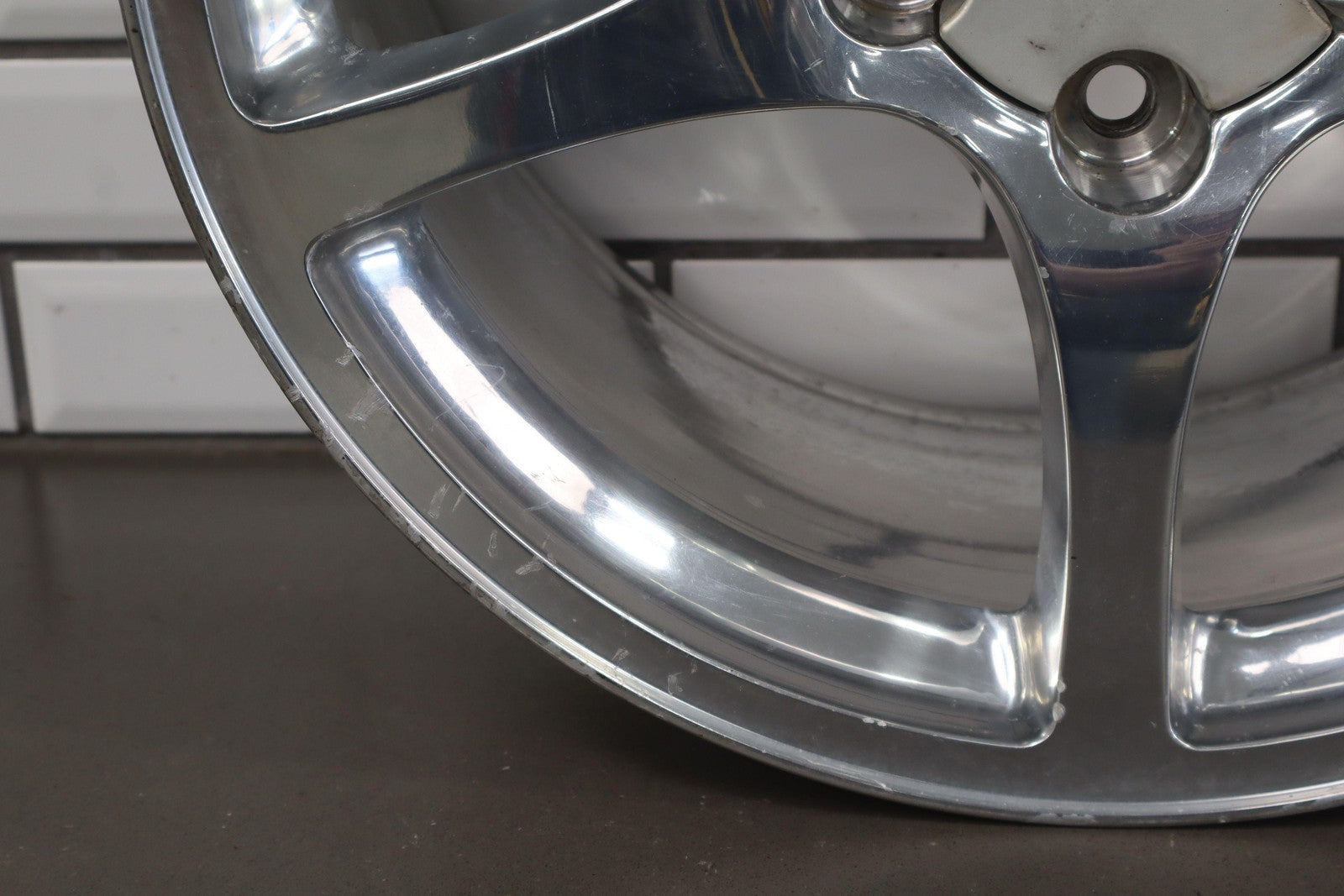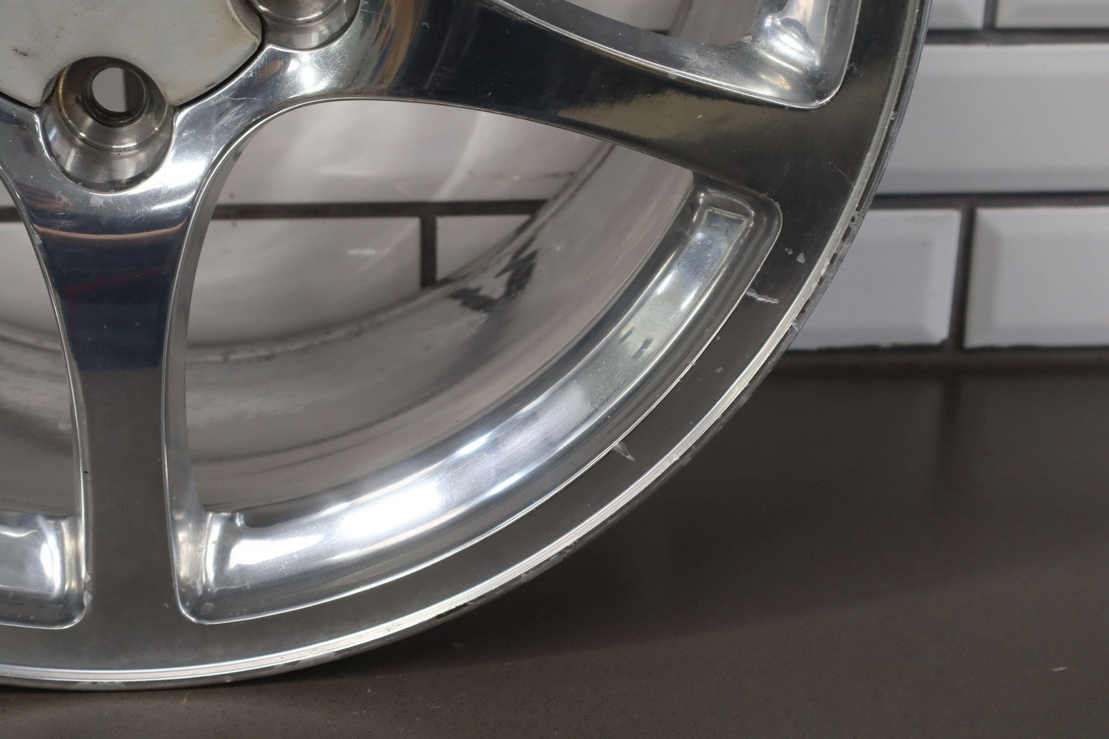 Rh Rear, 18x9.5 Polished 5 Spoke Wheel (qf5), Mild Fade, Light Scratches To Face, Some Corrosion In Barrel, Spun True