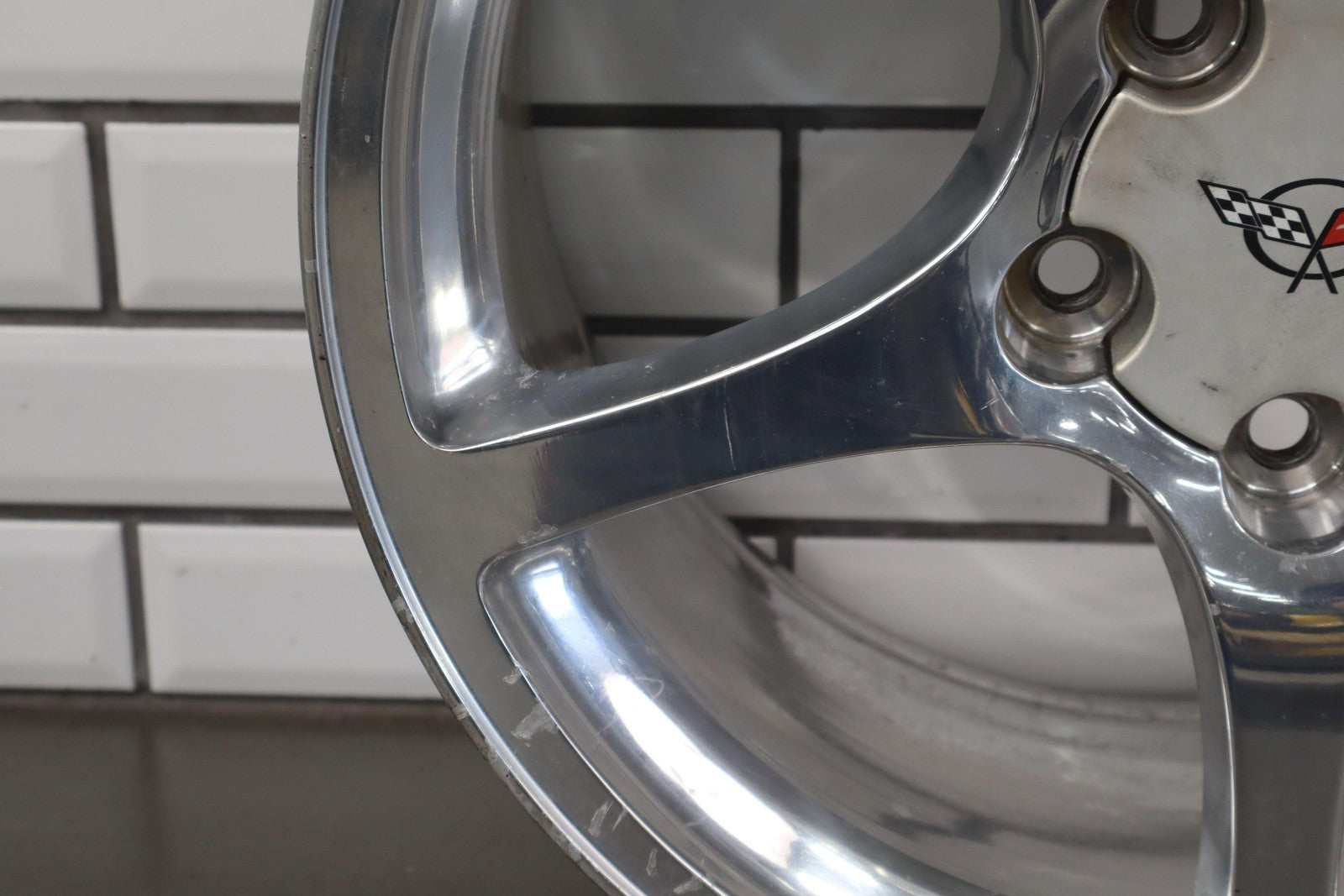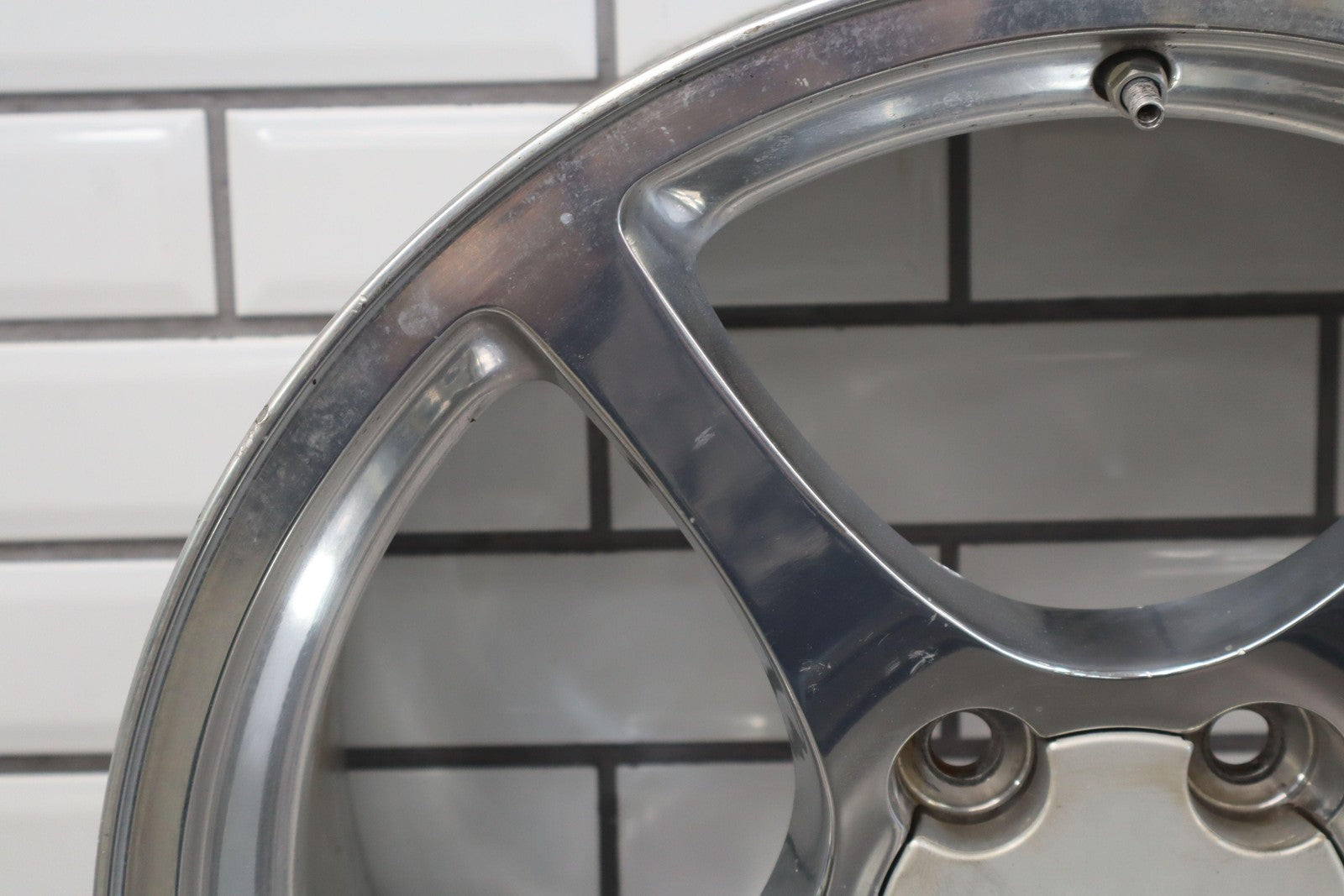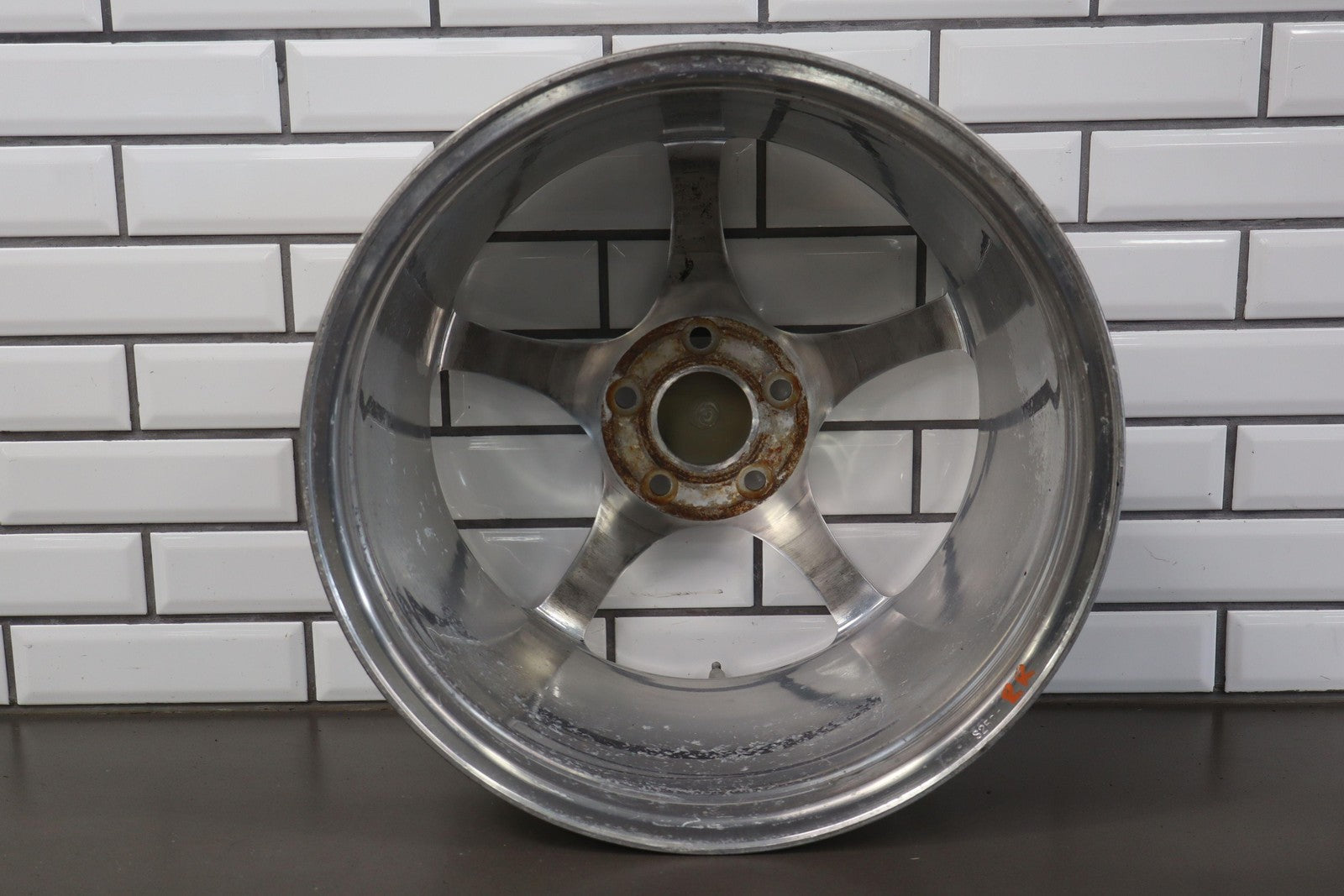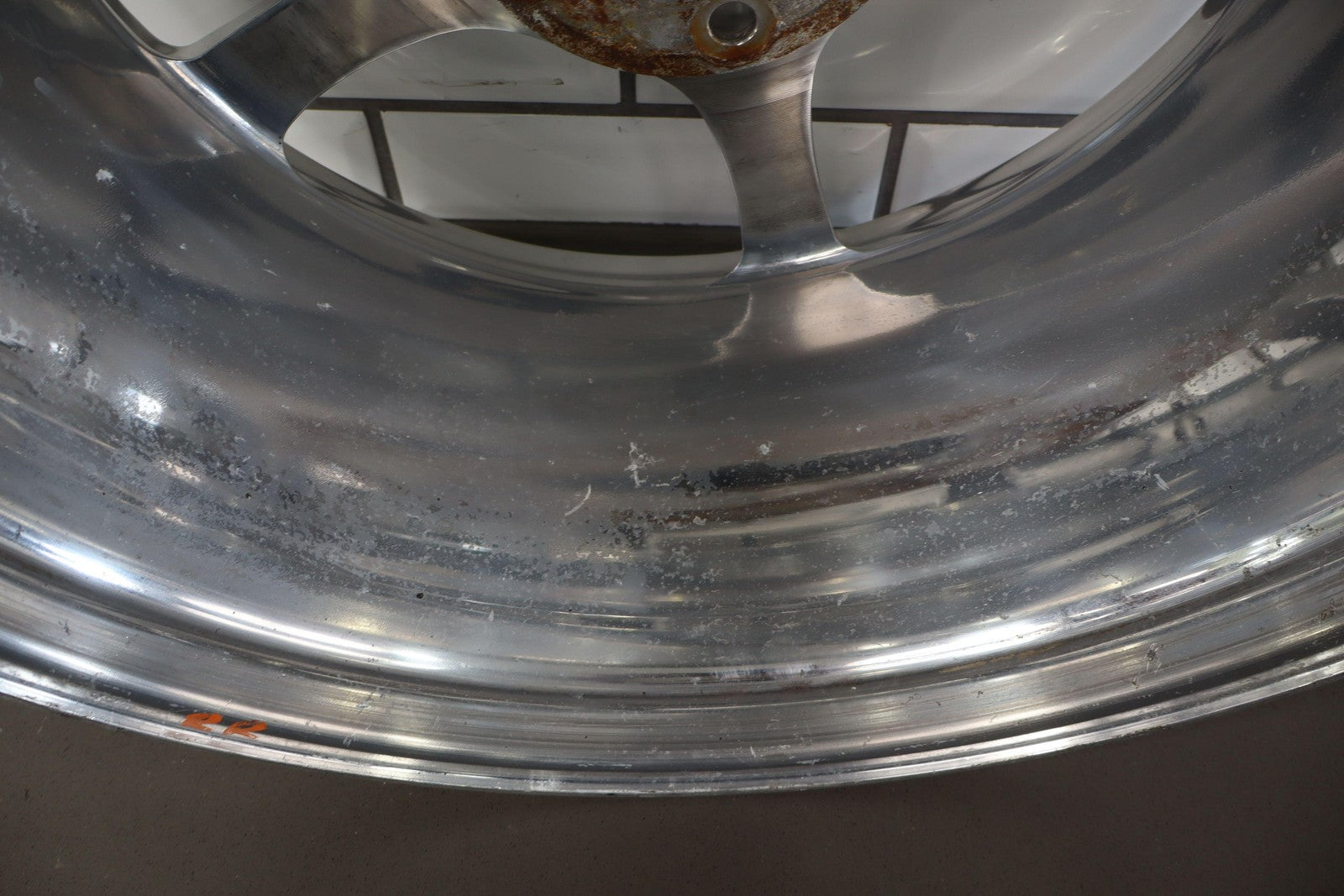 Rh Rear, 18x9.5 Polished 5 Spoke Wheel (qf5), Mild Fade, Light Scratches To Face, Some Corrosion In Barrel, Spun True