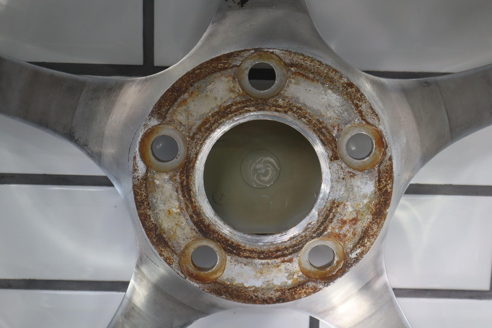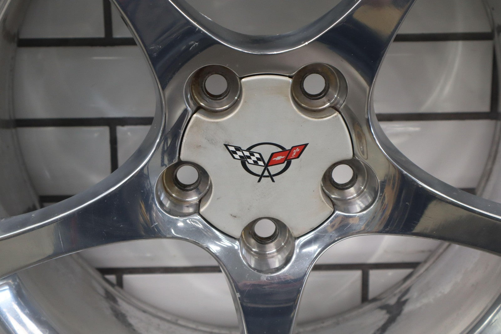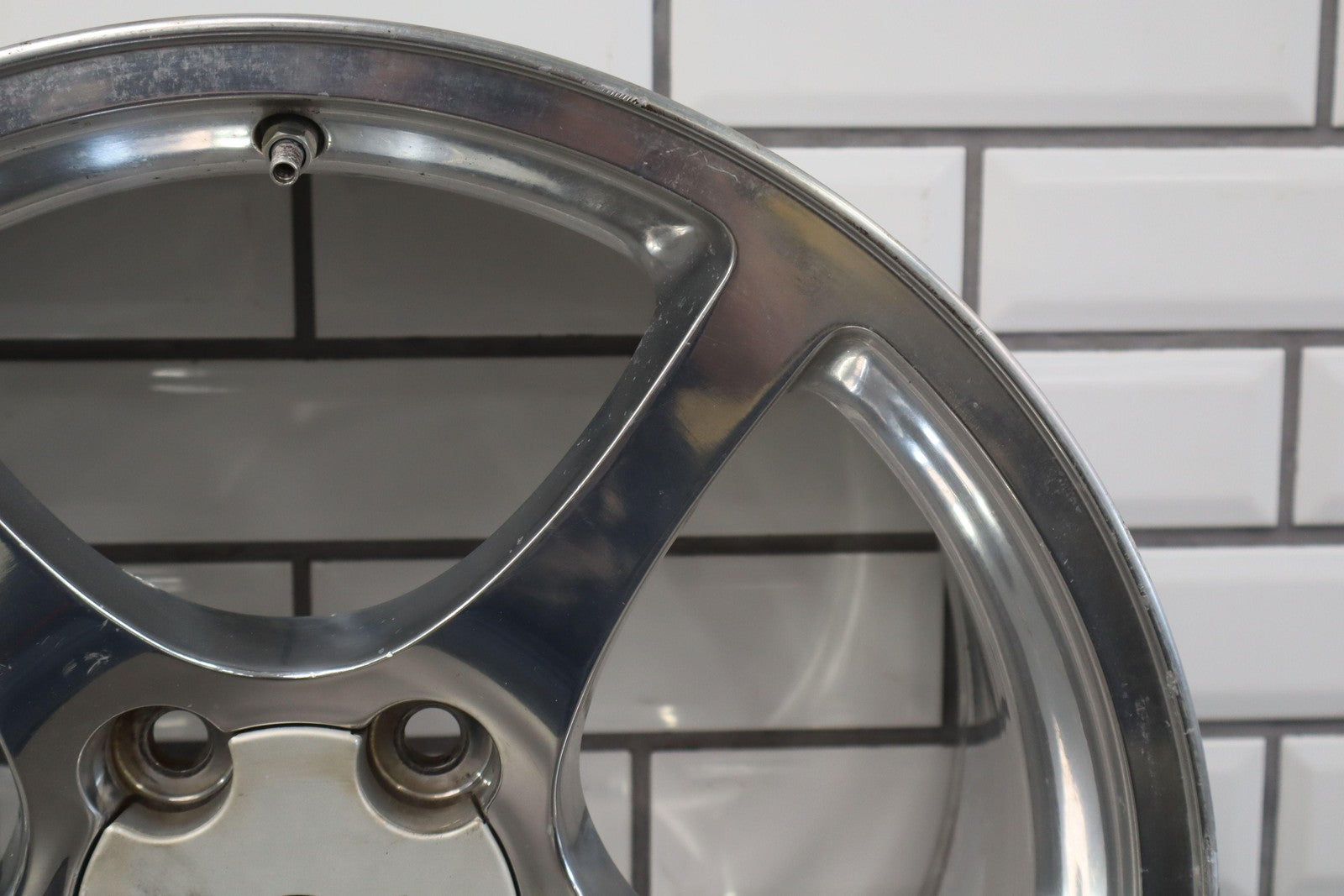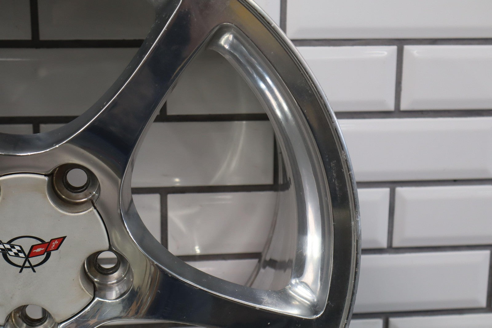 Rh Rear, 18x9.5 Polished 5 Spoke Wheel (qf5), Mild Fade, Light Scratches To Face, Some Corrosion In Barrel, Spun True