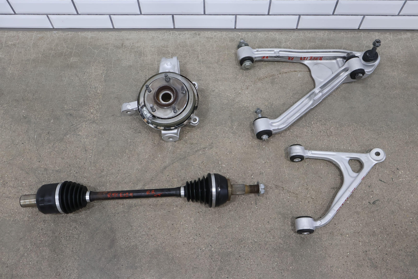Rh Rear Knuckle, Includes Axle Shaft-upper Control Arm-lower Control Arm, No Tie Rod (bent), All Mounted Solid