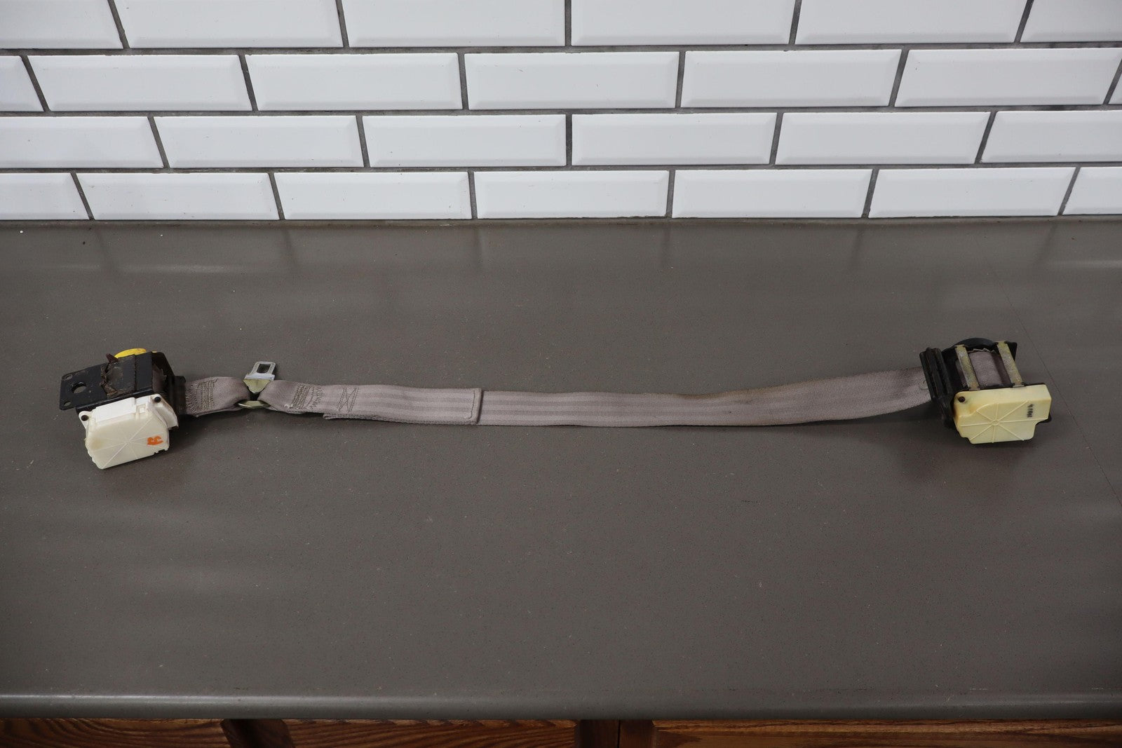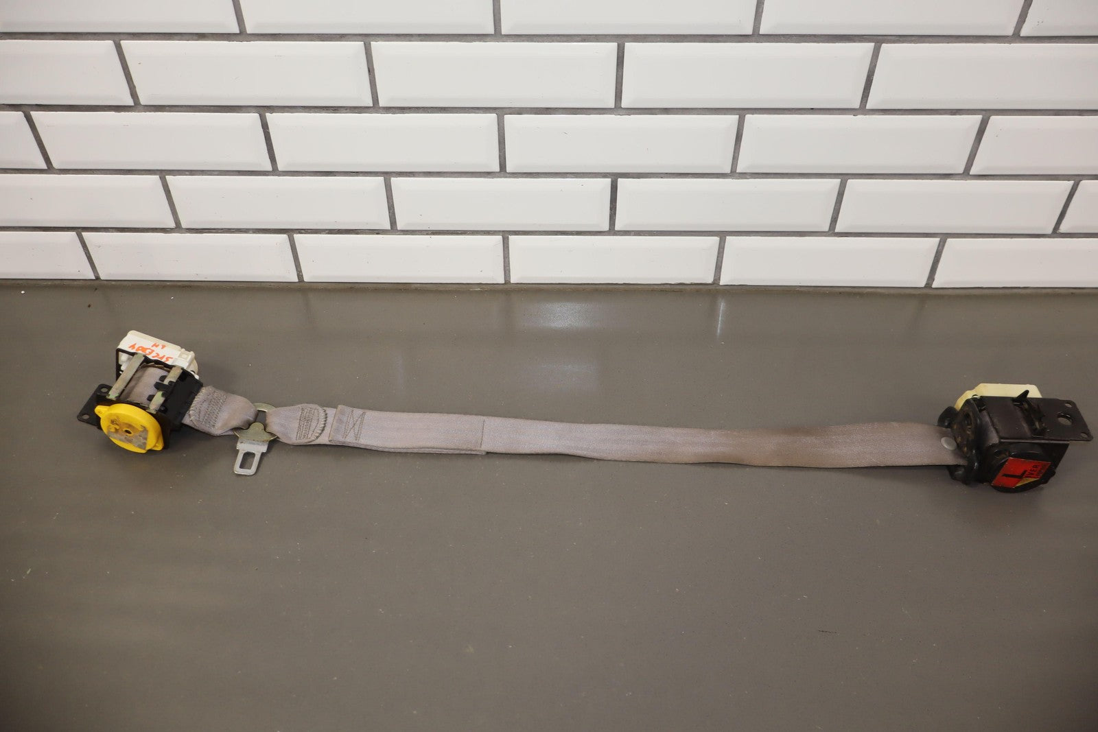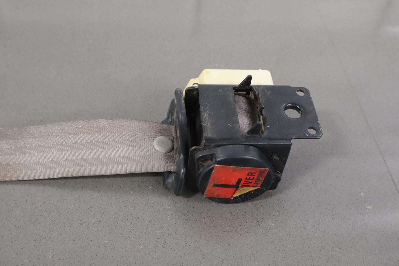 Lh Retractor, Coupe (thru Vin Y5119655), Light Gray (923), Decent Staining, Mild Signs Of Wear, Retracts Properly