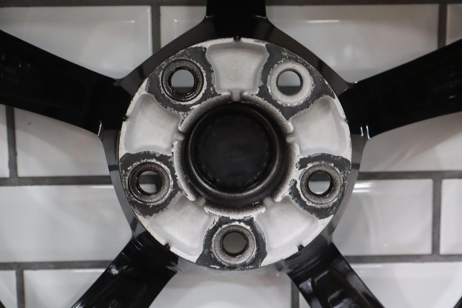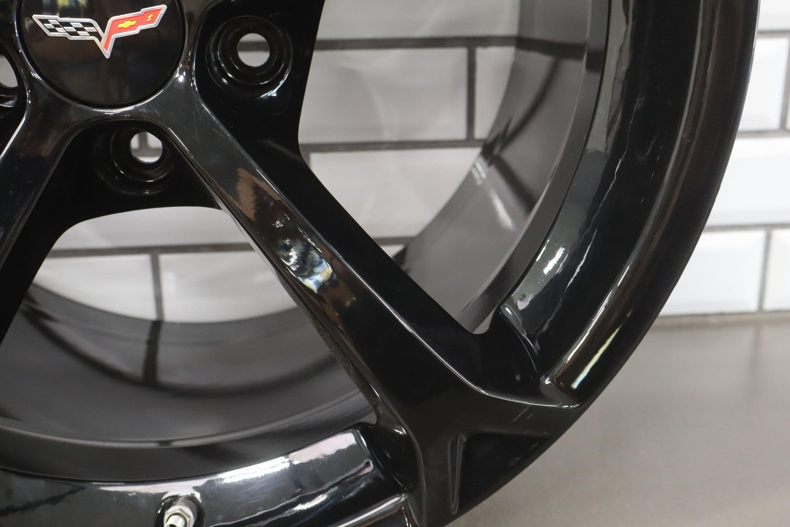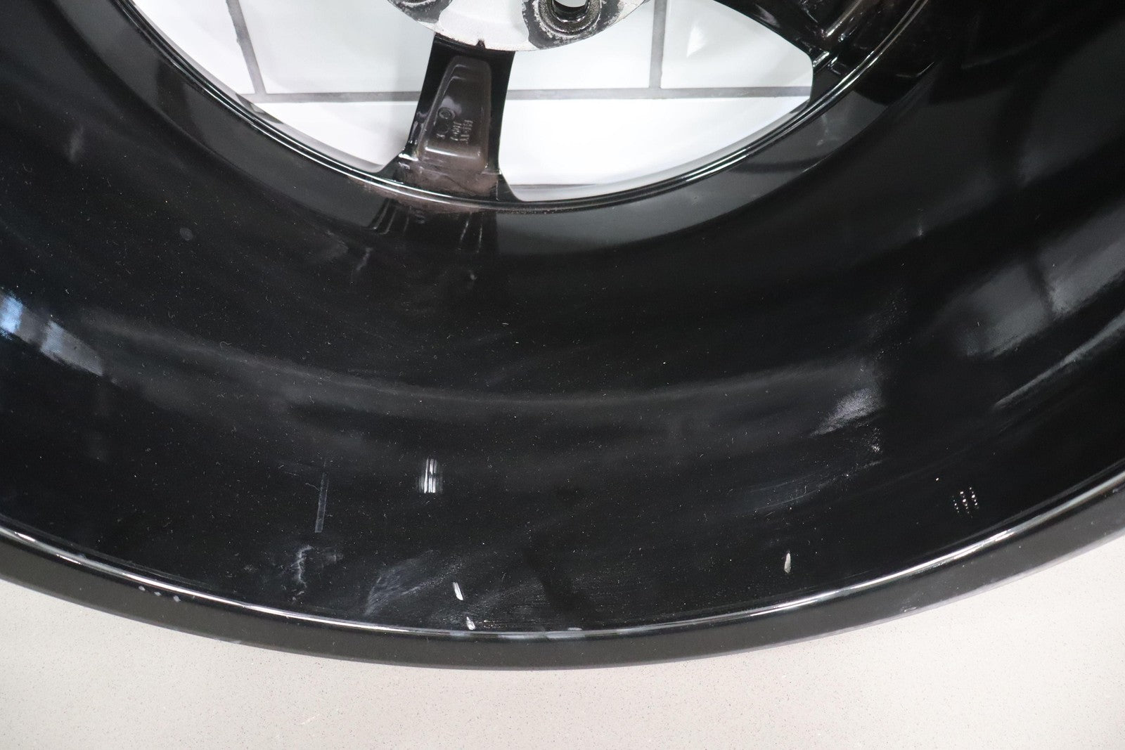 Lh Rear, 19x12, Grand Sport, 5 Single Spoke Painted Black, Couple Knicks/imperfections, Light Bend