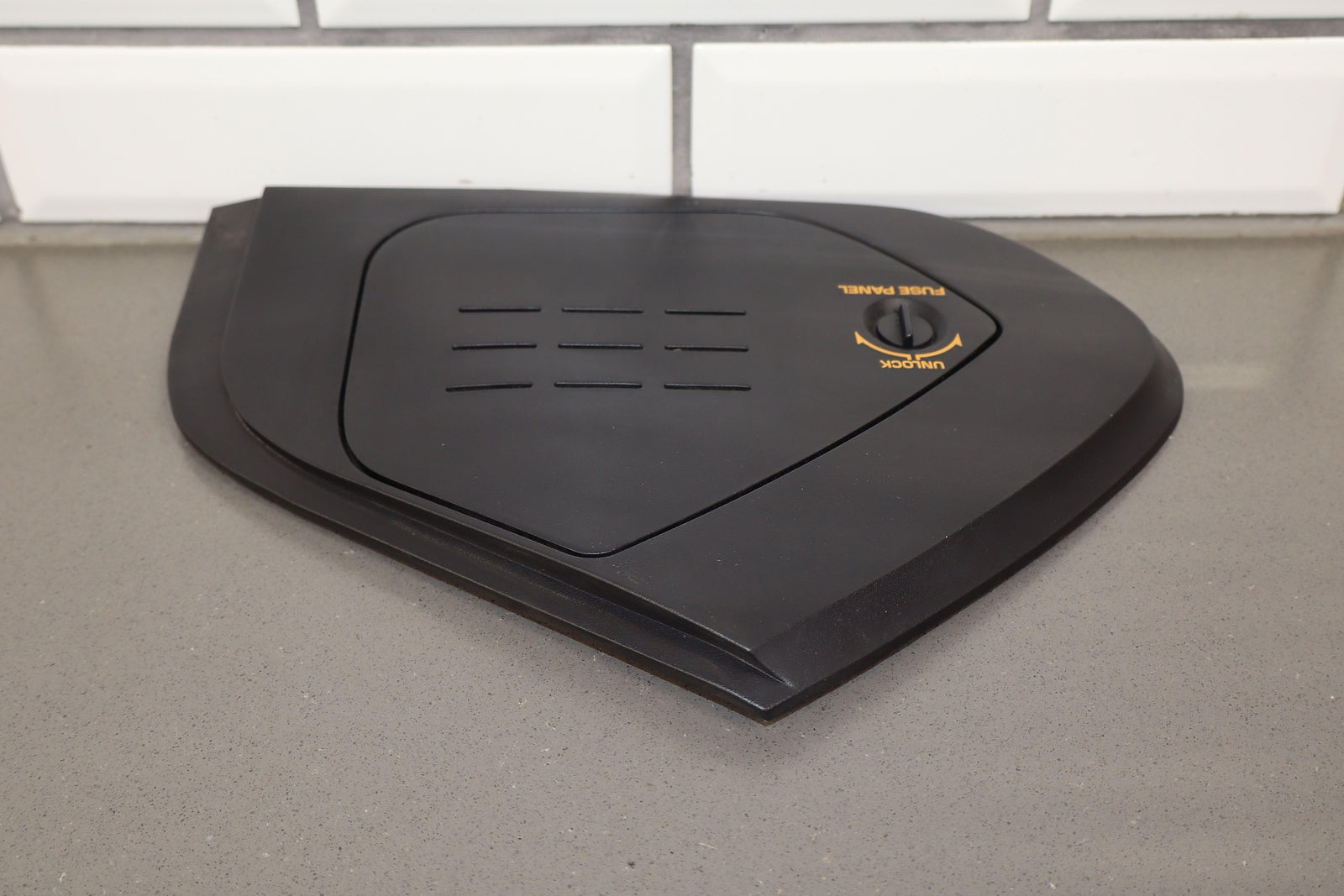 Rh Dash End Cap W/fuse Panel Door, Black (19i), Clean Orange Lettering, Functions Properly
