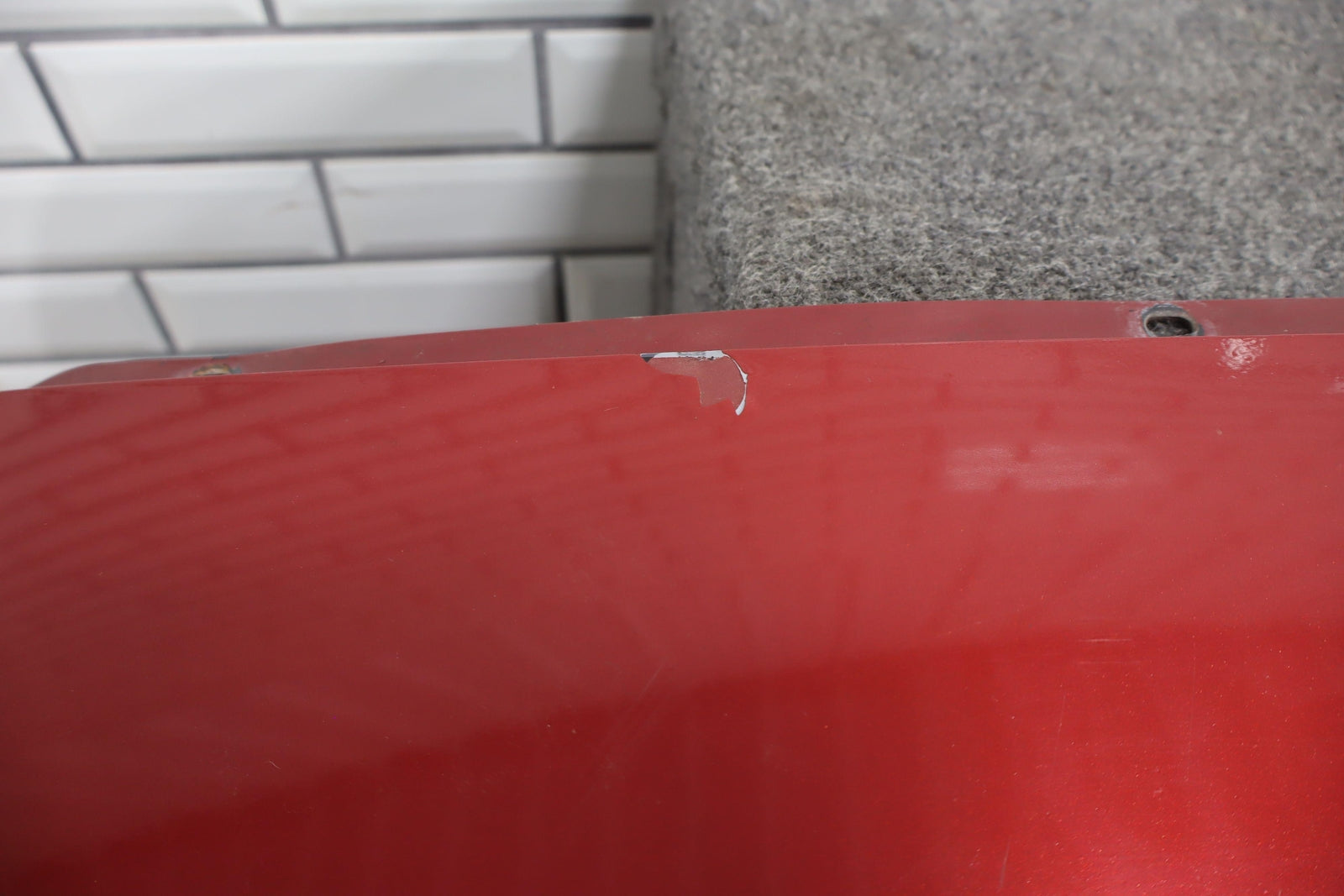Magnetic Red Metallic (86u-poor Respray), Includes Lighting-tail Finish Panel, Flaking Paint, Heavy Orange Peel, Mild Scratches