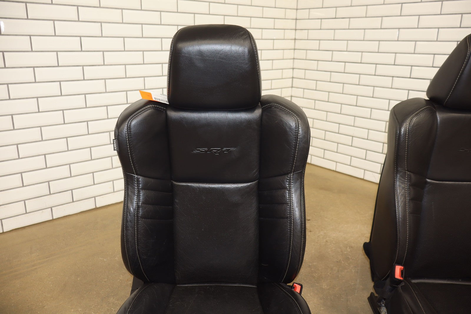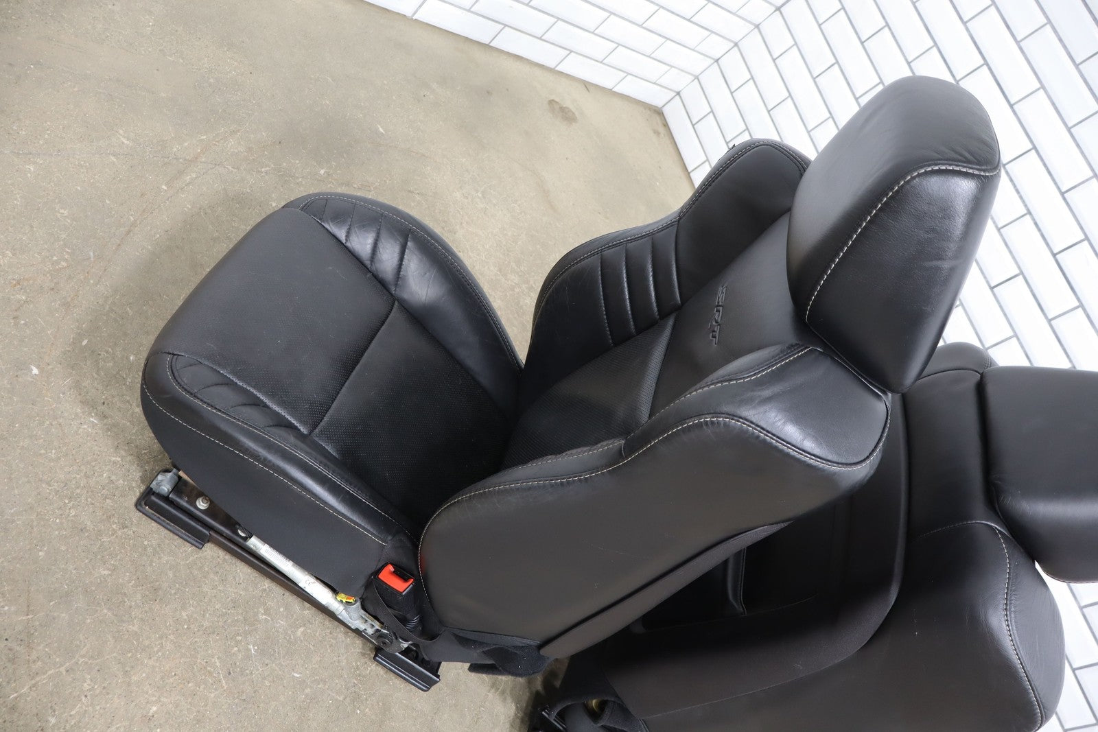Lh Srt Leather Seat Set 8pc, Black(x9) W/white Stitch,includes Console, Light Staining, Mild Wear
