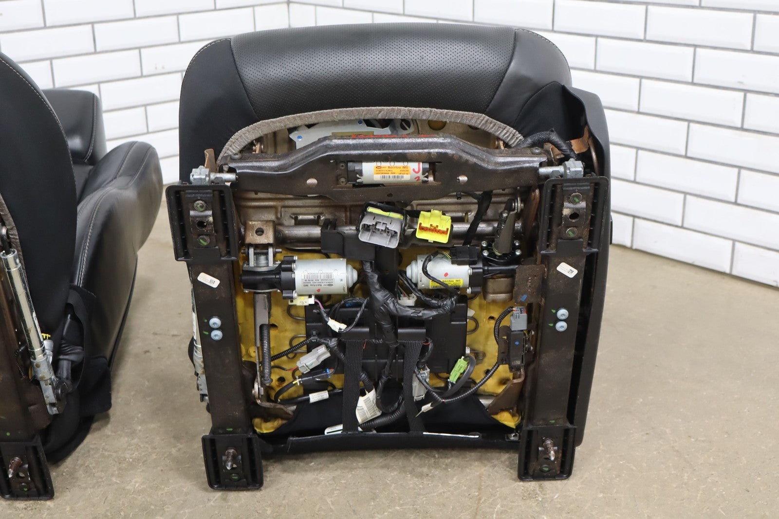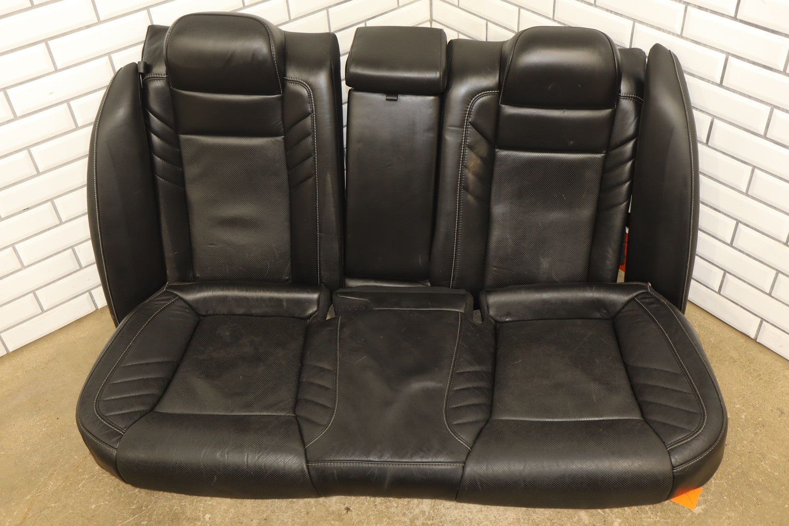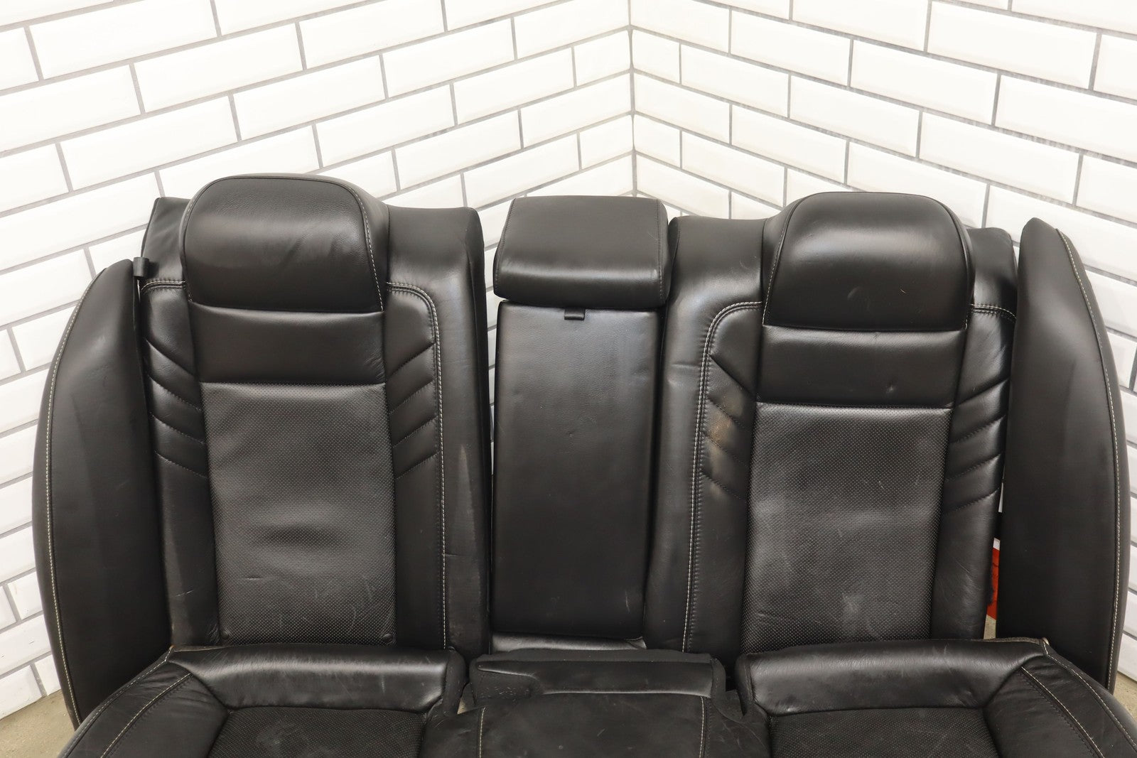 Important notes: Lh Srt Leather Seat Set 8pc, Black(x9) W/white Stitch,includes Console, Light Staining, Mild Wear