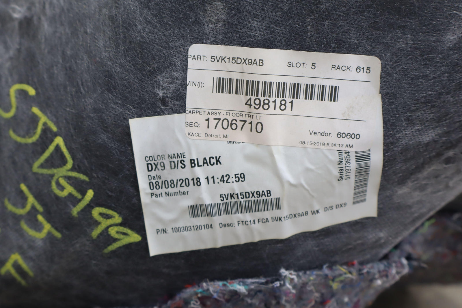 2018 Dodge Durango SRT-8 Left Front Cabin Carpeting (Black X9)